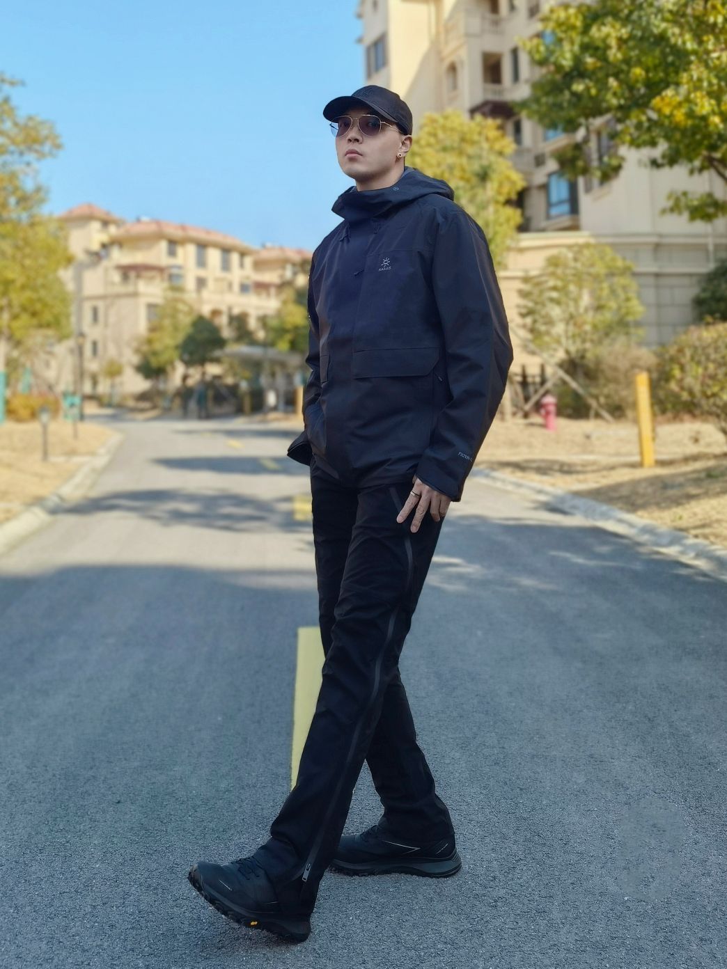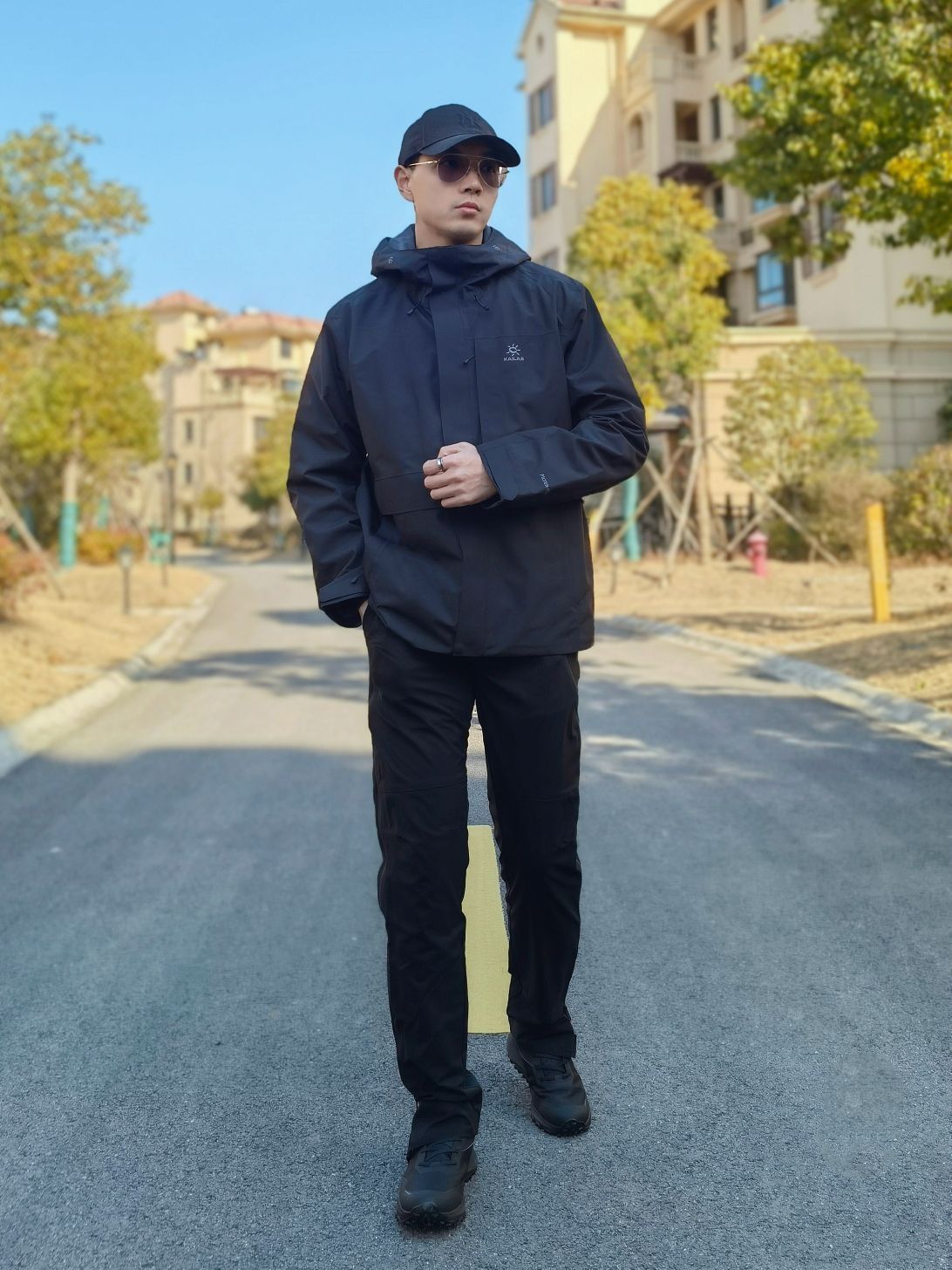 hello 大家好,这里是撒旦锅锅 💗179cm/80kg 🌞今日穿搭为户外运动风格 搭配类型:硬壳冲锋衣+机能裤+跑步鞋 户外风格搭配,冲锋衣必不可少,今天我选择的是KAILAS凯乐石家的定日系列 硬壳冲锋衣,防风防水性能非常棒,黑色才打帅气,下身搭配黑色机能运动裤,做一个黑色系呼应,鞋子选择凯乐石括苍系列黑色跑步鞋,这双鞋我多次上脚,非常爱,这一身all black搭配户外运动风十足🔥