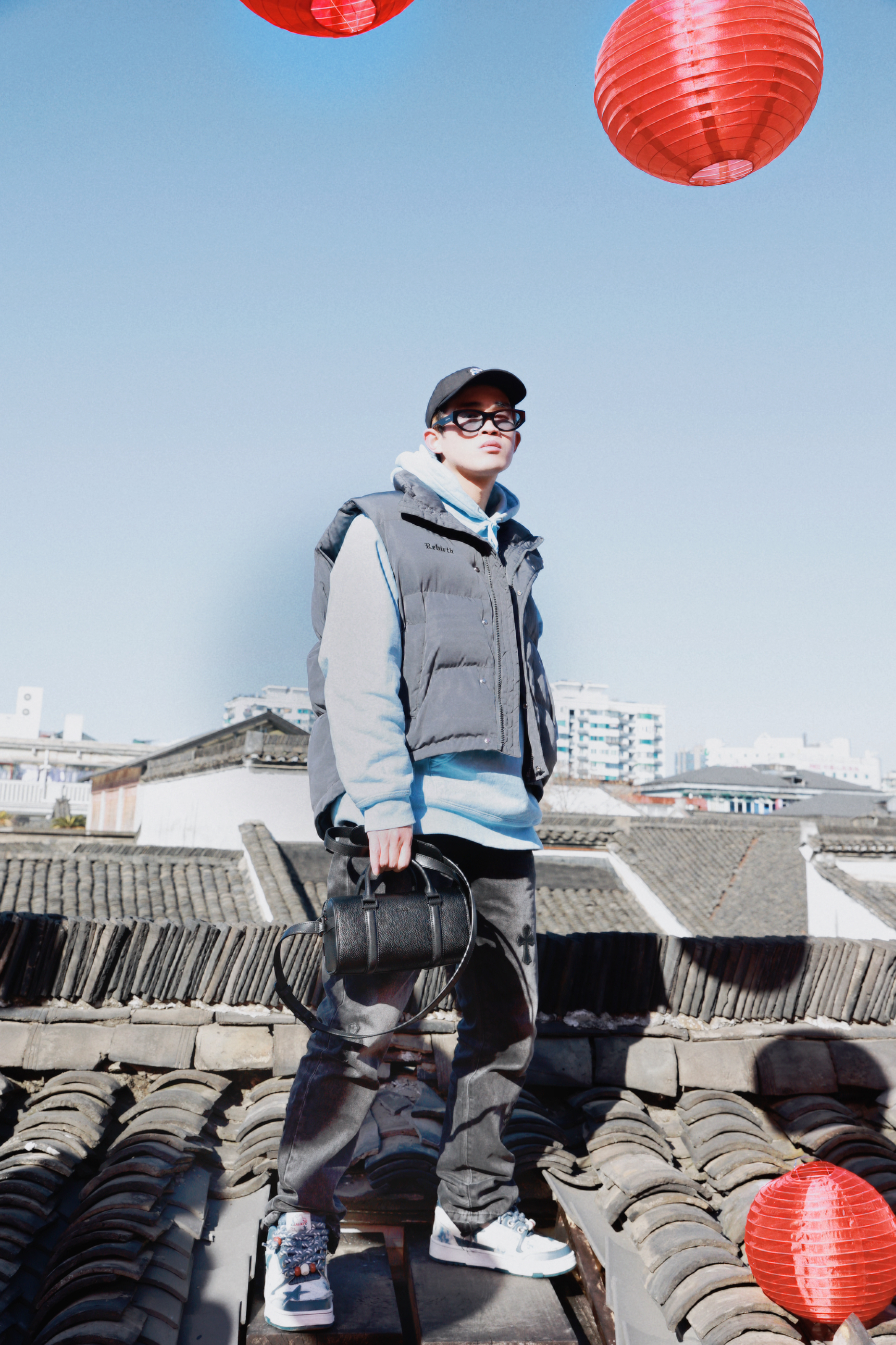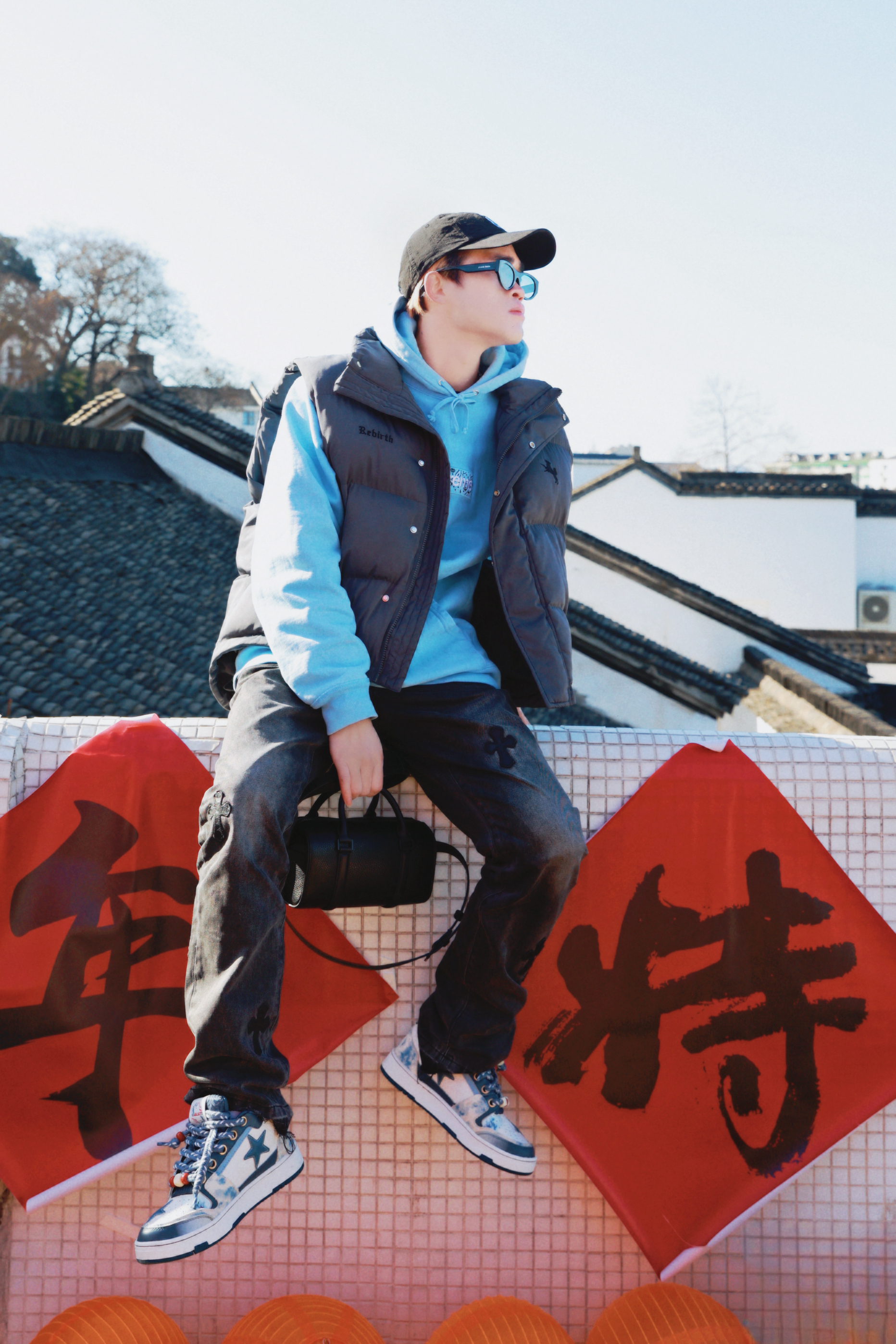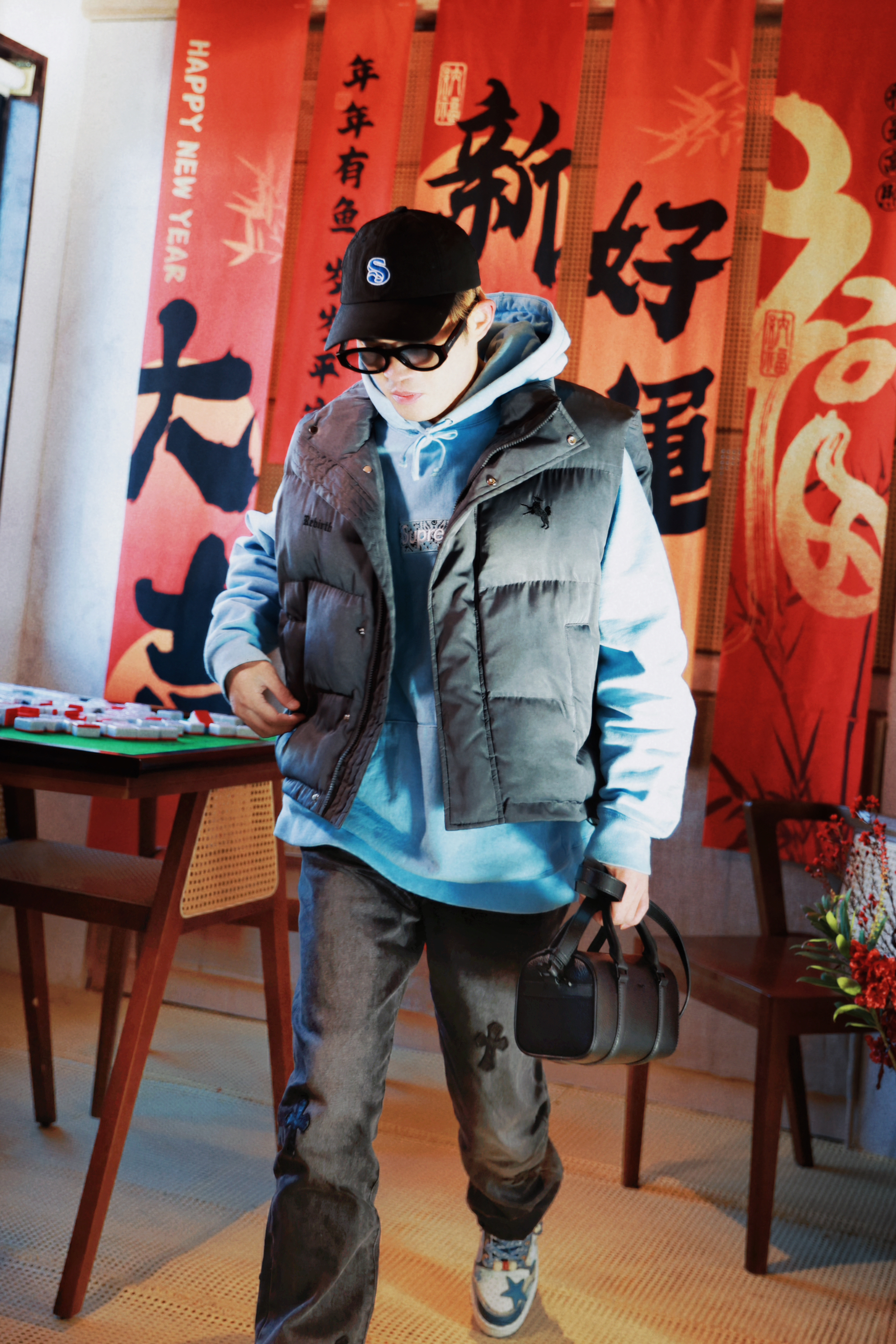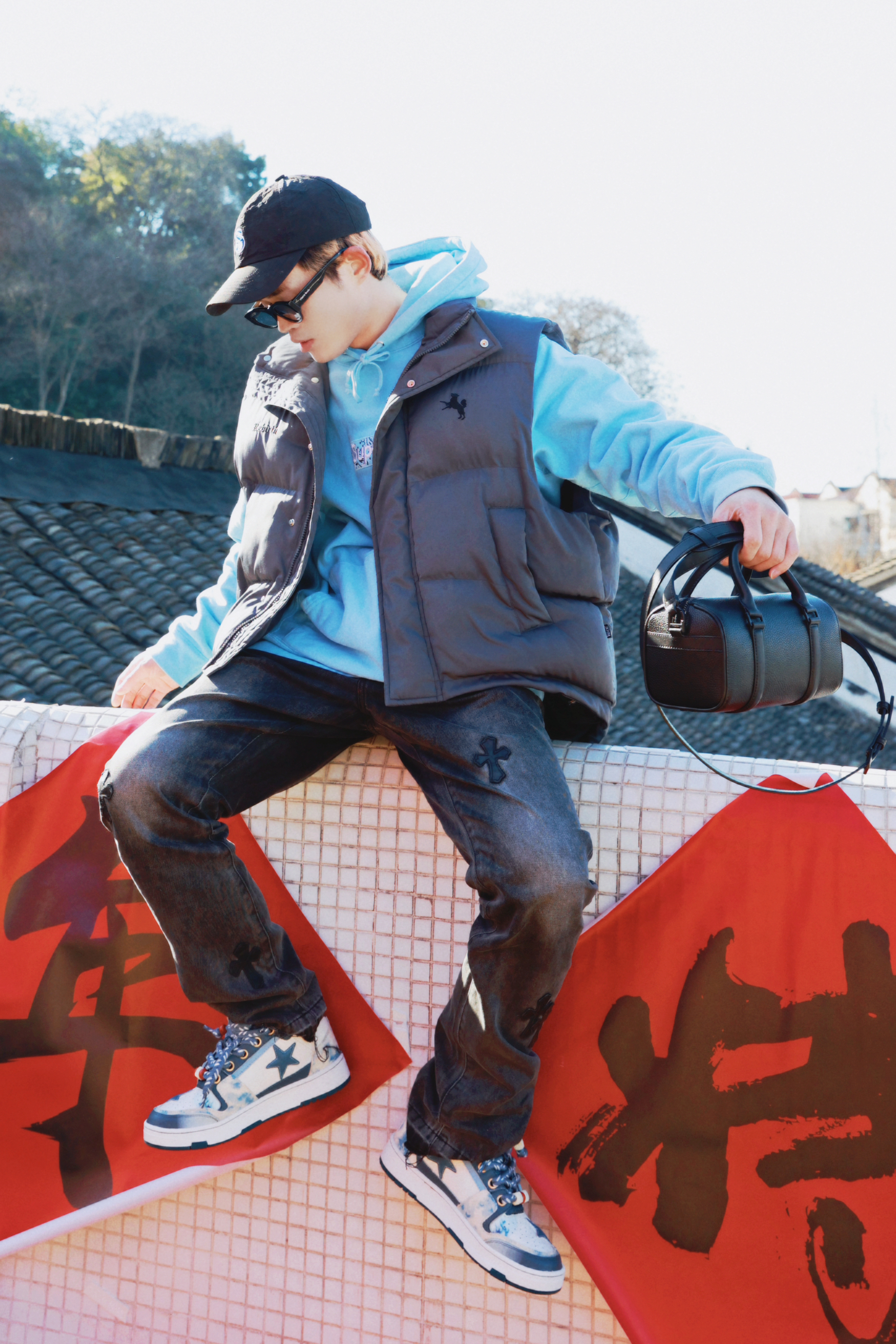 新年新气象🧨 过年回家记得换身新装备❗❗ - 蓝色卫衣叠穿纯色马甲 配上做旧的潮流牛仔长裤✔️ 看着倒是蛮街潮时尚的。 搭配的板鞋色系上也比较有小心机🤭🐉 鞋面设计融合了不少龙年元素 加上撞色的编织鞋带💥 新年穿搭起来回头率真的爆高❗ - 最后就是这个经典百搭的斜挎包了 纯黑简约风的设计 加上细腻的皮质✨ 日常出街怎么搭都不会出错🔜