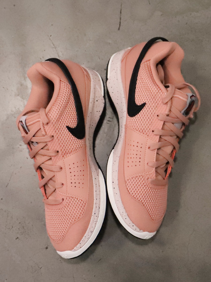 哈哈~因为鞋身整体是肉粉色为主!被许多人评为五花肉配色🥩真的好有意思! 这次配色主要是以低饱和度配色为主🤍 鞋身肉桂粉搭配鞋底的淡紫配色,同时还有泼墨在上面!整体很有感觉~! 鞋身网面的材质很透气,日常穿着,打球,都不会闷。 后跟的“咬了一口肉的血盆大口”跟鞋舌的“钻石獠牙”搭配在一起就很有个人特色‼️ 上脚后我觉得也是挺百搭的!! 尺码也挺正! 个人觉得这双鞋真的💯💯,挺满意的!