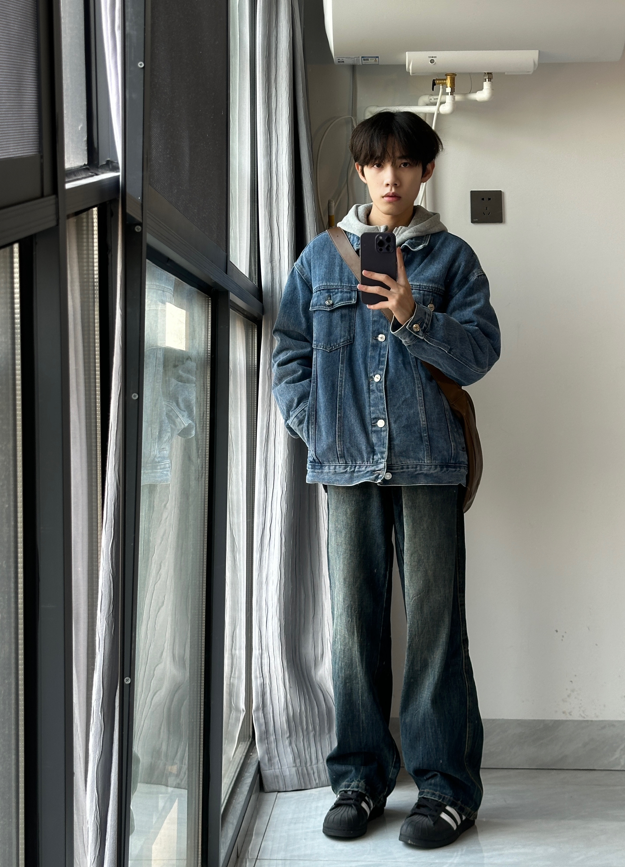 身高|体重:165/45 🧍♂️ 穿搭风格:日系复古 👔 上衣:atopos零一 👖 下装:aetg 👟 鞋子:阿迪达斯