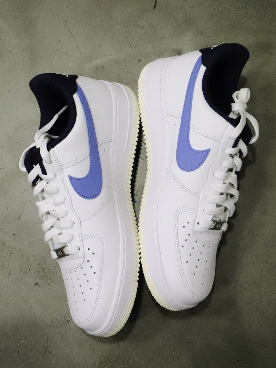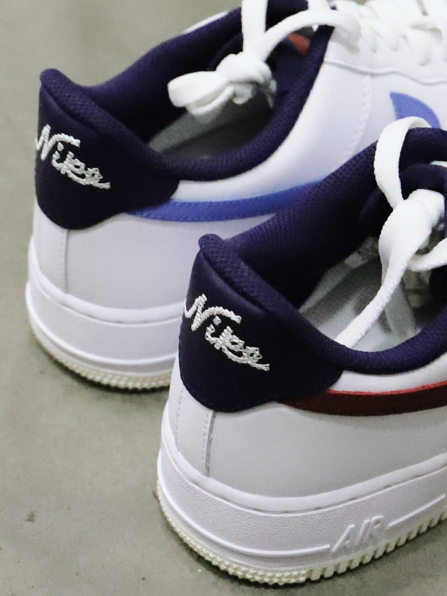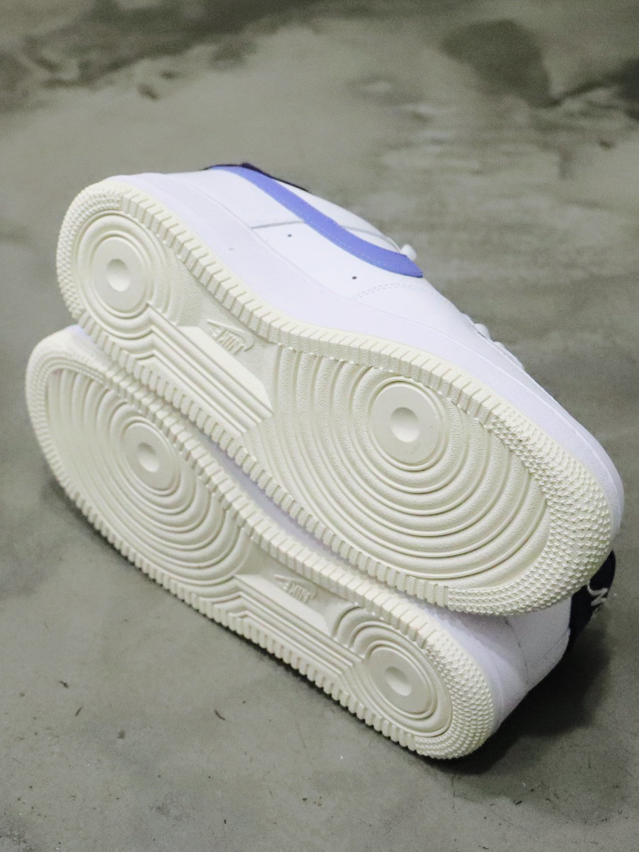 整体配色打破了我对AF1的固化思想~一直以为只有纯白配色,最多在上面加一点装饰! 原来他还能出不同的配色~🫣 这次的鸳鸯配色还怪好看的! 没有脱离它简约的元素,而是在这个基础上加多了不一样的设计感💫 鞋身外侧鞋钩是红色的,内侧是蓝色,整体看起来也挺和谐的~ 底色是软乎乎的奶白,还带了一点做旧复古的淡黄色🤍 后跟是蓝紫色~看起来也是非常特别的! 上脚脚感挺不错的!尺码空军正常拍下就可以啦!🦴