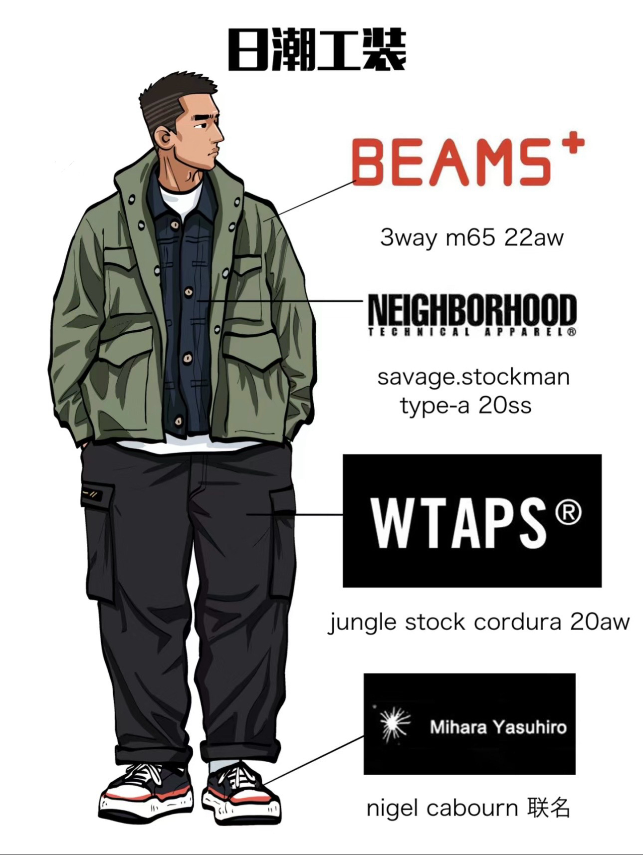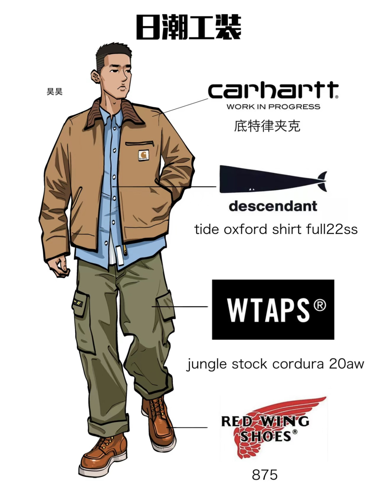 身高|体重:183.70 🧍♂️ 穿搭风格:工装 👔 上衣:m65 👖 下装:工装 👟 鞋子:复古板鞋 🎒配饰:斜挎包