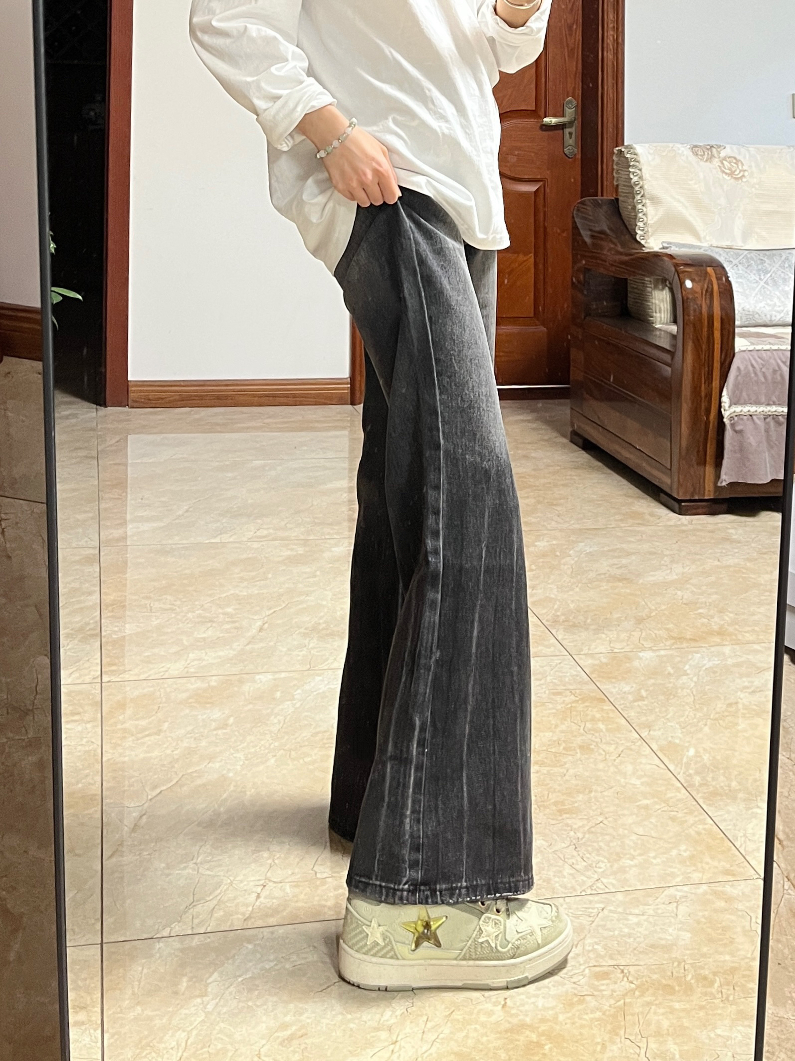 165 92臀围85腰围62大腿49小腿31 阔腿裤尊嘟很显瘦遮肉!! 这个颜色也很高级 好看又百搭~