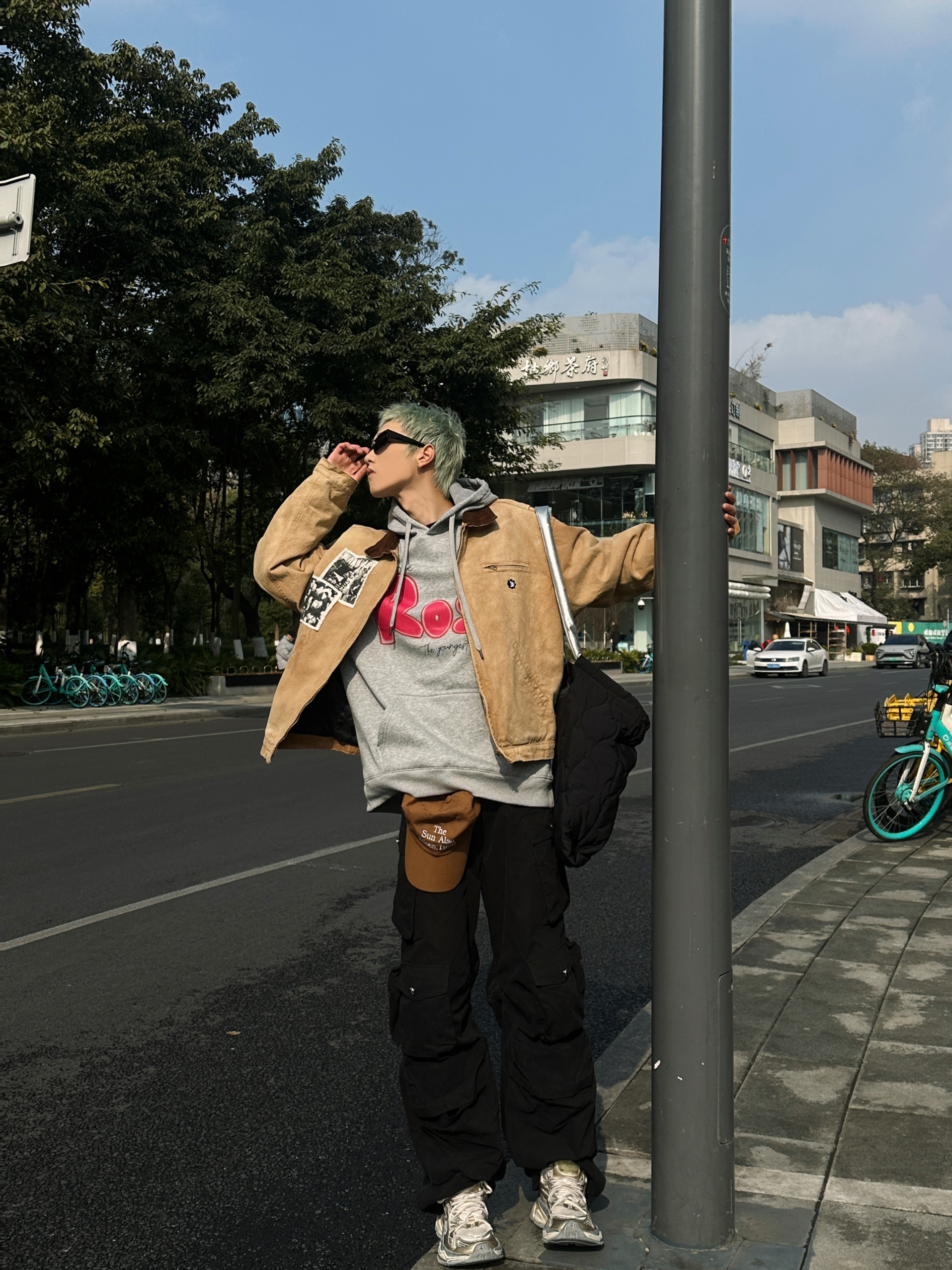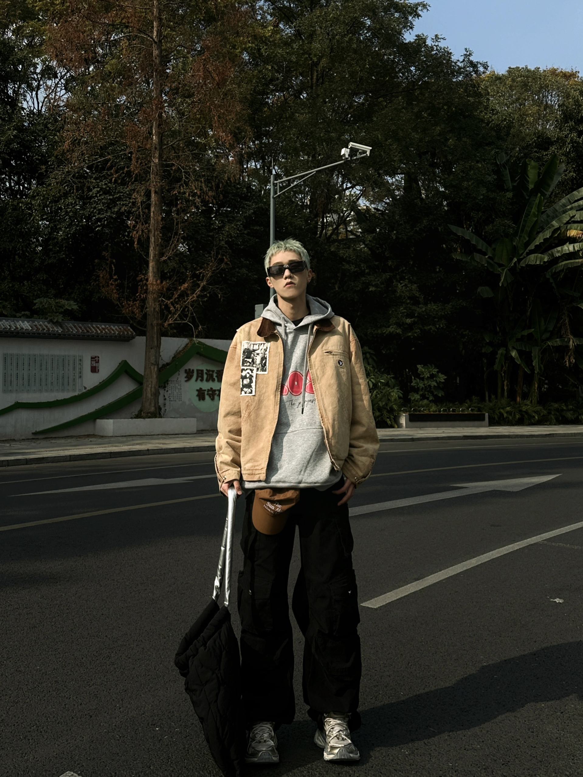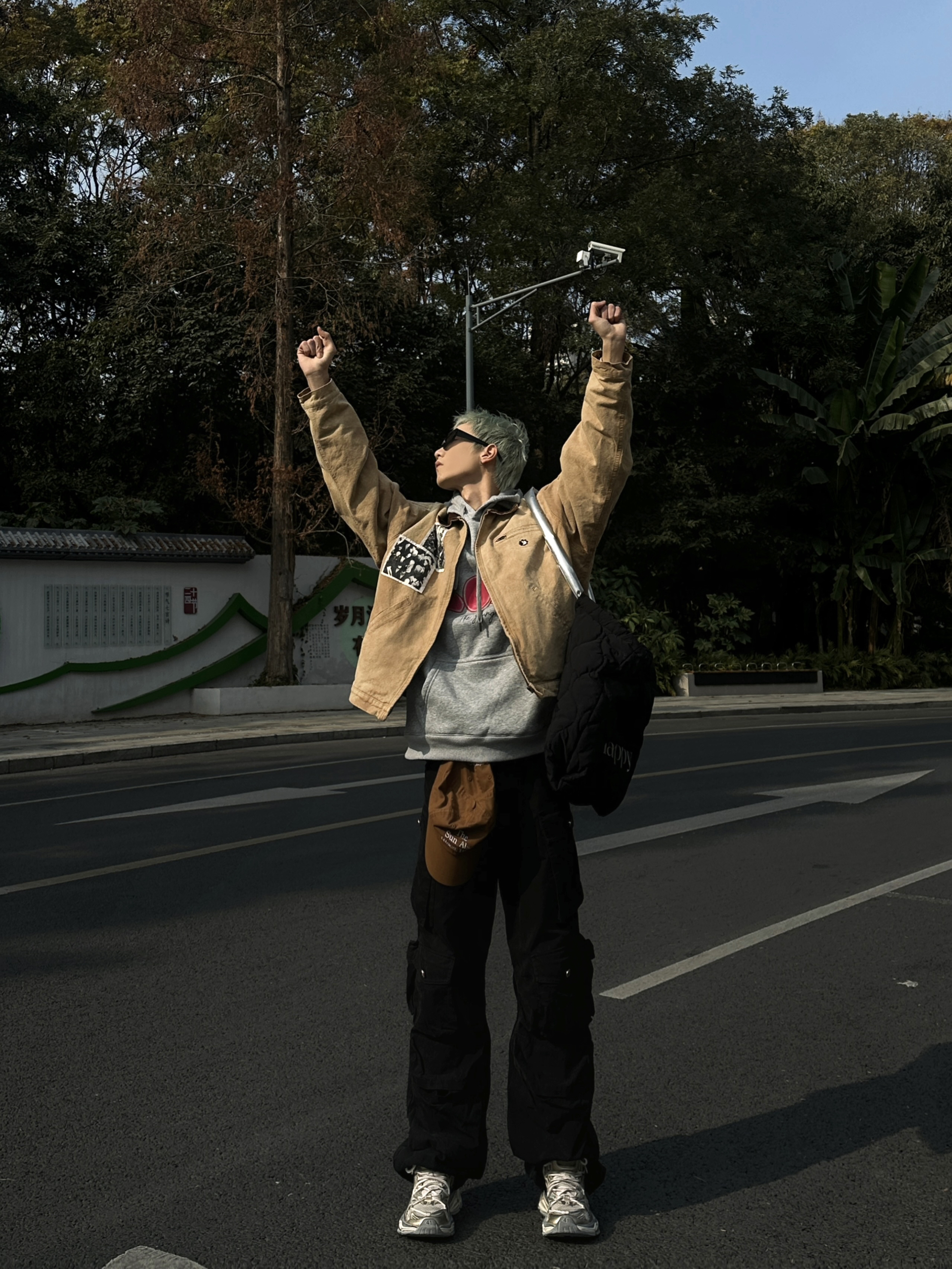 这个冬天真的被美拉德给包围了 无论是美女还是帅哥都在疯狂上身 还是那句话 穿腻了黑色的朋友 选它总会给你惊喜! 给冬天一点颜色瞧瞧 内搭灰色帽衫简约又耐看 搭配短款的美拉德夹克 冬日氛围感不就上来了吗 迭擇同色系的BASLS 老爹鞋的版型真的太百搭了 日常通勤都不在话下 复古做旧的设计 也是给整体穿搭提升了层次感!