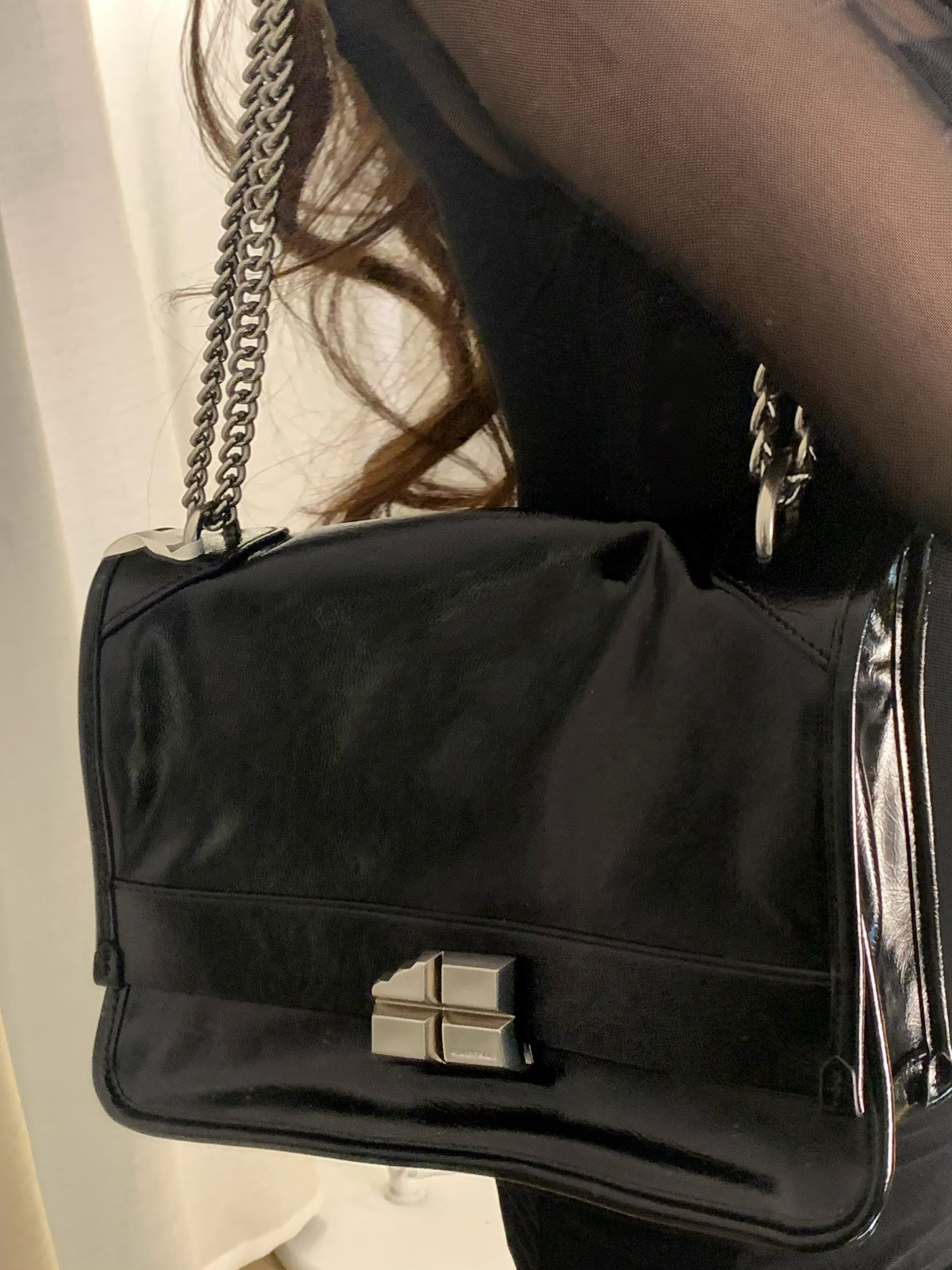 魅力女人的感觉狠狠拿捏住了 黑色连衣裙搭配罩衫和高跟鞋 真的性感又迷人~ 再搭配上我的时尚单品—西木汀托特包👜 油蜡皮质很高级 光泽感十足 链条加皮带设计流浪又酷又飒 不仅可以单肩还可以斜挎 小号容量对我来说就已经很足够了 日常通勤完全ok滴