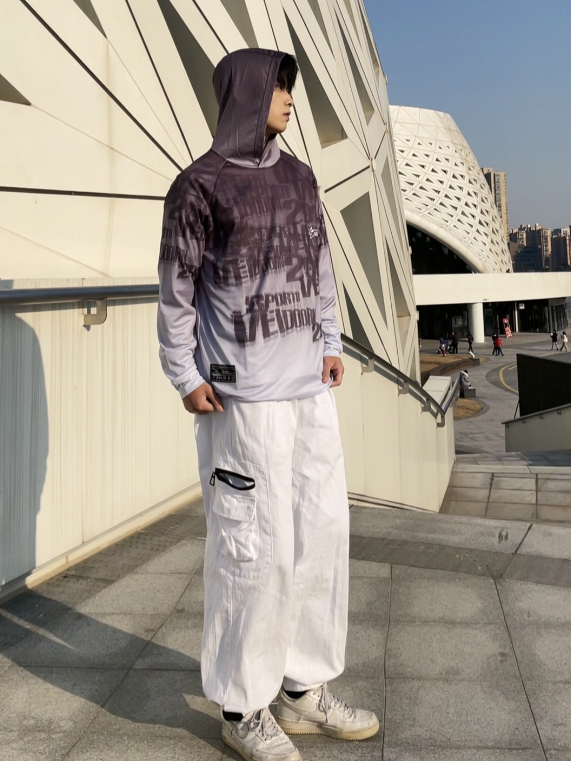 哈咯 各位球友们 今天和你们分享的是: 维动VEIDOORN 的源码系列投篮服 整体是运动休闲风的设计 不仅打球可以穿 日常穿也很酷 运动连帽的设计 还可以抵挡紫外线 上身效果感觉很轻盈 打球的时候不会有累赘感 整体穿着感觉挺显壮的 面料也是速干型 流汗能很快干 新年囤起来 开春直接开练🏀