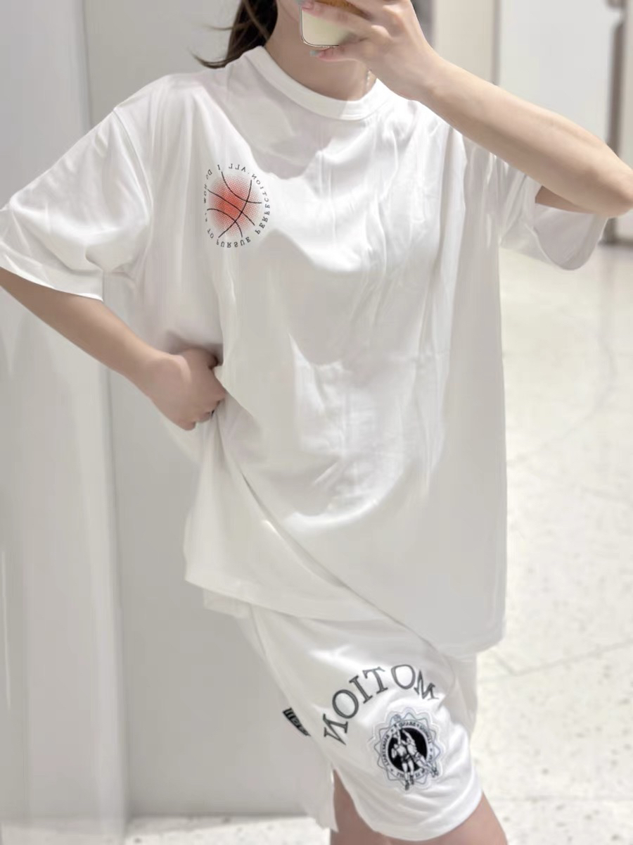 :本来是因为这个短袖颜值高入手的,到手发现材质也不错,很容易清洗! 相信大家夏天打球穿纯棉的短袖难免觉得很闷,我个人打球实测下来觉得lushisi的这款篮球短袖就不错,是投篮服的材质很透气! 衣服宽松好穿,我按照正常m码买的是大了点,但是领口也不会走光啥的,女生可能会怕透,但是因为它是做的投篮服设计,所以就不会被汗浸湿,我自己在里面穿过黑色的运动内衣,个人感觉还是蛮好的,基本看不见里面是黑色的...