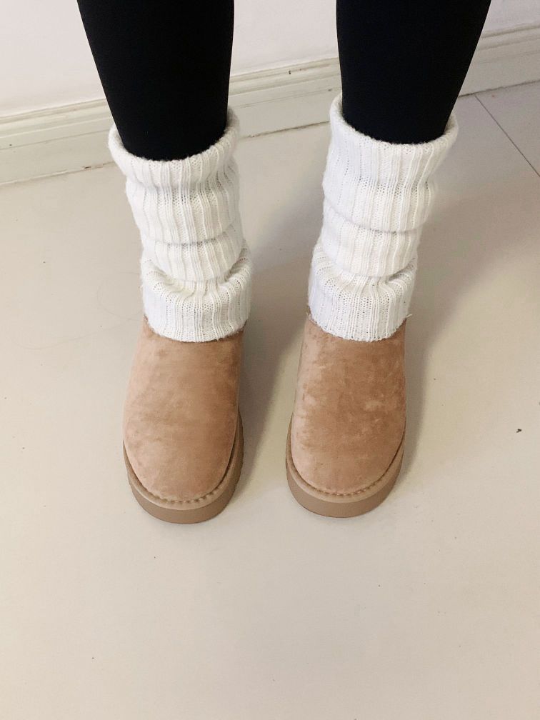 一直想找这种厚跟的雪地靴 终于被我找到啦! 里面毛毛也超级暖和毛茸茸的 保护我们都jiaojiao在冬天不被冻 鞋面也是绒绒的 我宣布这是我年度最爱的雪地靴!!! 雪地靴搭堆堆袜就是冬季必备 出门再穿一个黑色羽绒服就是街上最靓的仔