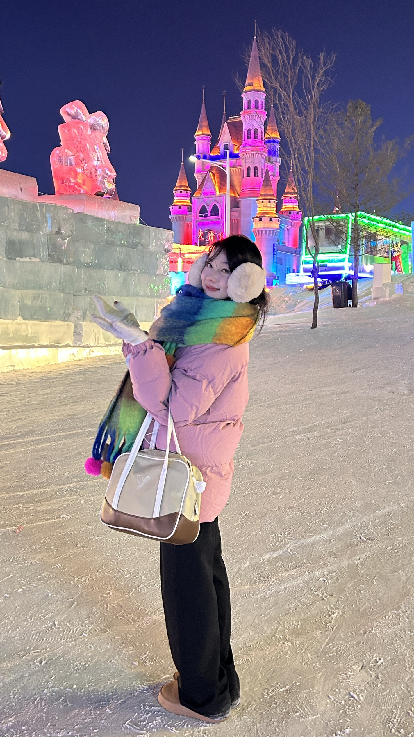 160/42 姐妹们必不可少的羽绒服 👔粉色的羽绒服外套 👖黑色的加绒休闲裤 🥿是加绒的雪地靴,百搭日常,这个冬天必备单品,保暖百搭