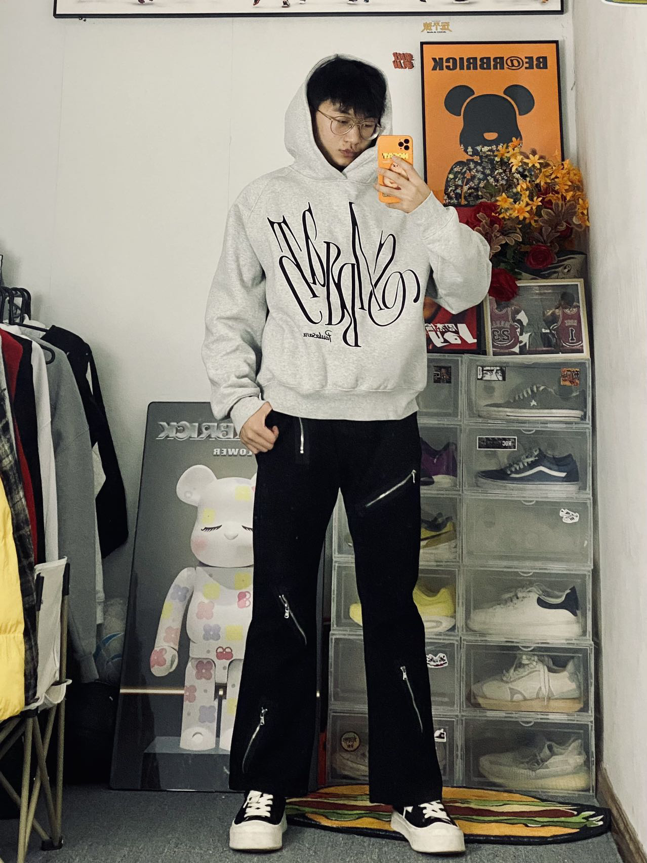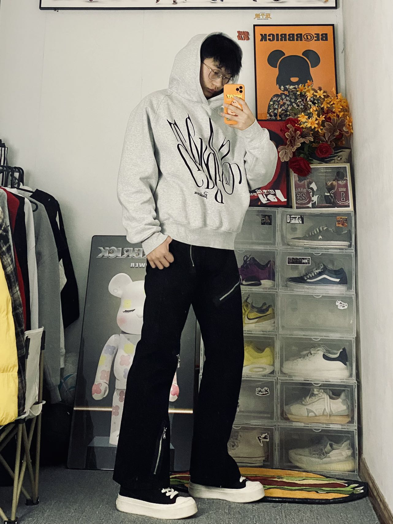 🍁冰美式今日穿搭 👔衣服上身穿了一件灰色的连帽卫衣 宽松百搭的版型 灰色也是一个比较基础的配色不容易出错 我不喜欢的点就是他没有口袋🥀 — 👖裤子的话就是一条多拉链微喇叭牛仔裤 上面是修身的版型 裤脚做了微喇叭的设计 多拉链的裤表时尚感十足 — 👟鞋子穿了一双枫叶家的白色厚底板鞋 我已经穿了好几天了 橡胶大底上脚脚感还是比较舒服 厚底设计有个4厘米的增高🐲 对我这也也种小个子比较友好⚡️鞋码正多...