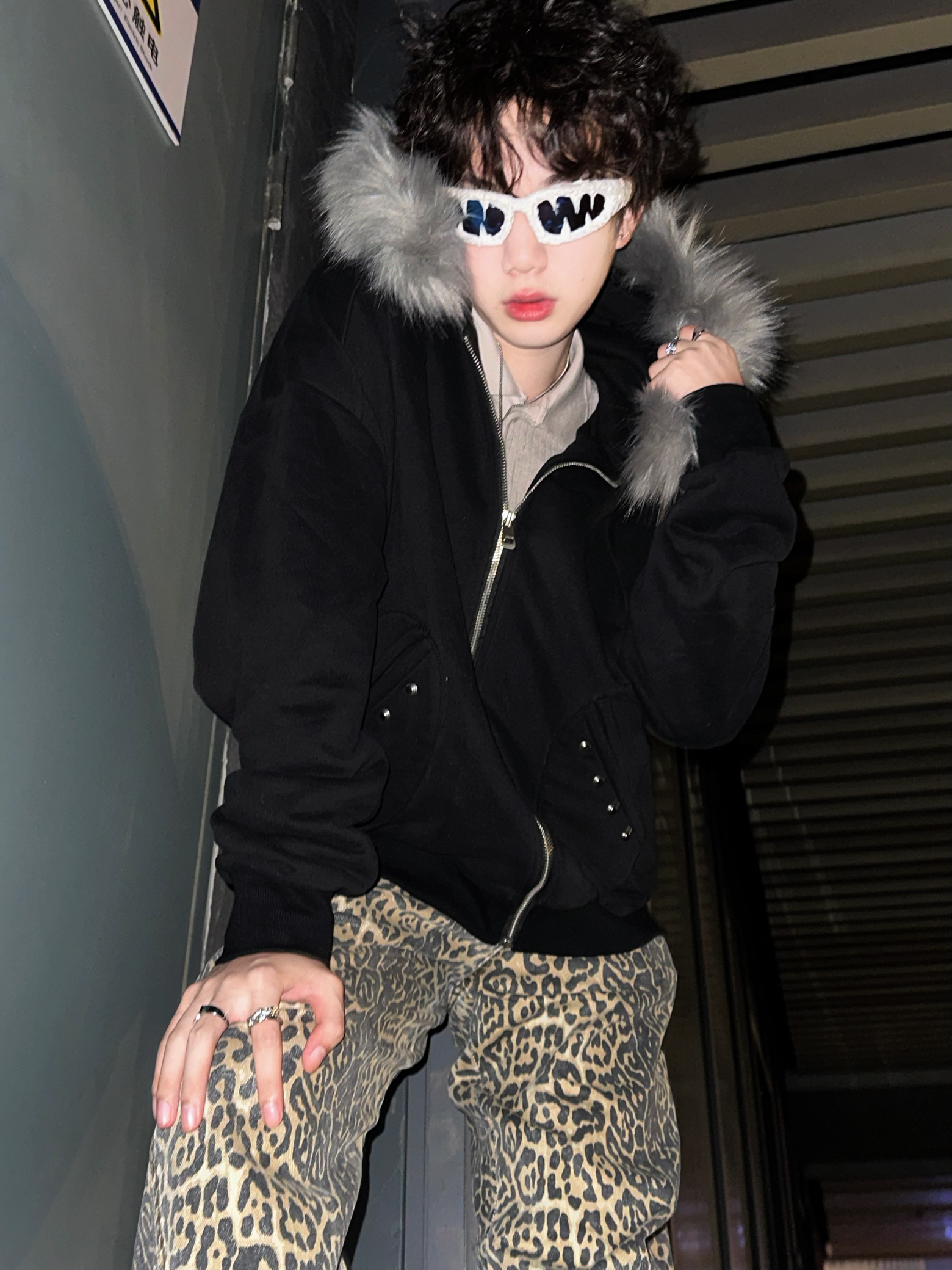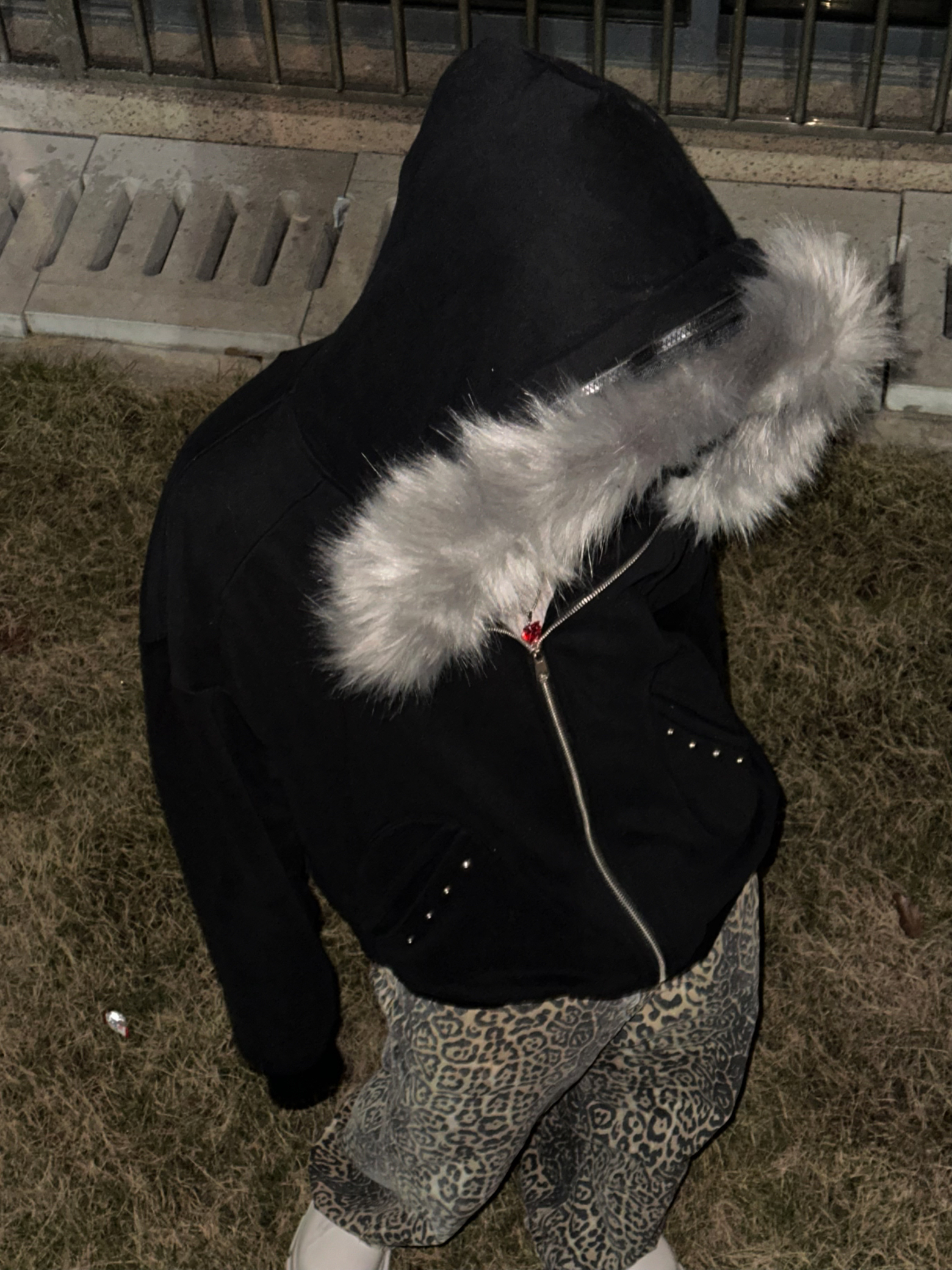 超级好看的一件黑色卫衣!克重也很足!帽子做了貂毛的设计,很厚实保暖!性价比超高!!
