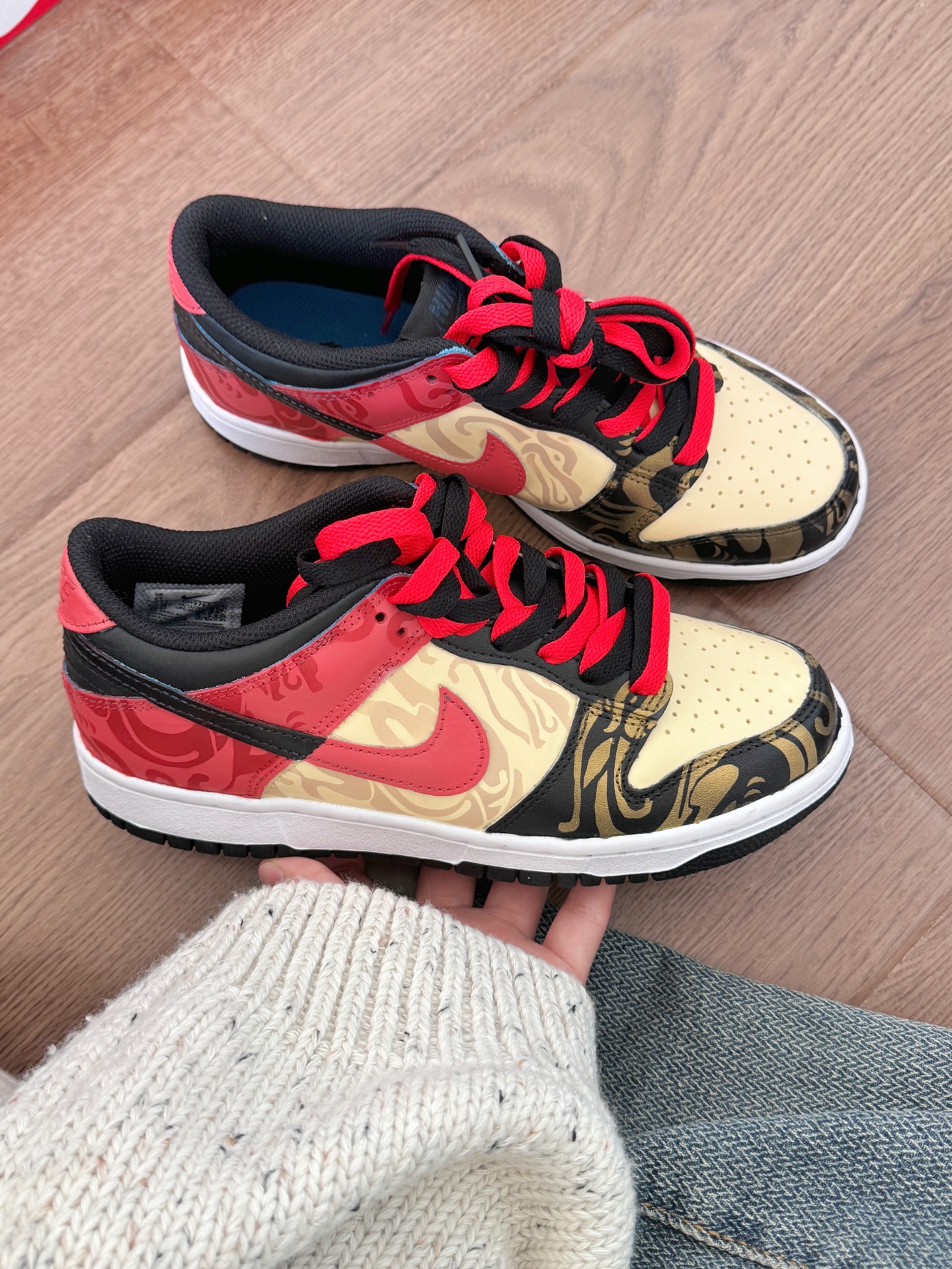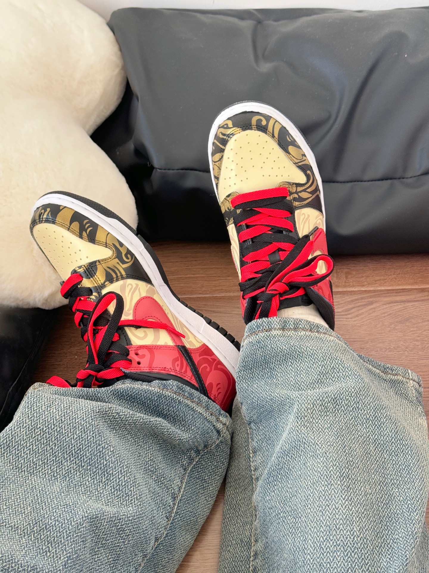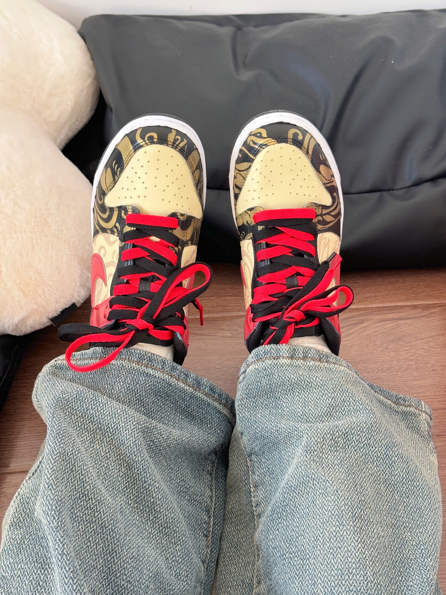 过年当然要穿红色的鞋子啦 很适合拜年穿,红红火火寓意很不错 红色和黄色的碰撞是有点好看的! 上脚也不错,搭配牛仔裤就很日常 龙年怎么能没有一双龙年限定鞋呢😆 #一眼心动的龙年限定鞋 #龙年限定我看好这双 #2024的第一双鞋 #靠这双凹出时尚感 #新年少不了这双鞋