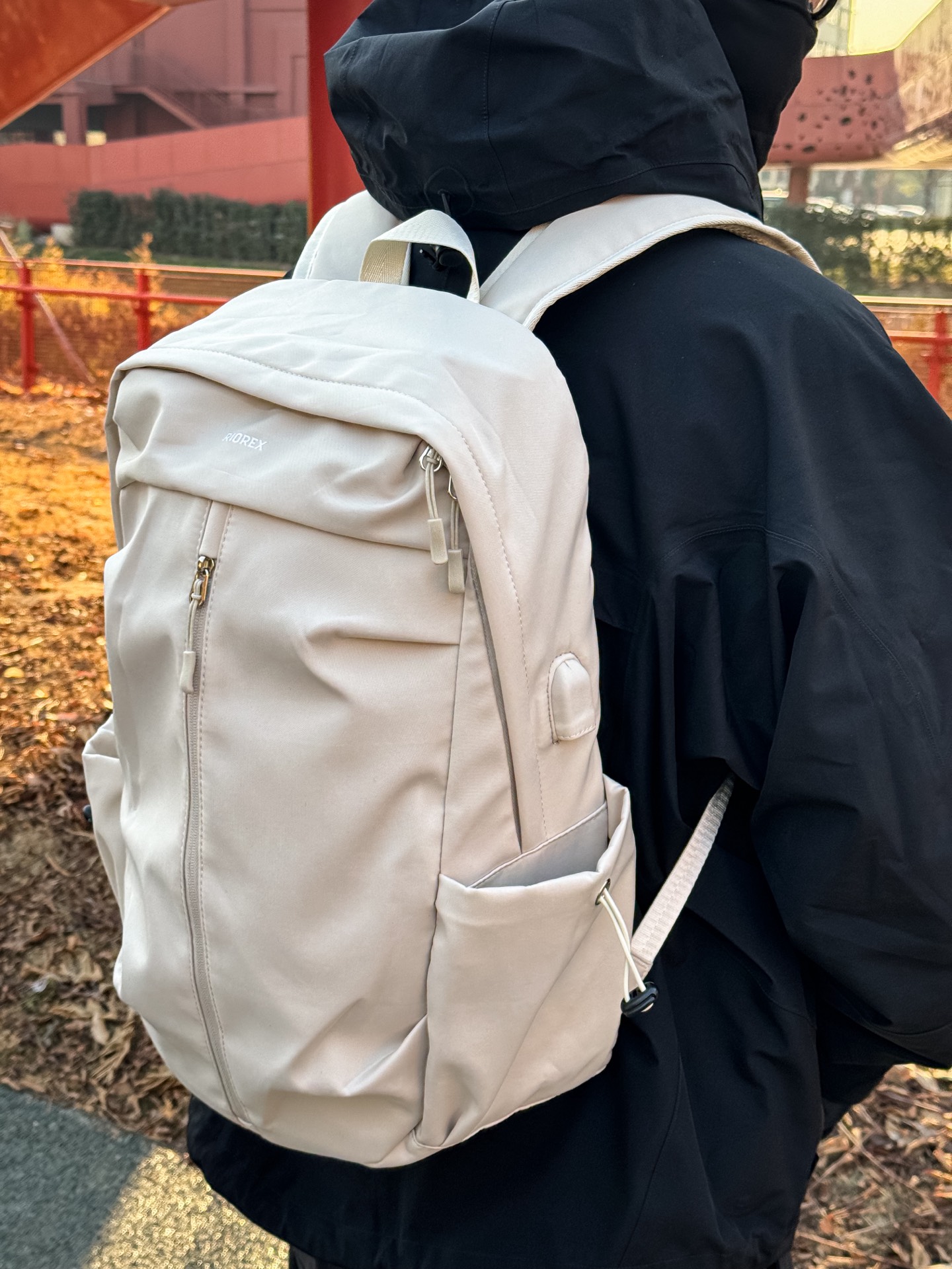 ☑️今天背的这款双肩包来自RIOREX🎒 米白配色真的好显高级感,搭配什么衣服都很好看🌟 ✨包包的容量非常给力,笔记本电脑有专属的夹层💻,还有很多杂物口袋以及侧边水杯袋,收纳设计非常合理👍🏻 ☑️外置还有个usb口,里面接个充电宝就可以插上包包来充电了👏🏻 ✨面料使用的是防泼水,日常通勤遇上雨天也轻松应对🌧️ #宝藏双肩包分享 #实用通勤双肩包 #新年有新选 #新年宜扮靓出门 #...