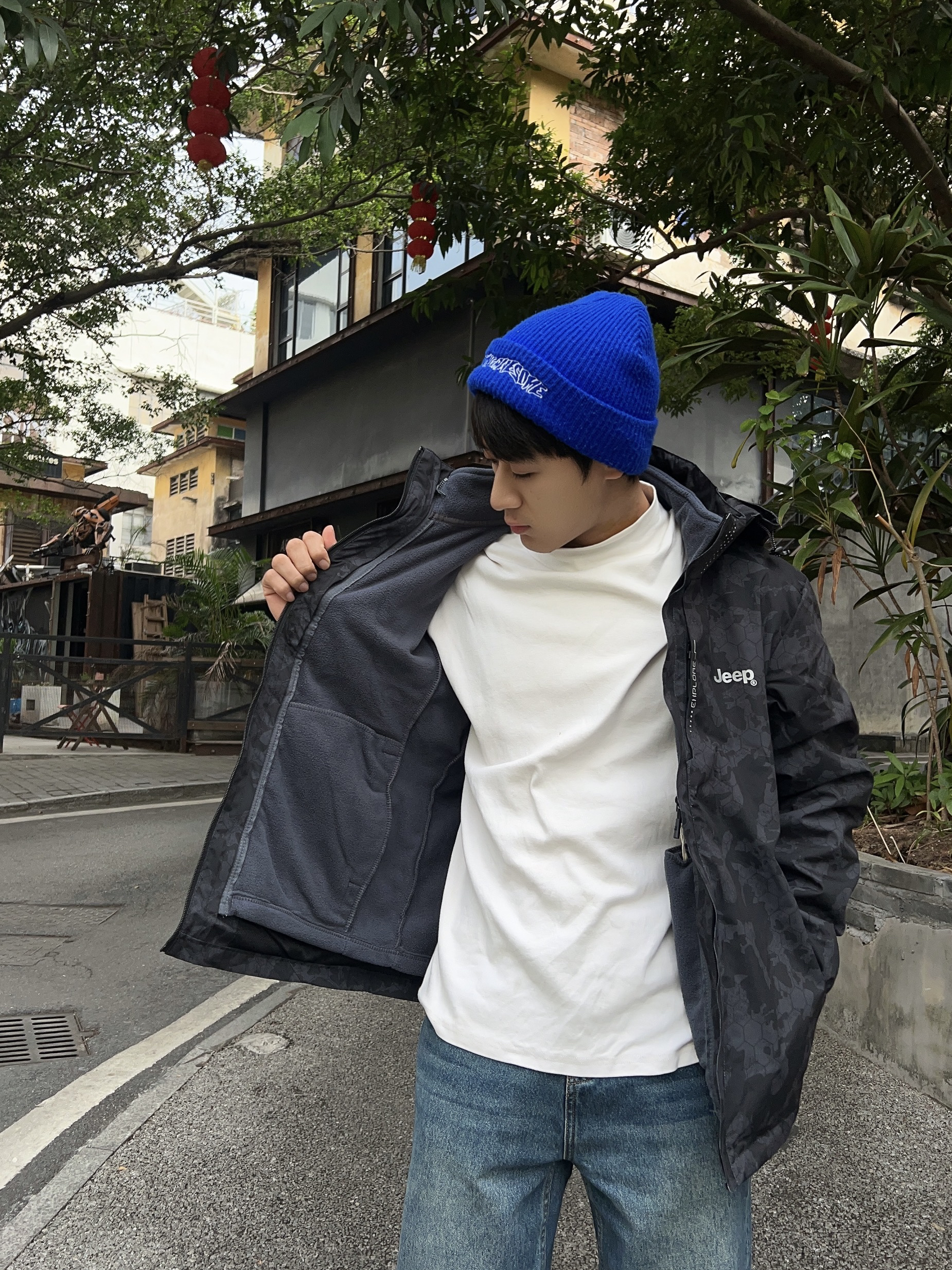 蓝色针织帽➕jeep三合一冲锋衣➕gxg牛仔裤➕a55黑色老爹鞋 这套足够晒爆我的户外朋友圈啦嘻嘻😜 —- 冬季是真的冷🥶,但是这件jeep三合一件冲锋衣的设计确实方便 一、外套拆卸穿是一件防风防水的外套。二、内里摇粒绒的保暖层也可以单穿,保暖锁温效果立竿见影也是真的给力。三、两件合一起又是一件冬季保暖舒适的外套。真的是赚到啦! 整件衣服细节处理也十分考究精致,性价比也蛮高,不挑身材的设计款式...