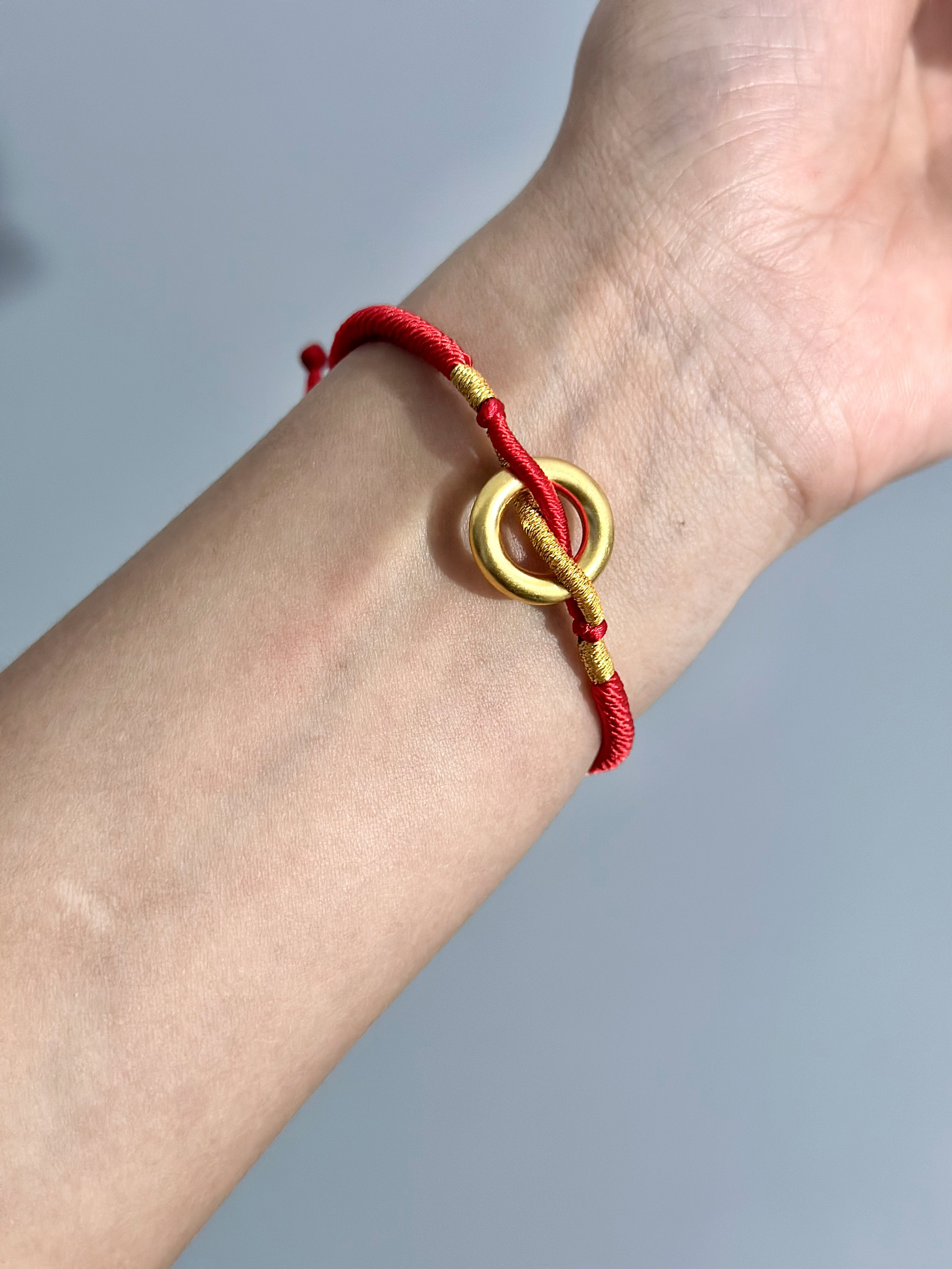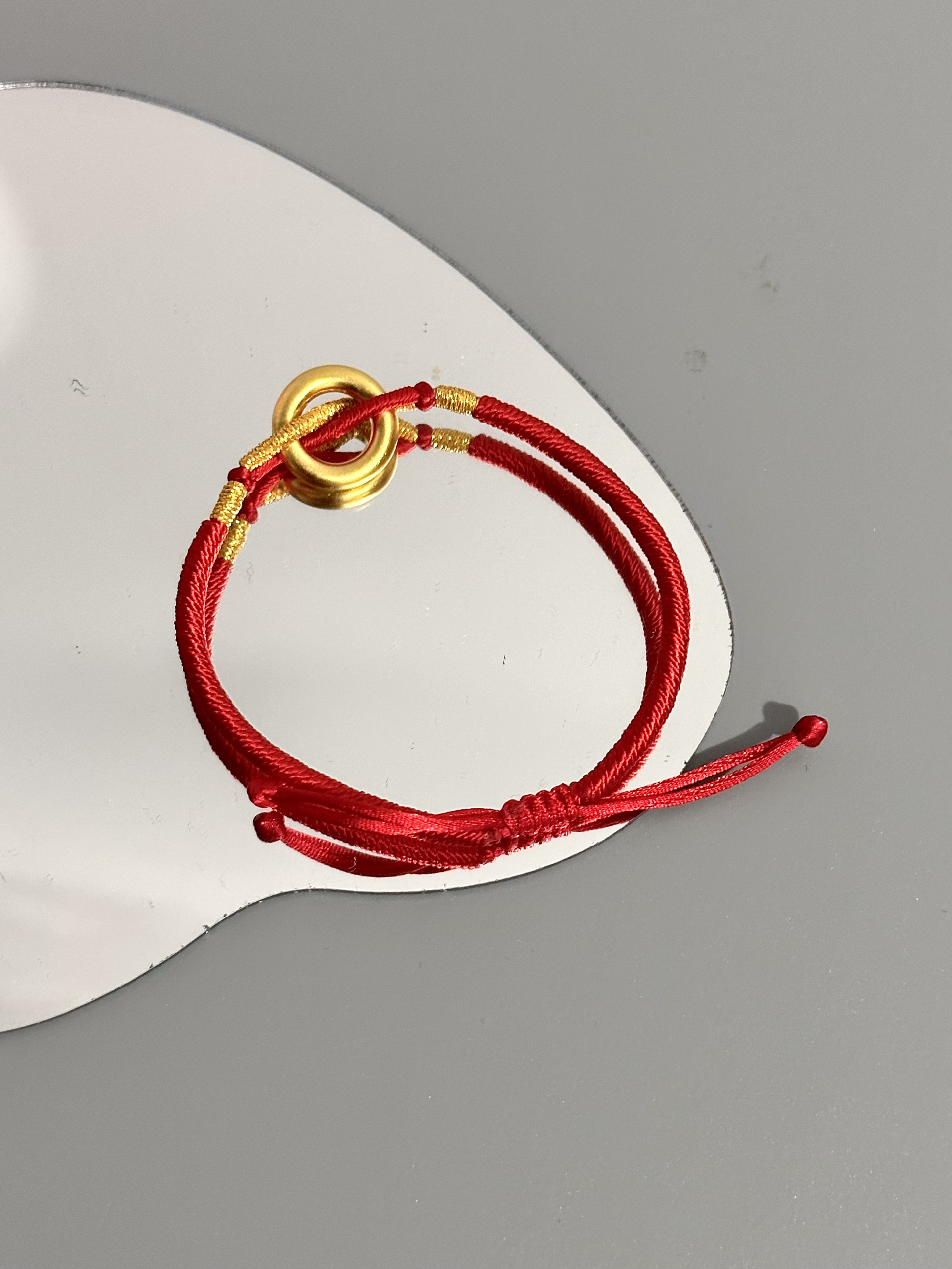 哪个女孩子能拒绝黄金呢 足金材质的手链 搭配经典的红绳 礼盒礼袋的包装也hin 精致