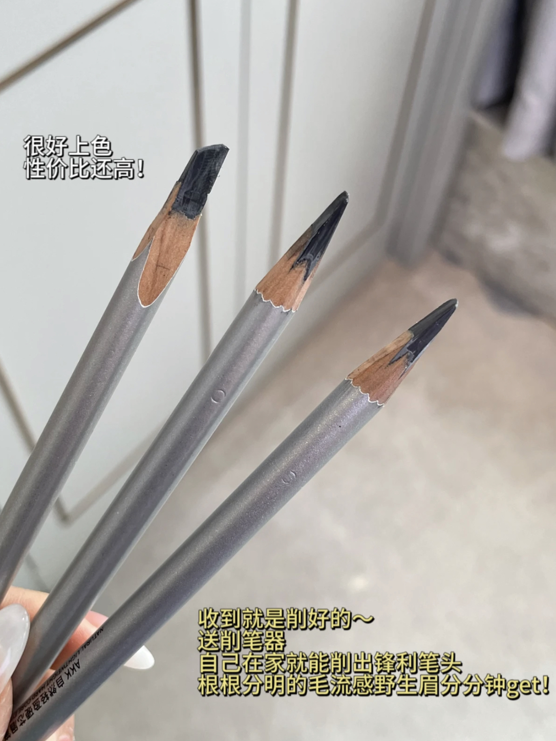 AKK的这款眉笔一出我就立马买了 砍刀头的眉笔真的非常好用!👍 笔芯偏硬一些,所以非常好画! 根根分明!很轻松就能画出野生眉! 👀这款akk眉笔不管是定妆前还是定妆后都能画!很好上色! 价格还巨便宜,性价比真的很高,足足有3.6g,很长一支 而且它是送削笔刀神器的,我这种手残党也会削 三个色号都挺日常的,我是黑发用的 01号色 有三种颜色可以选~ 💐#01自然黑,适合黑色发色,画出根根分明的野生 ...