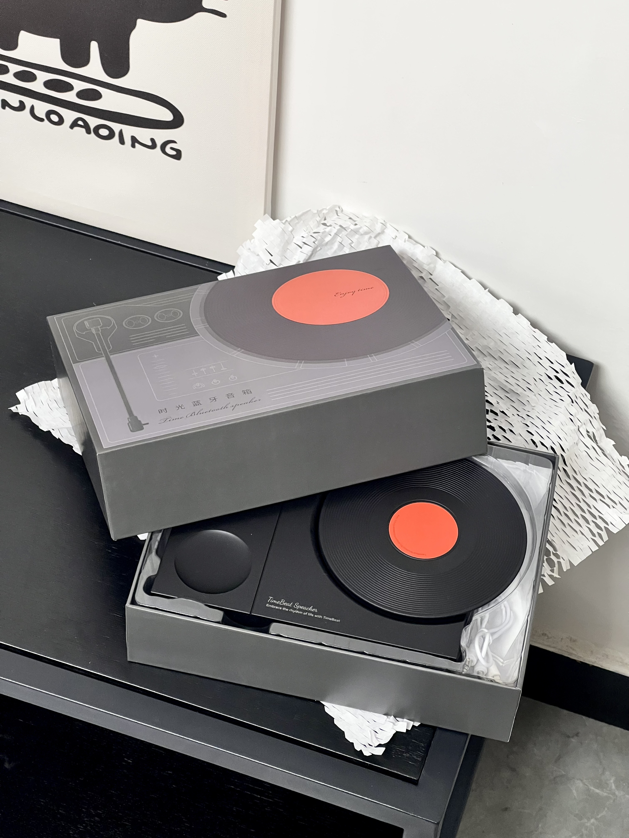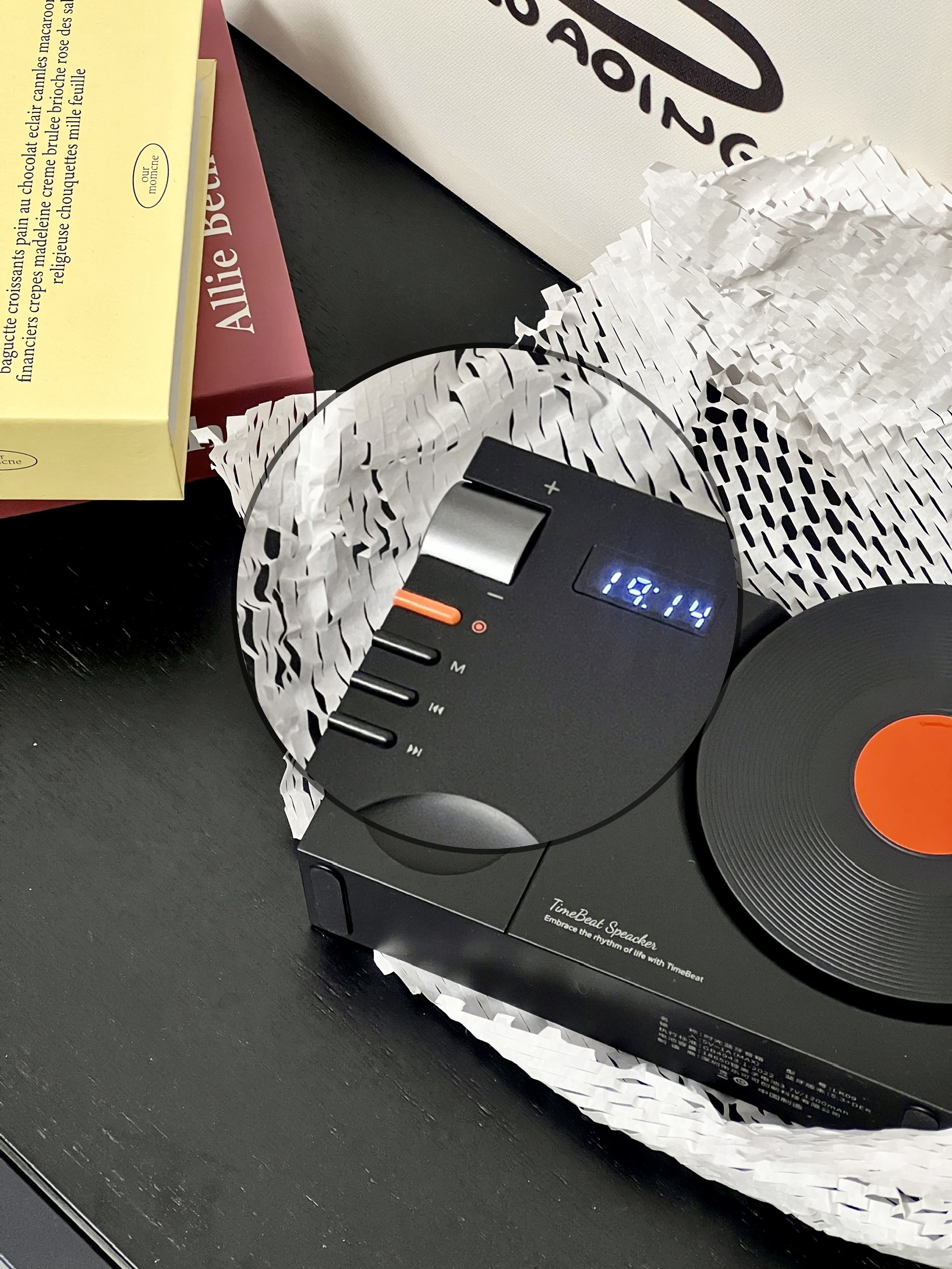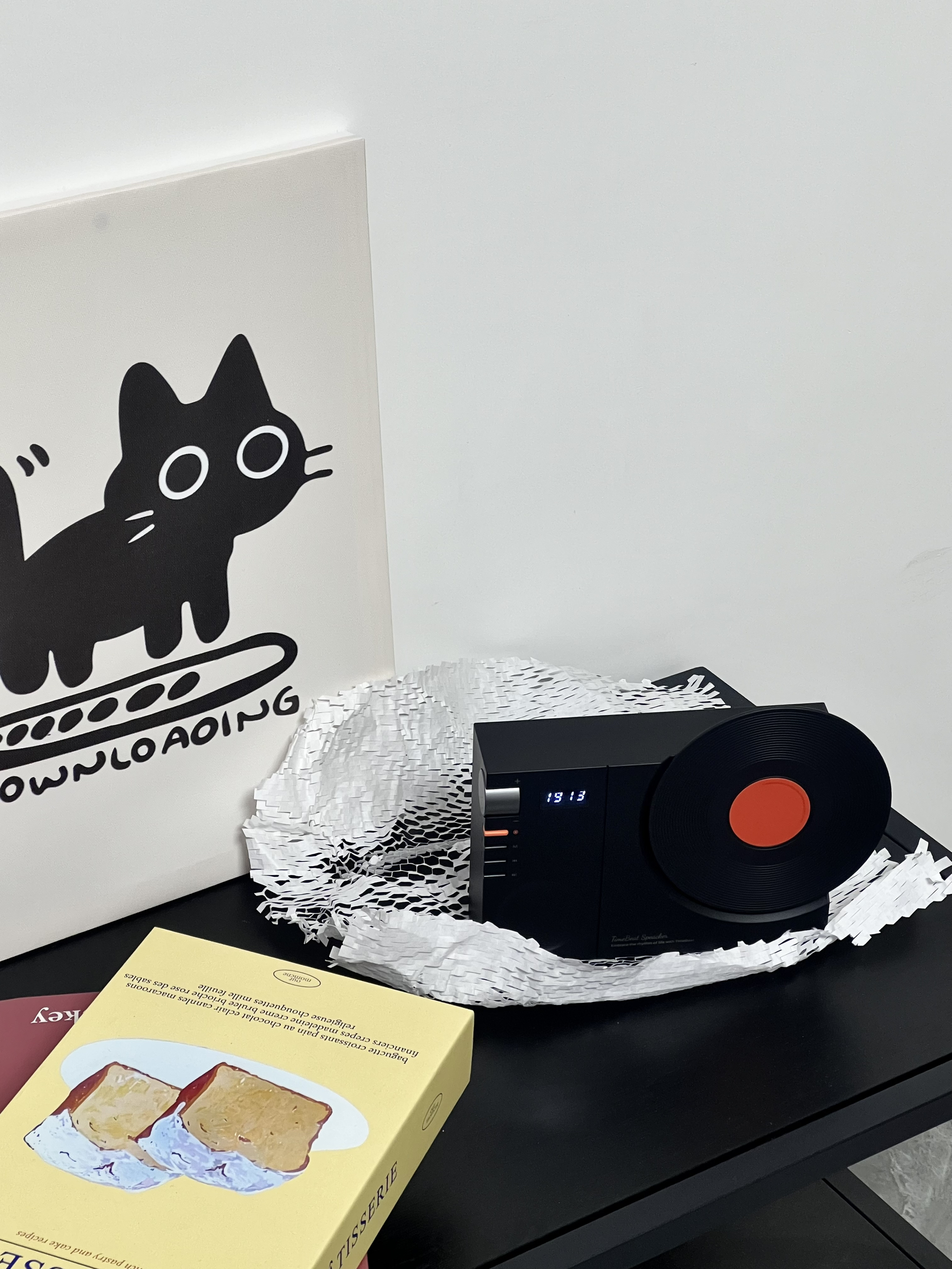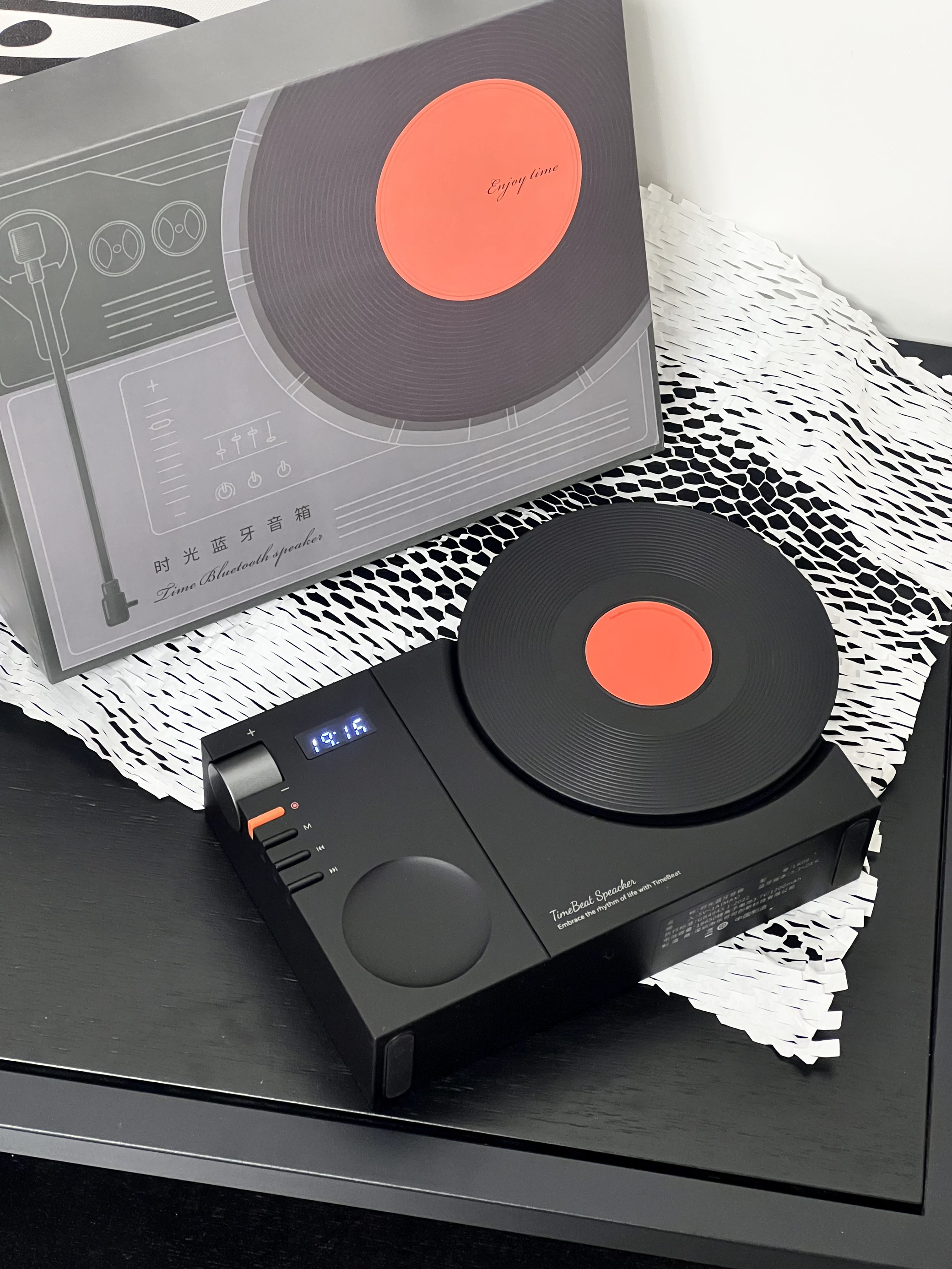 黑色尊嘟超级有质感! 胶片💿会随着音乐小!而转动 氛围感拉满 蓝牙连接迅速 音质清晰 按键灵敏 还可以显示时间哦 不听歌的时候是个超精致的复古摆件 这 谁收到谁不迷糊吖