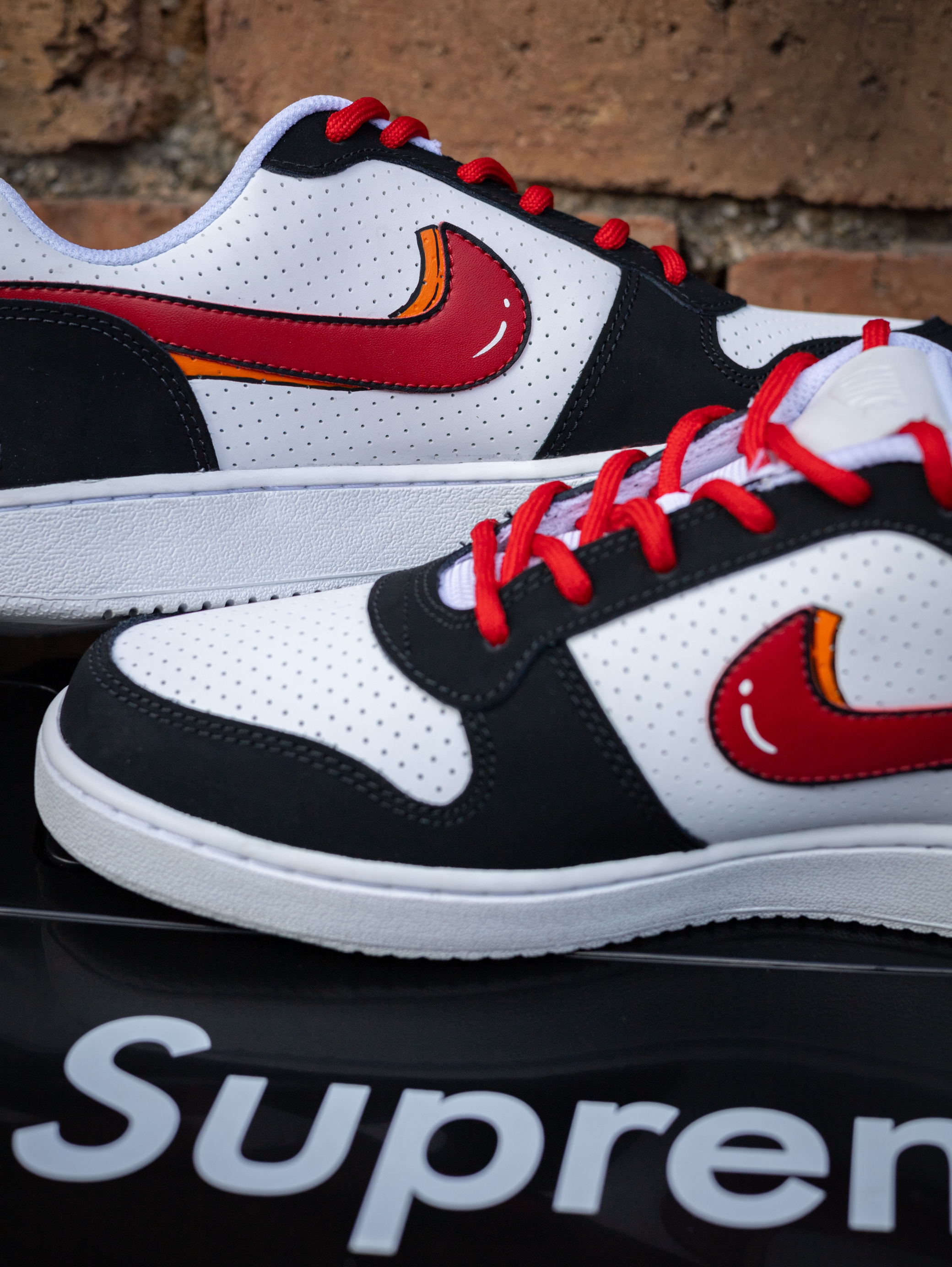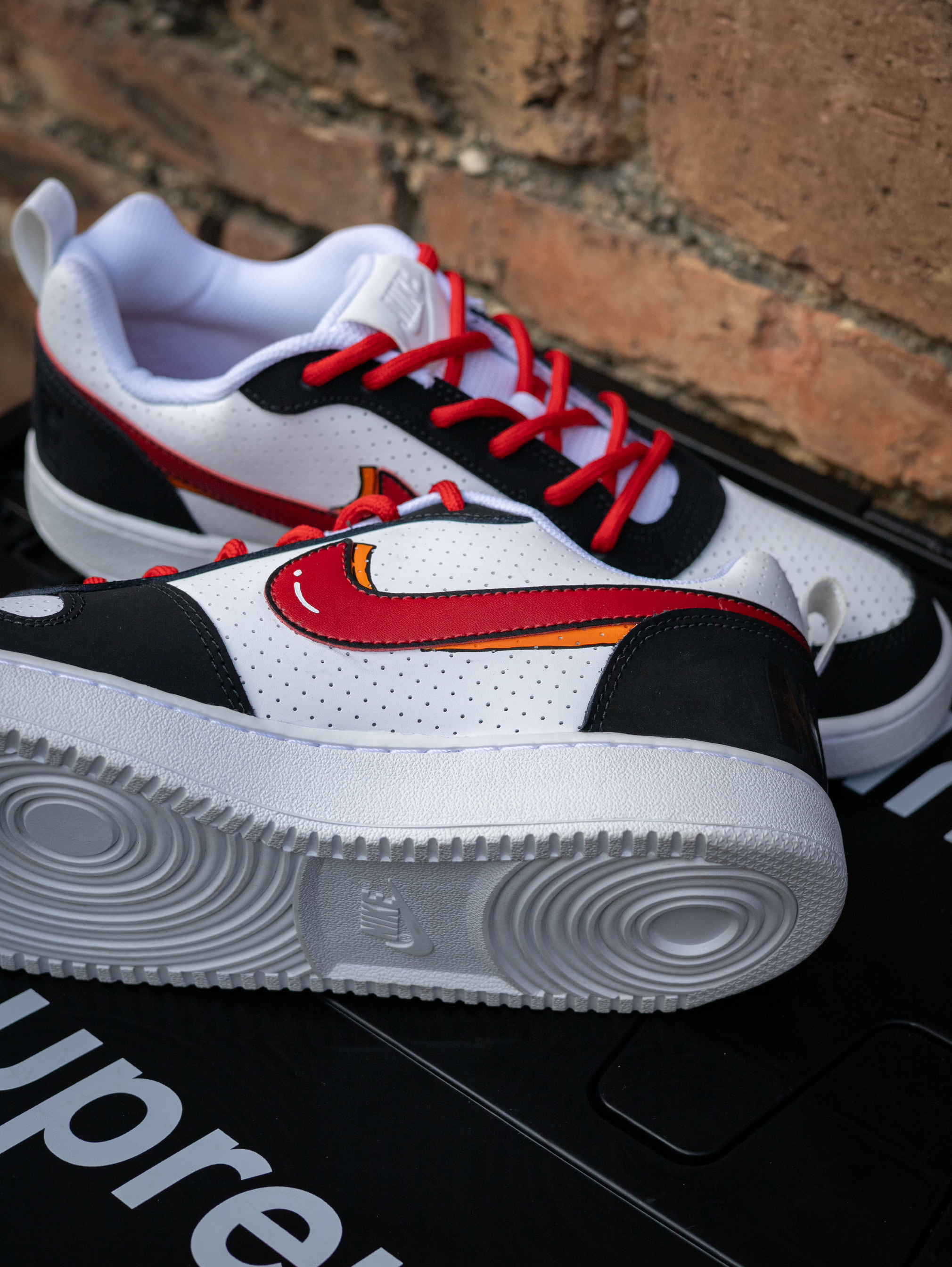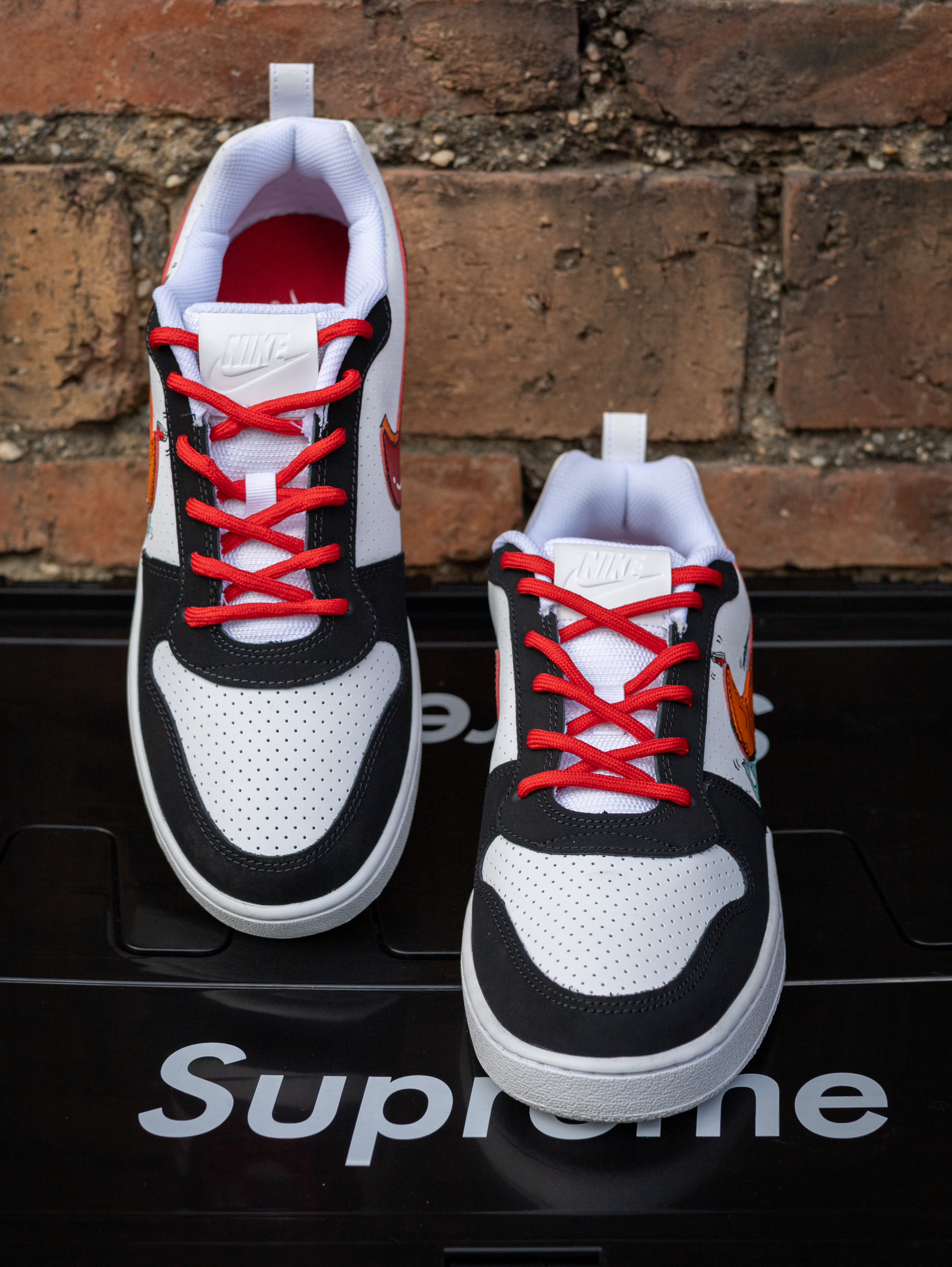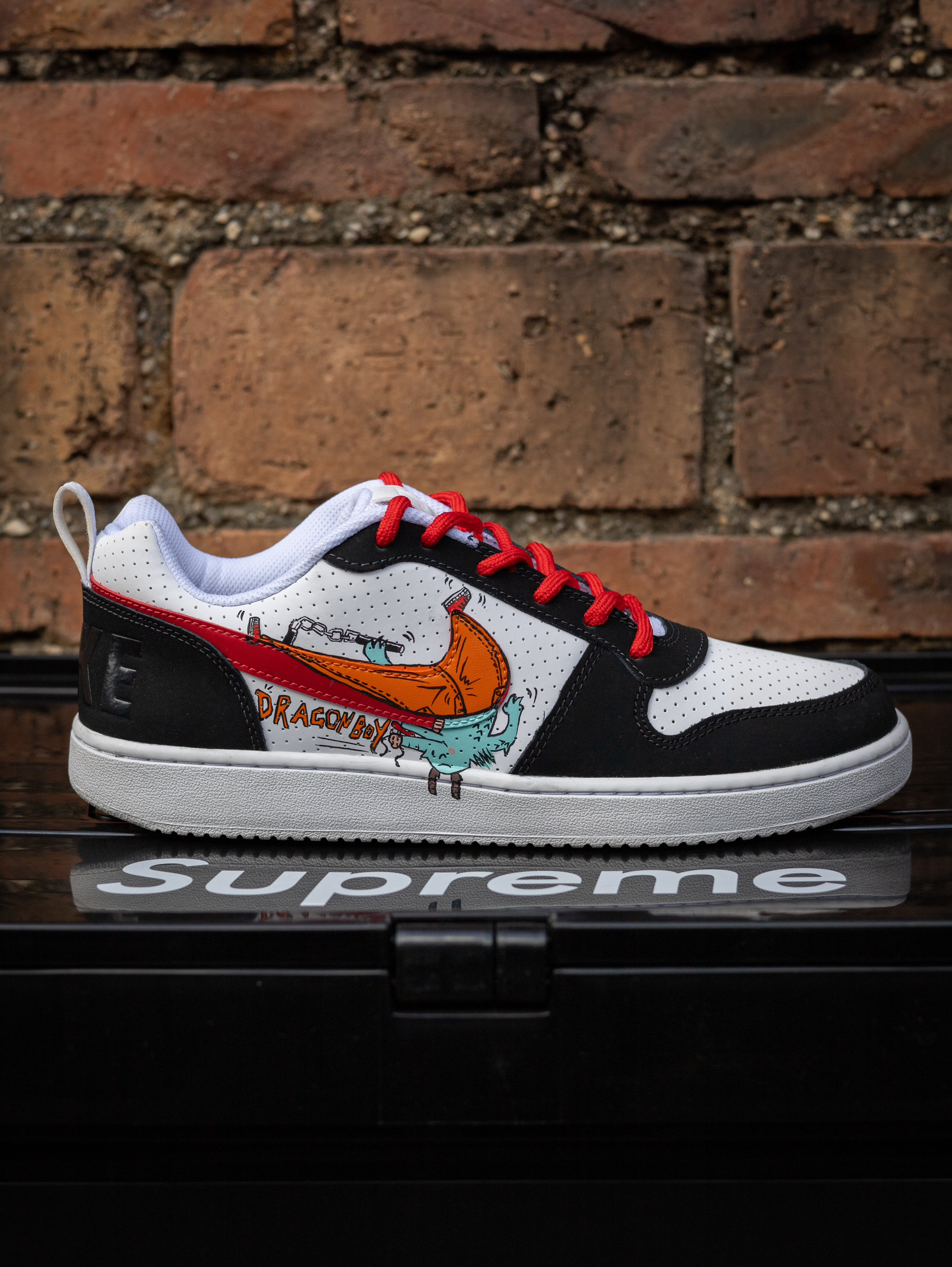 今天给大家分享一双很适合新年的小板鞋👟 Nike Court Borough『龙年🐉限定 』黑白红 整双鞋由白色/黑色/红色等为主色调 鞋面选用了光面皮革+绒面皮革拼接 鞋头和鞋侧的密集透气孔保证了较好的透气性 鞋侧Swoosh与卡通龙🐉的涂鸦设计颇为吸睛 鞋尾的白色织物提拉带方便日常穿脱调整 白色的中底和同色多纹路的橡胶大底收尾 整体来说这是一双很有个性的定制小板鞋👟 颜值在线 时尚潮流 非常适...