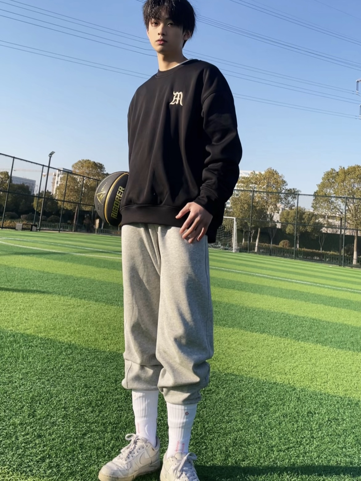 篮球男孩什么都能少 唯独装备必不能少 今天分享的是我日常的篮球十袜子 篮球装备我一直选择的是 准者 RIGORER 这颗篮球是我实用频率很高的一款🏀 华黑金配色的篮球 颜值方面嘎嘎的 PU的材质 防水又很耐磨 袜子也是选择了配套的🧦 是全棉材质的运动长袜 面料超厚实 透气性也很OK 包裹性很强 上脚很舒服