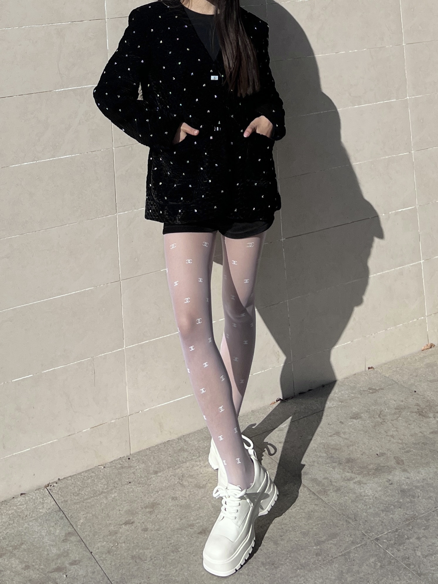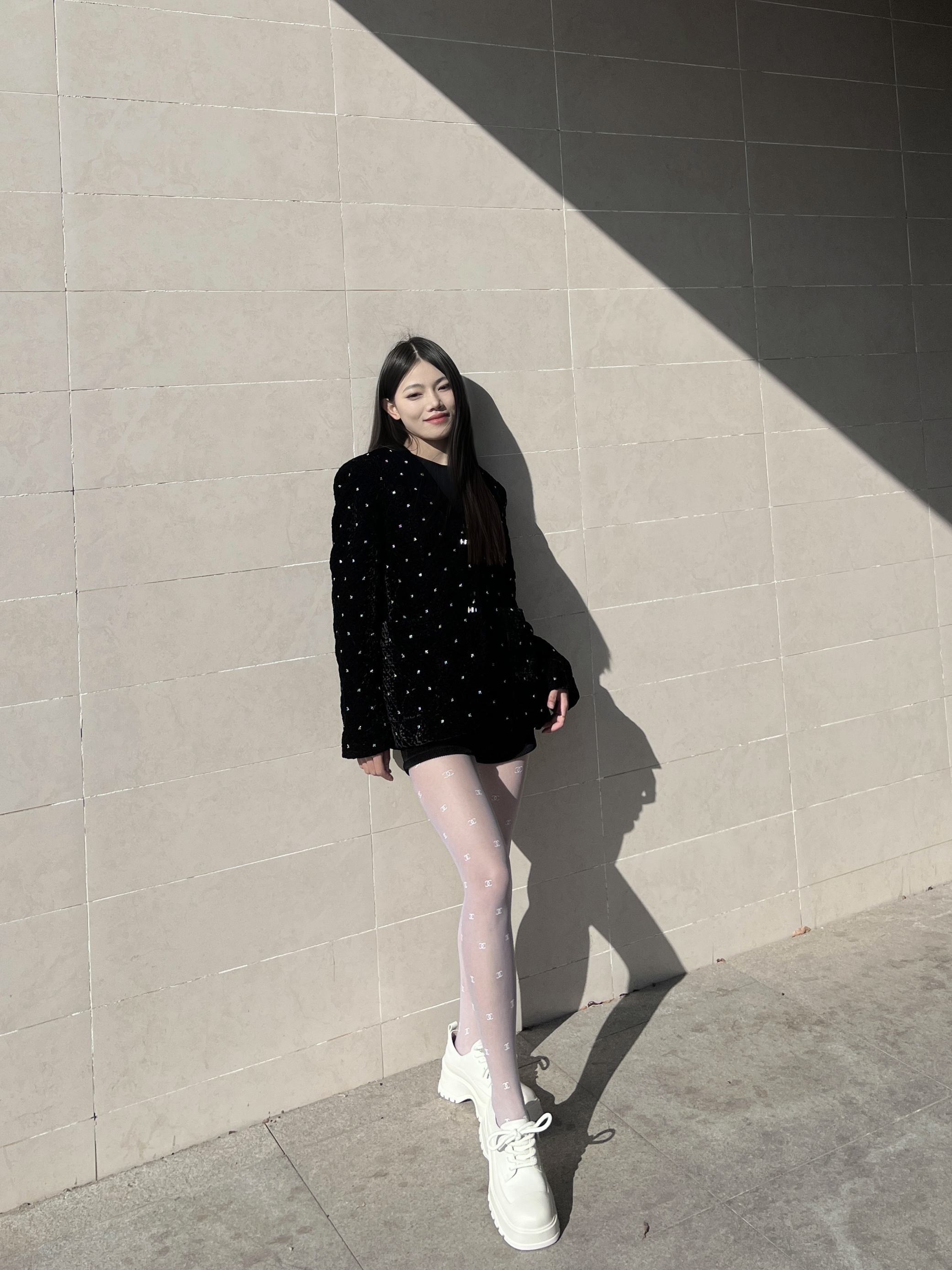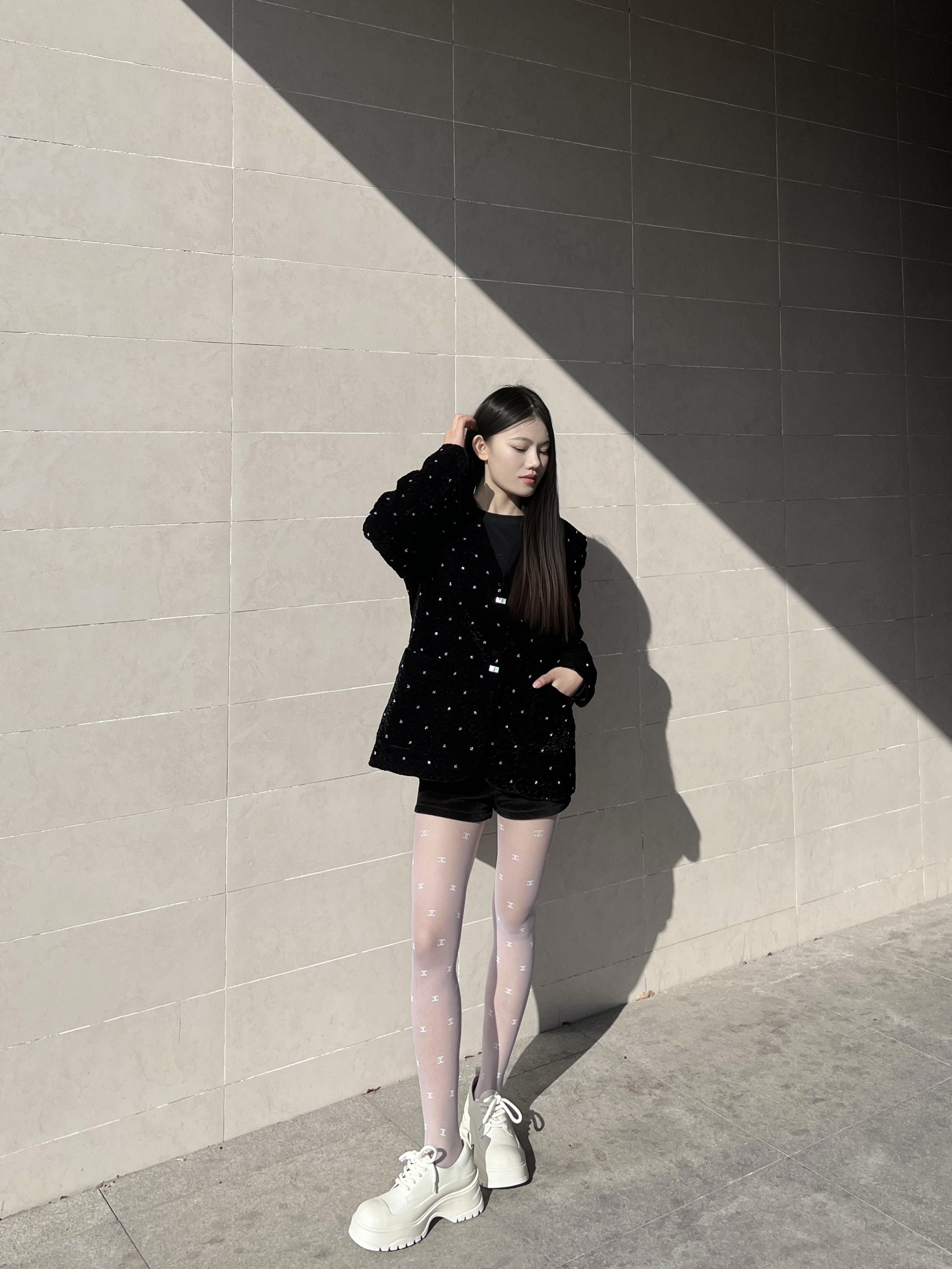 看惯了黑丝搭配 就换种风格叭 经典黑白搭配也可以很纯欲 - 黑色重工订珠外套 搭配一条白色丝袜 纯欲感瞬间拉满‼️ - 再搭配一双高底鞋子 简约百搭又不失新潮~