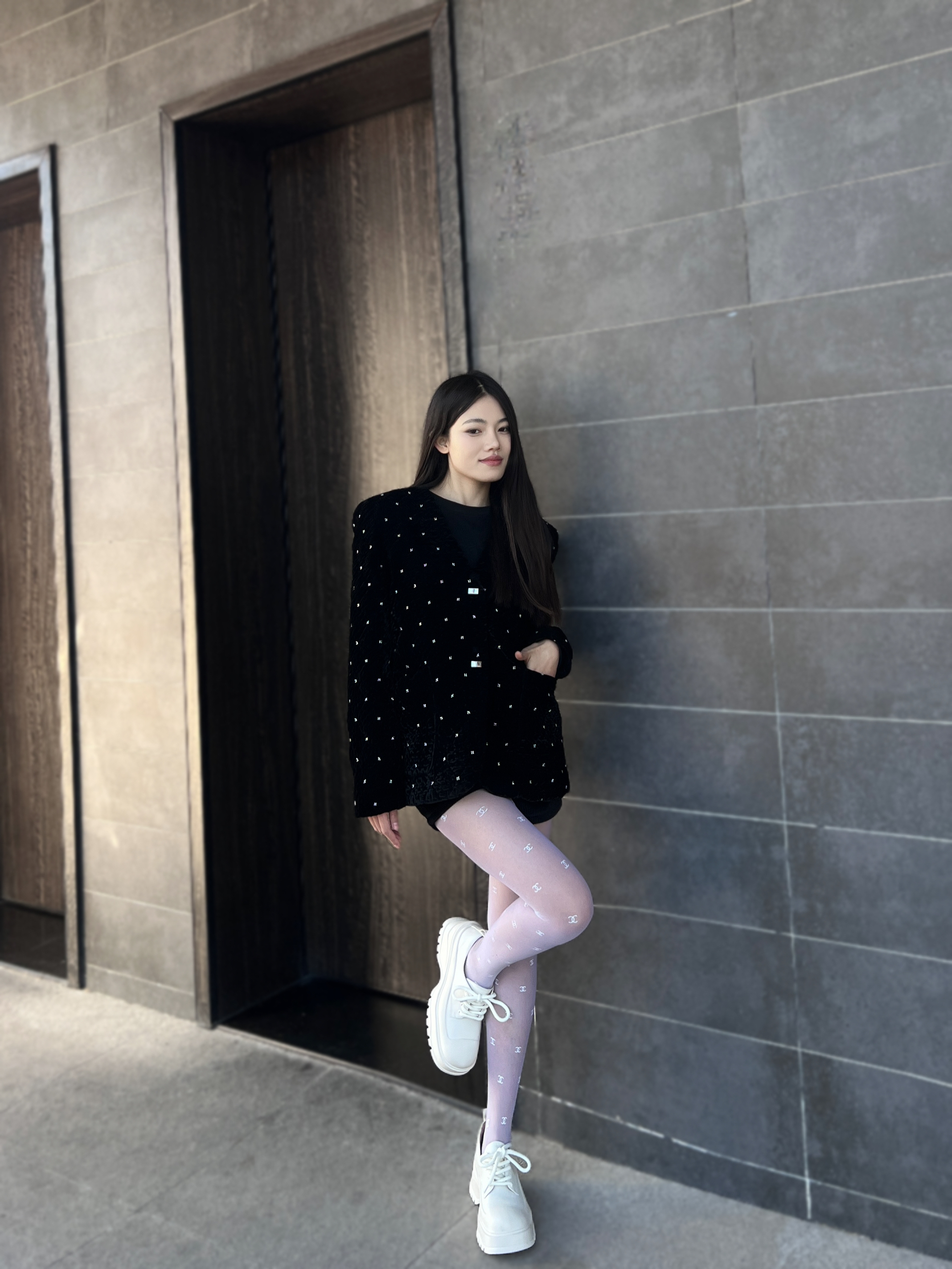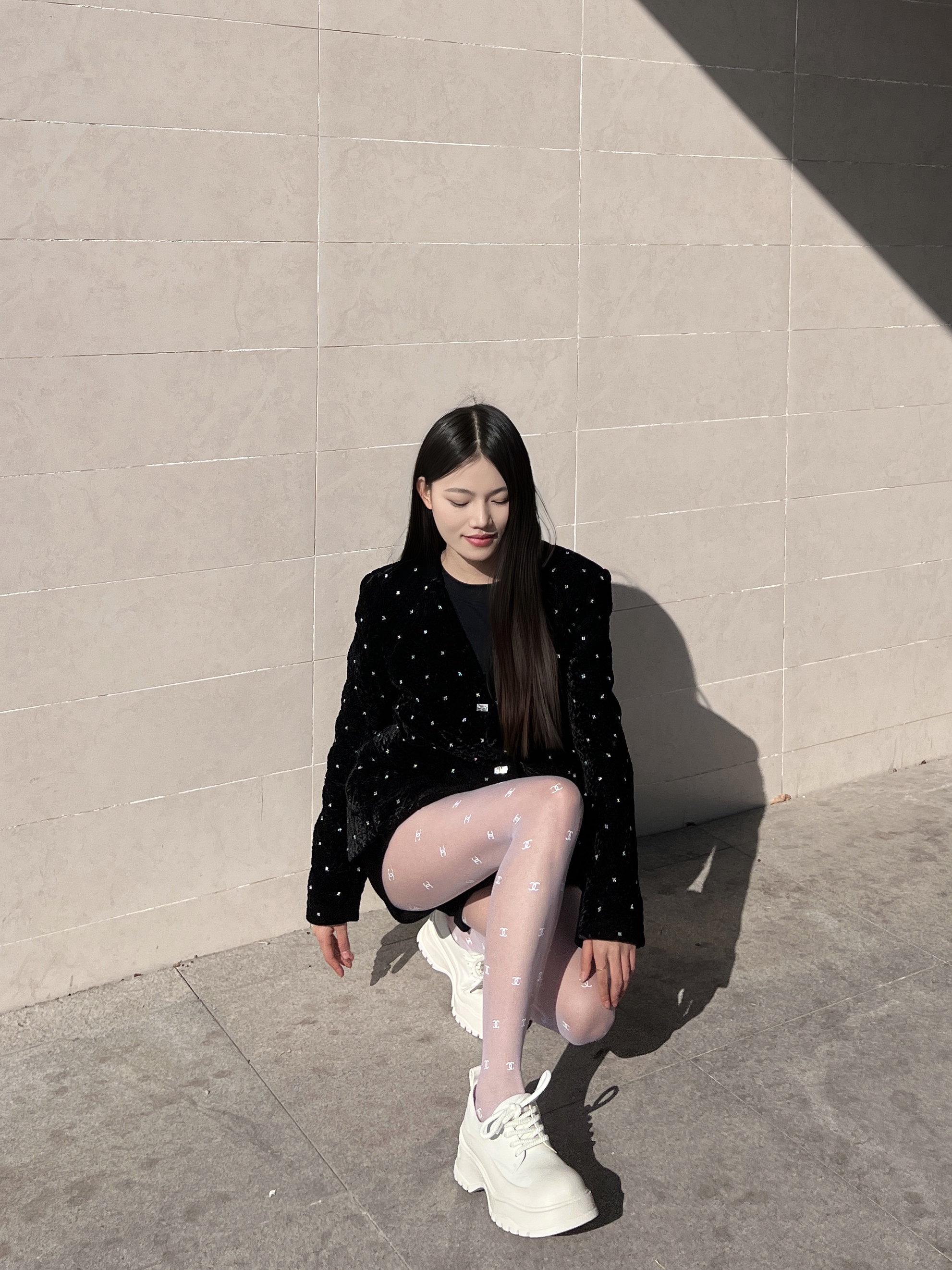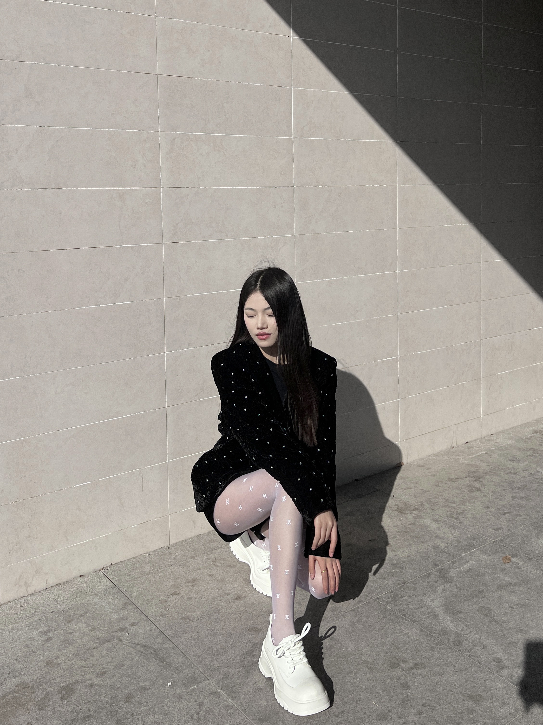 看惯了黑丝搭配 就换种风格叭 经典黑白搭配也可以很纯欲 - 黑色重工订珠外套 搭配一条白色丝袜 纯欲感瞬间拉满‼️ - 再搭配一双高底鞋子 简约百搭又不失新潮~