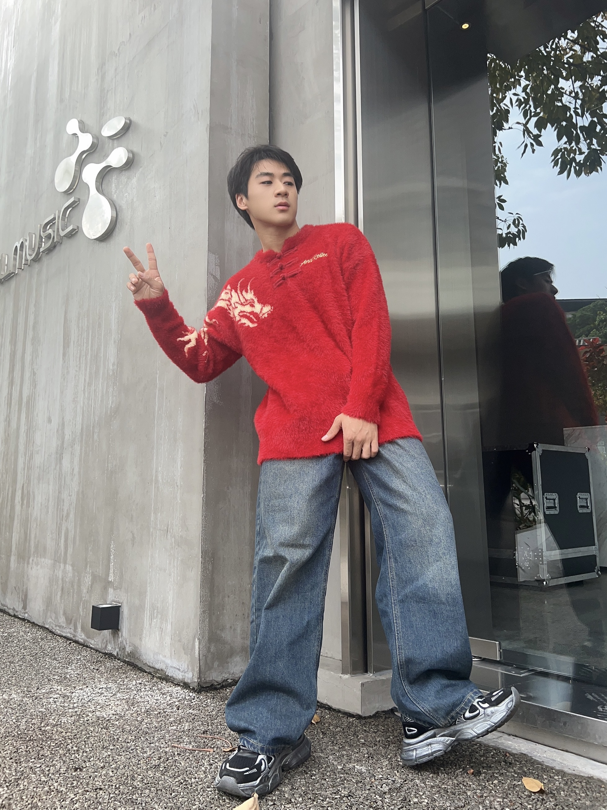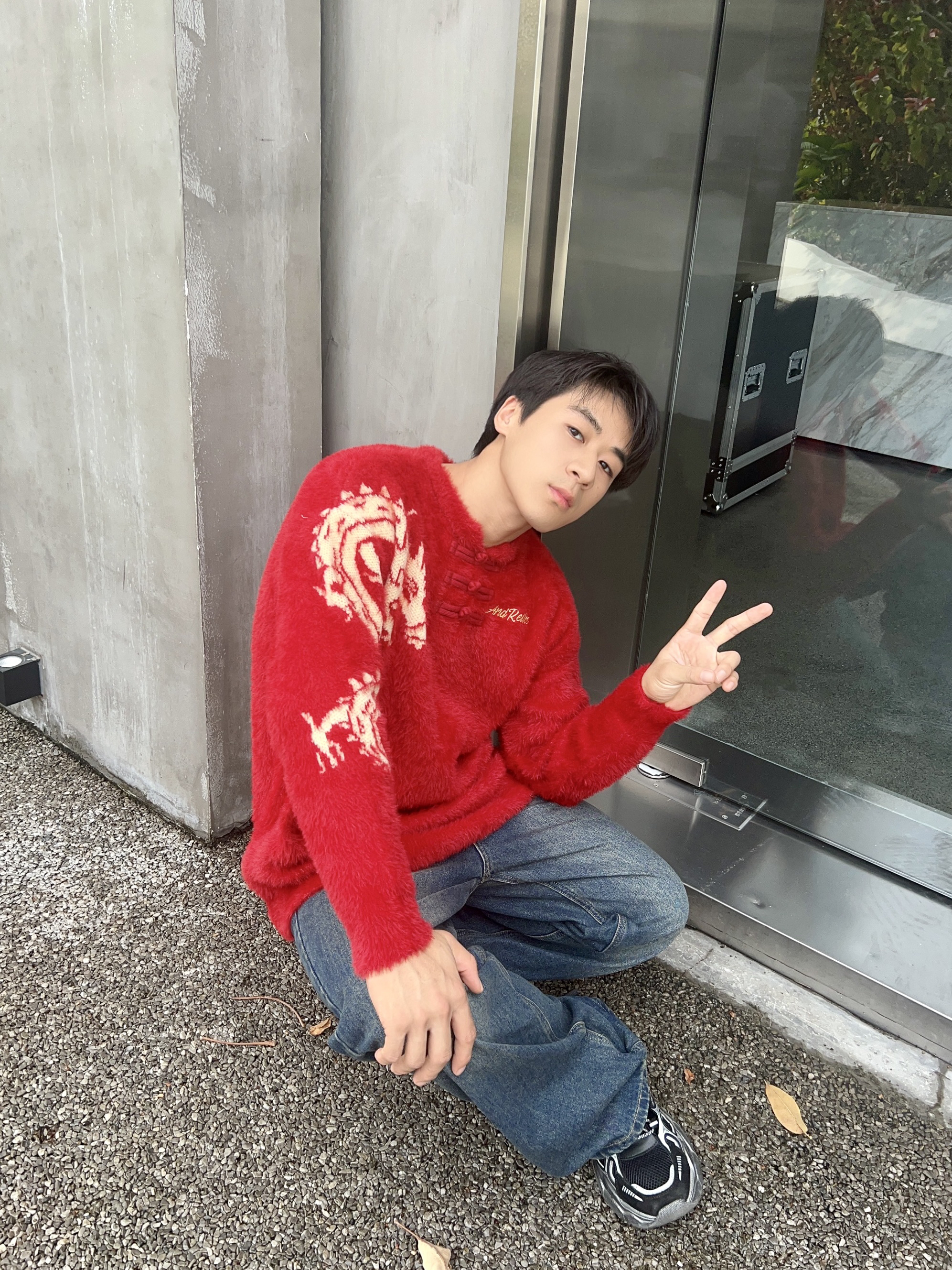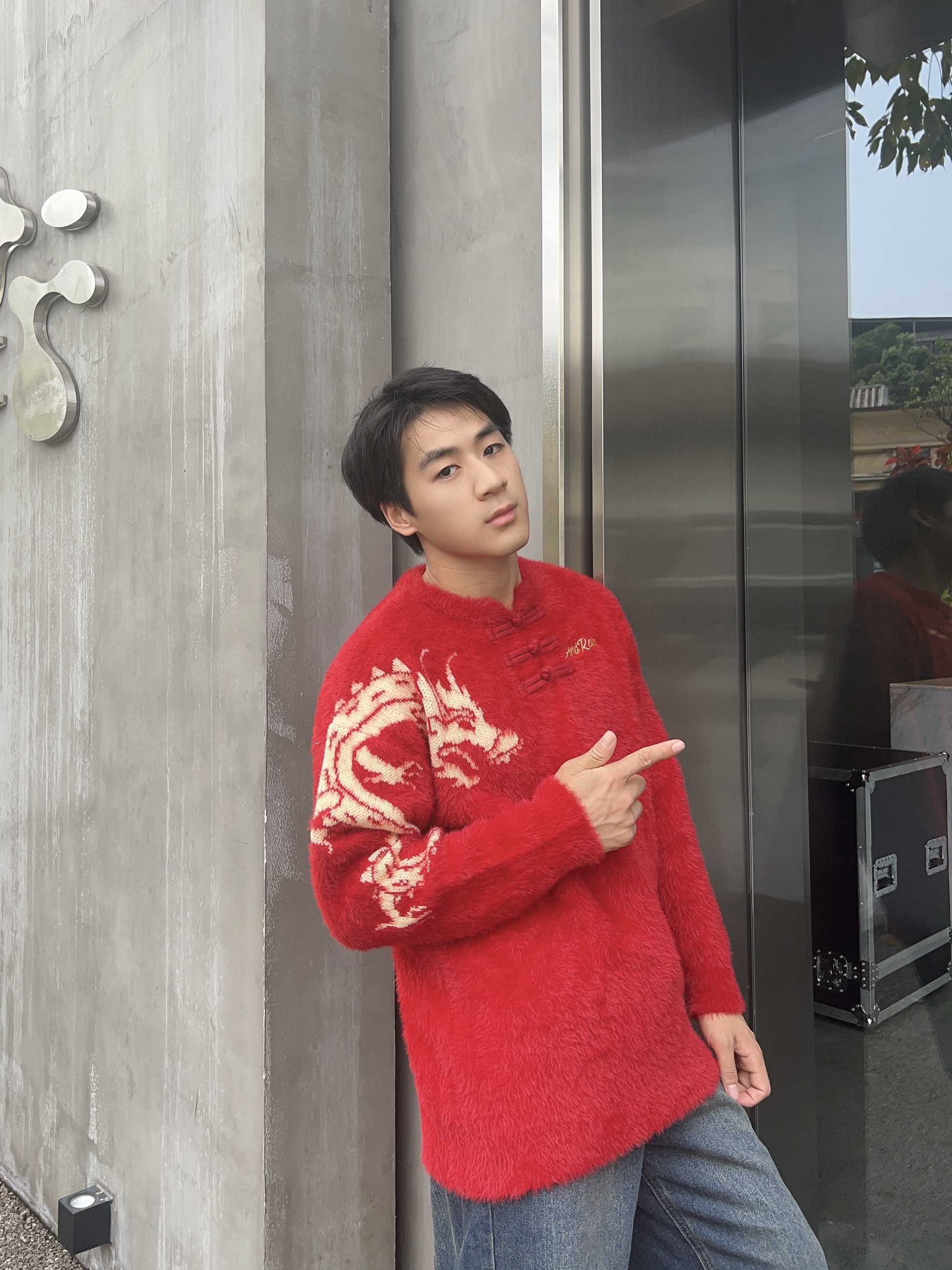 今年龙纹图案的毛衣搭配是真的特别 红蓝也可以很出圈呐! 出门游玩随手拍的照片也是真的靓哇!