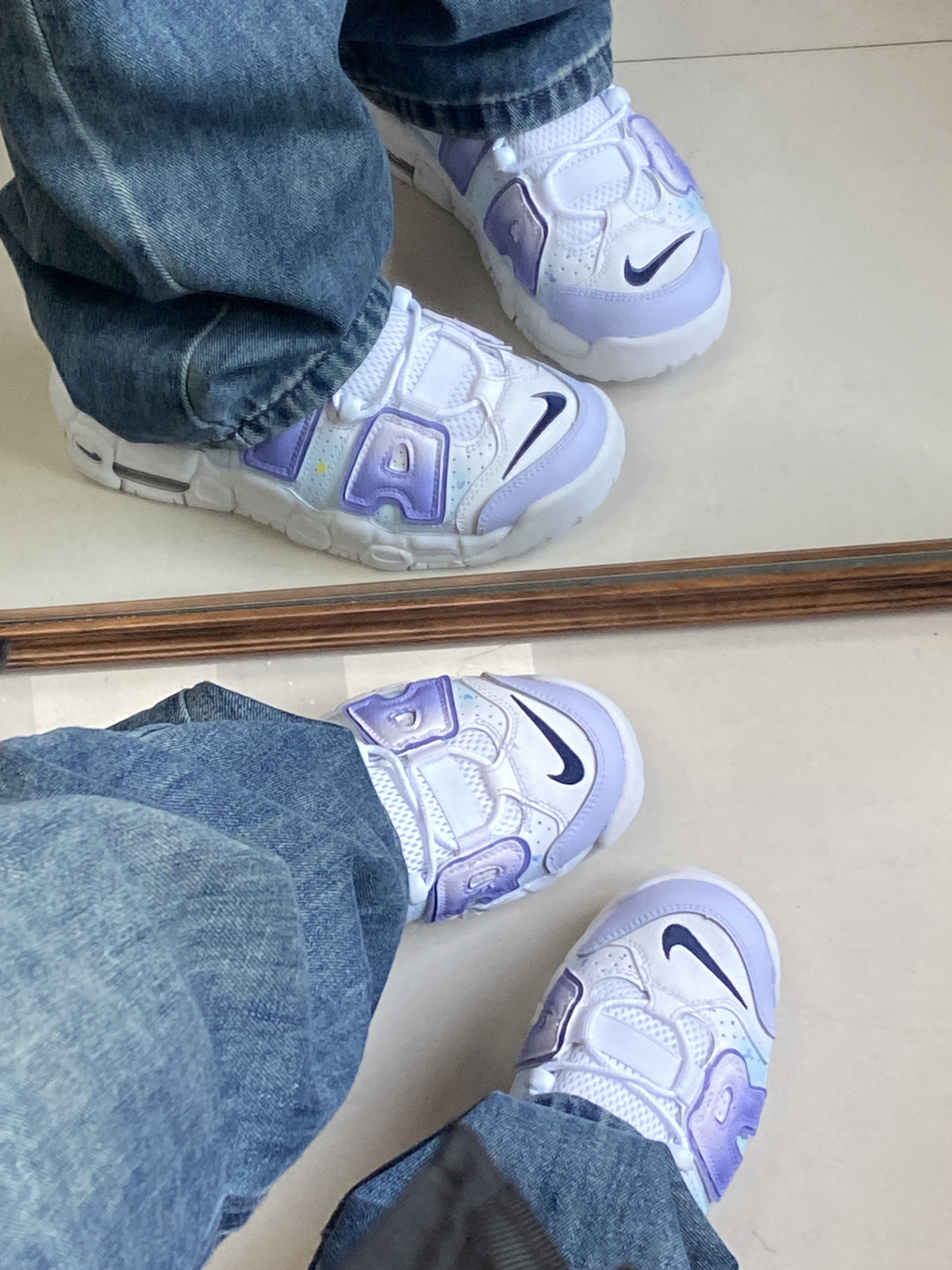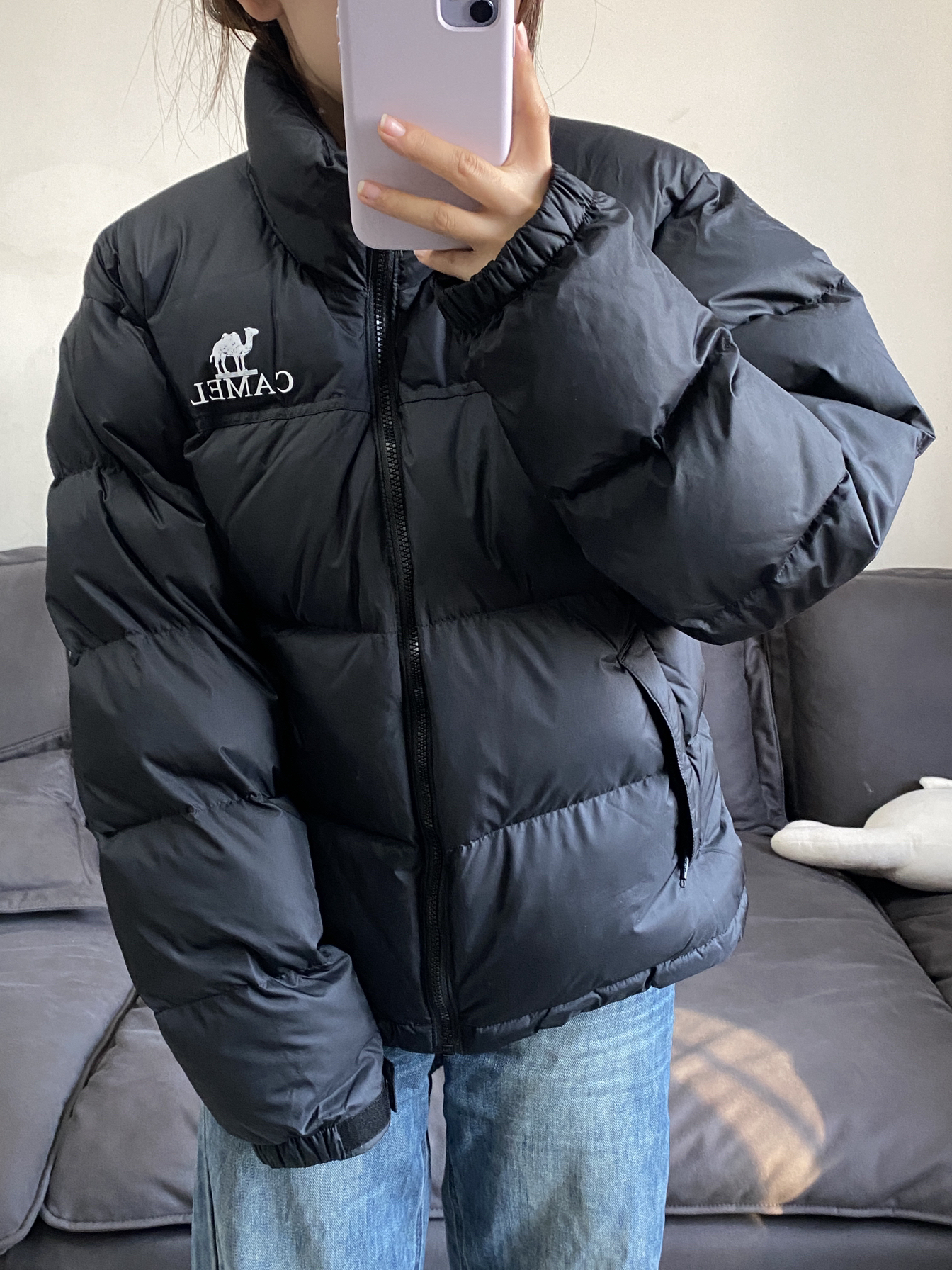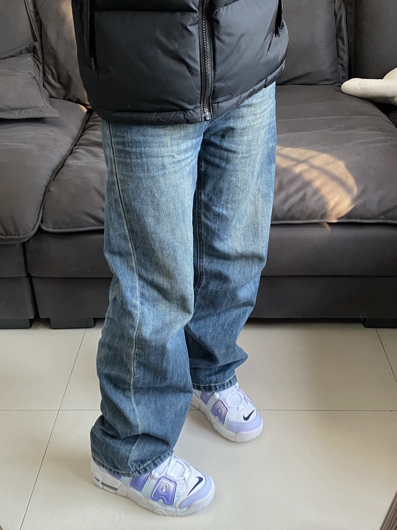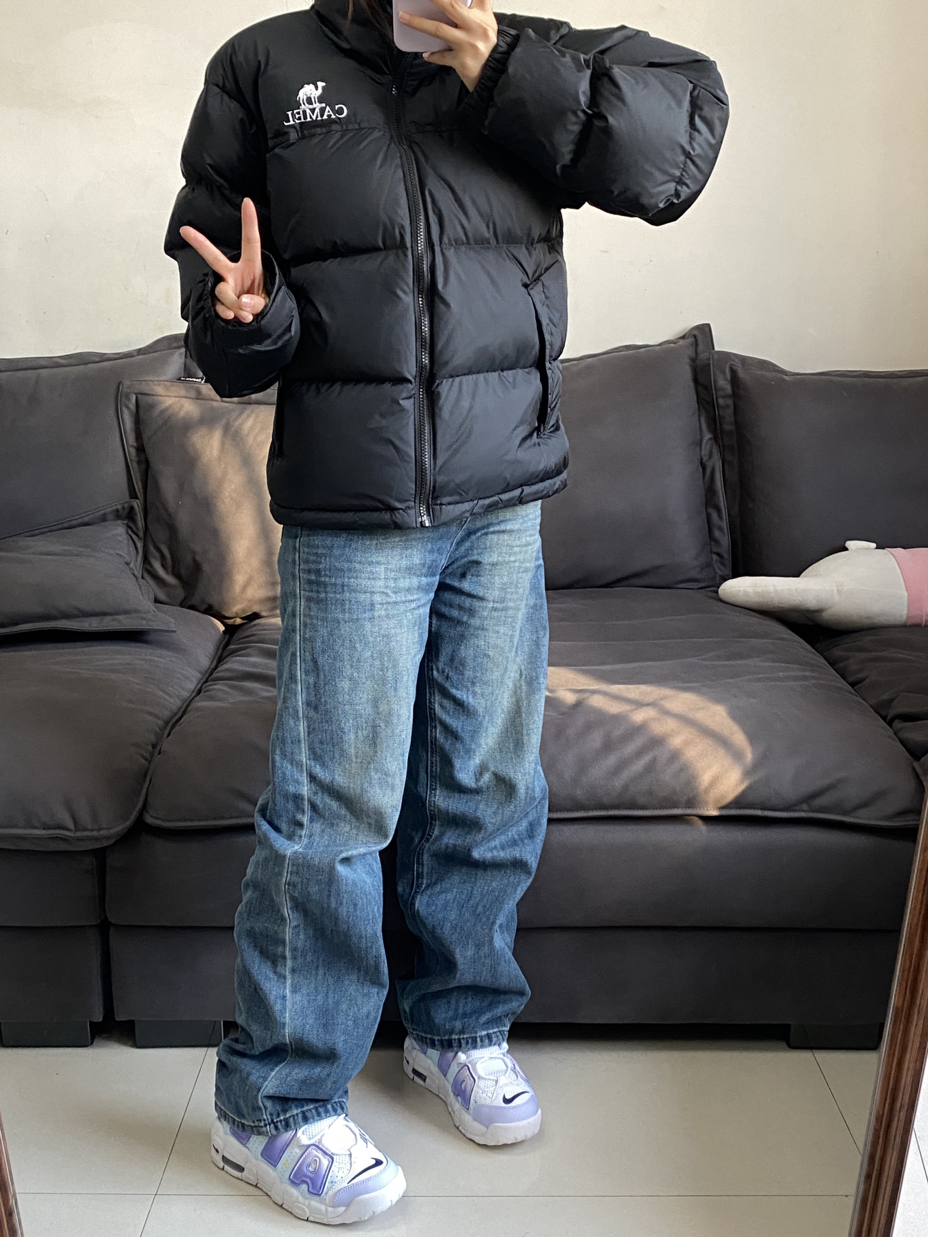 入手了一件巨保暖厚实的羽绒服 纯黑配色还蛮耐脏的 面料啥的蛮舒服的 防水防油污 我穿的是s码 裤子就搭配的最简单的牛仔系列 这次达芬奇定制鞋的星月夜给我上大分了 葡萄紫的配色还蛮特别的 一些细节啥的还蛮戳我的 156/45 我平常鞋码是36.5 这款入手的是37.5 穿着比较合适