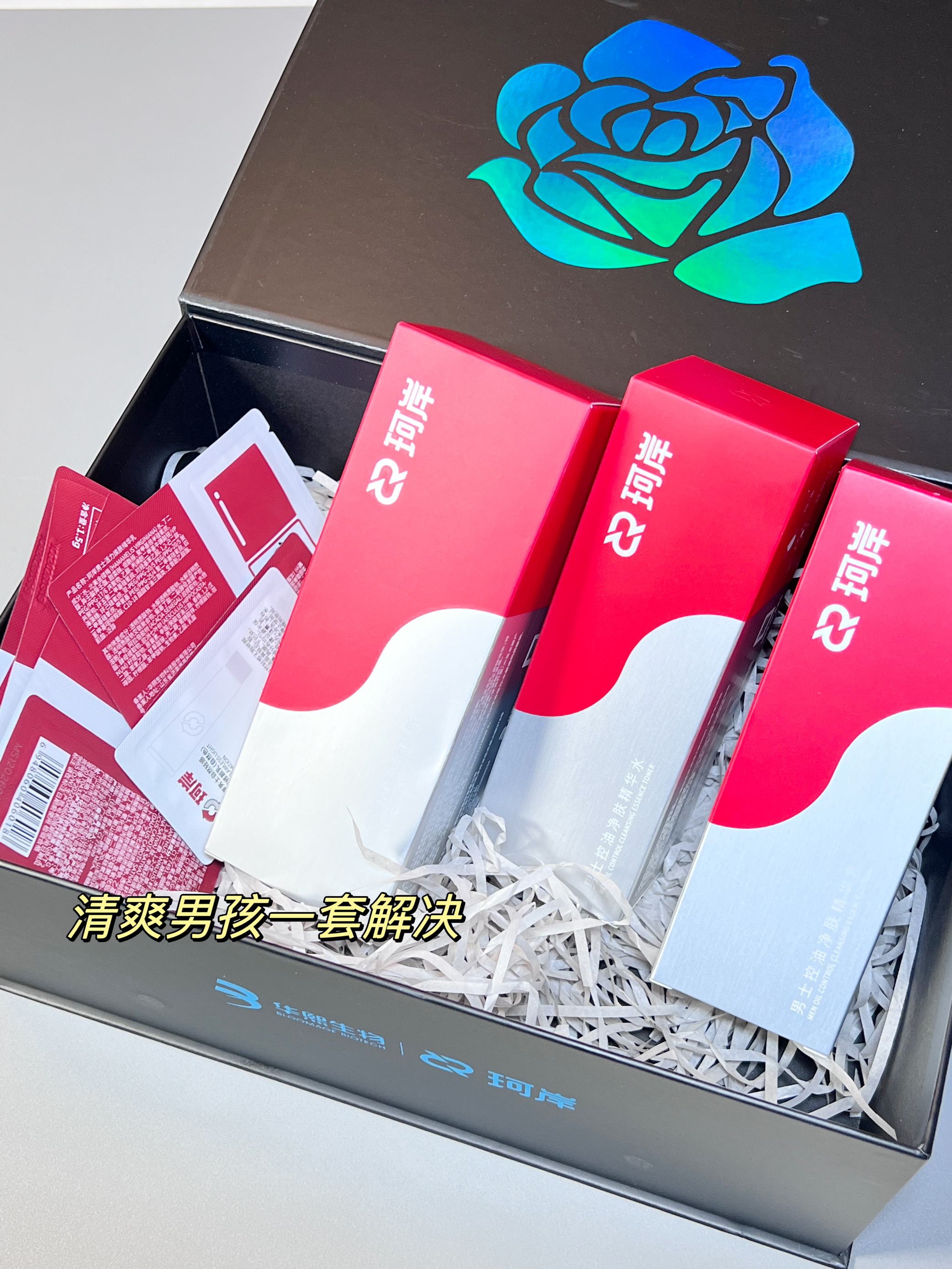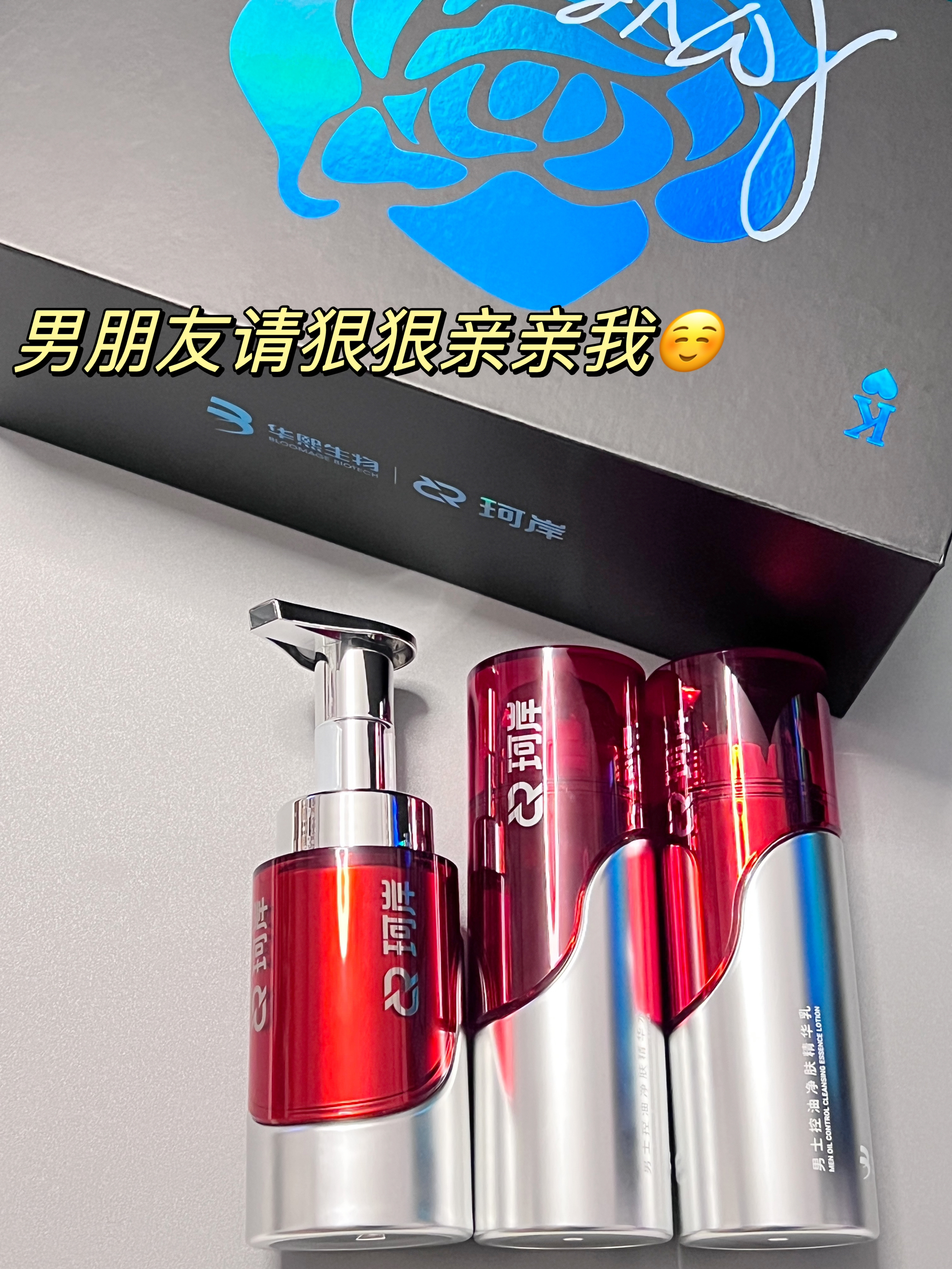 男朋友生日临近过年真是好! 这样生日和过年礼物一起送,嘿嘿嘿剩了一顿礼物好家伙 珂岸玫瑰恋爱礼盒,送男朋友很适合耶 因为我的男朋友收到真的肉眼可见的很开心! 一套解决我的油腻男孩,还我清爽大男孩男友~嘿嘿 黑粉设计尊嘟好好看啊~ 瓶身大红瓶+银色设计感很强,男朋友放在梳妆台上很高级又好看~ - 洁面是氨基酸泡沫,很简单适合懒人男朋友 水乳也都是按压泵、可以说珂岸真懂懒人男生哈哈哈哈 男朋友收到礼物...