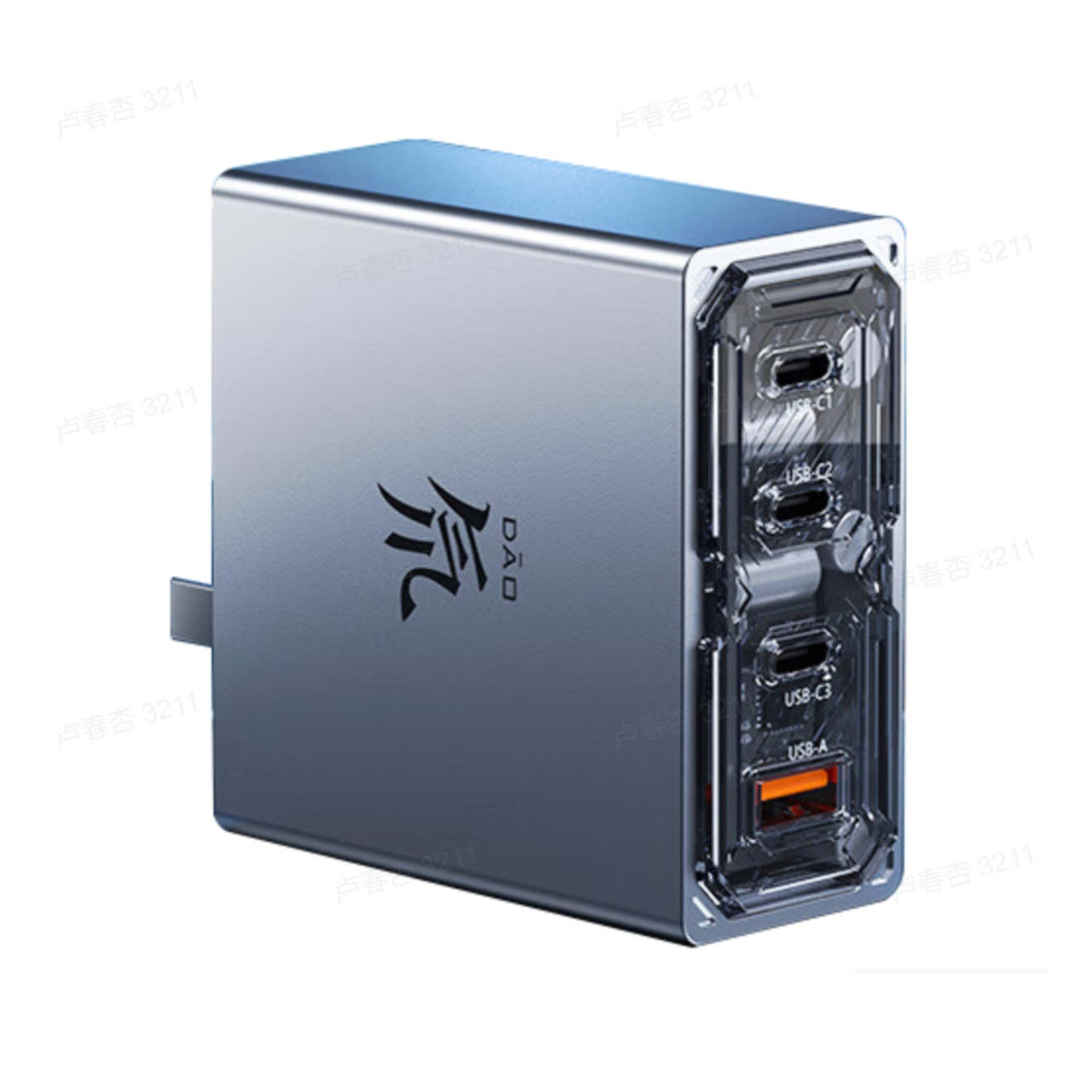 氘锋的氮化镓,65W 80W 100W,还有120W。 每一个都不只一个口。 有2C1A的,也有3C1A的。 这款80W的最具代表性。 它的大小尺寸和其他的80W差不多,但是它多了2个接口。 这接口一多,出差就省心了。 少带2个充电头,轻装简行。 氮化镓充电技术有着大功率,发热少体积小的优点。 手机大厂按原装充电器的高标准制作,充电安全有保障。 极客透明风,在颜值这块,够硬!