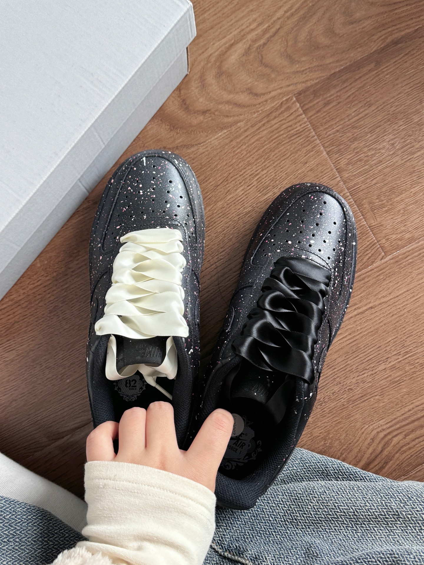 新买的鞋子真的很好看 刚拿到手就迫不及待打开先拍照 很喜欢这个鞋带设计 搭配在一起小众又高级 鞋面的泼墨设计也好好看📓 过完年回学校就穿这双噜~ #2024的第一双鞋 #靠这双凹出时尚感 #新年少不了这双鞋 #穿上新鞋过新年 #拜年新鞋已就位
