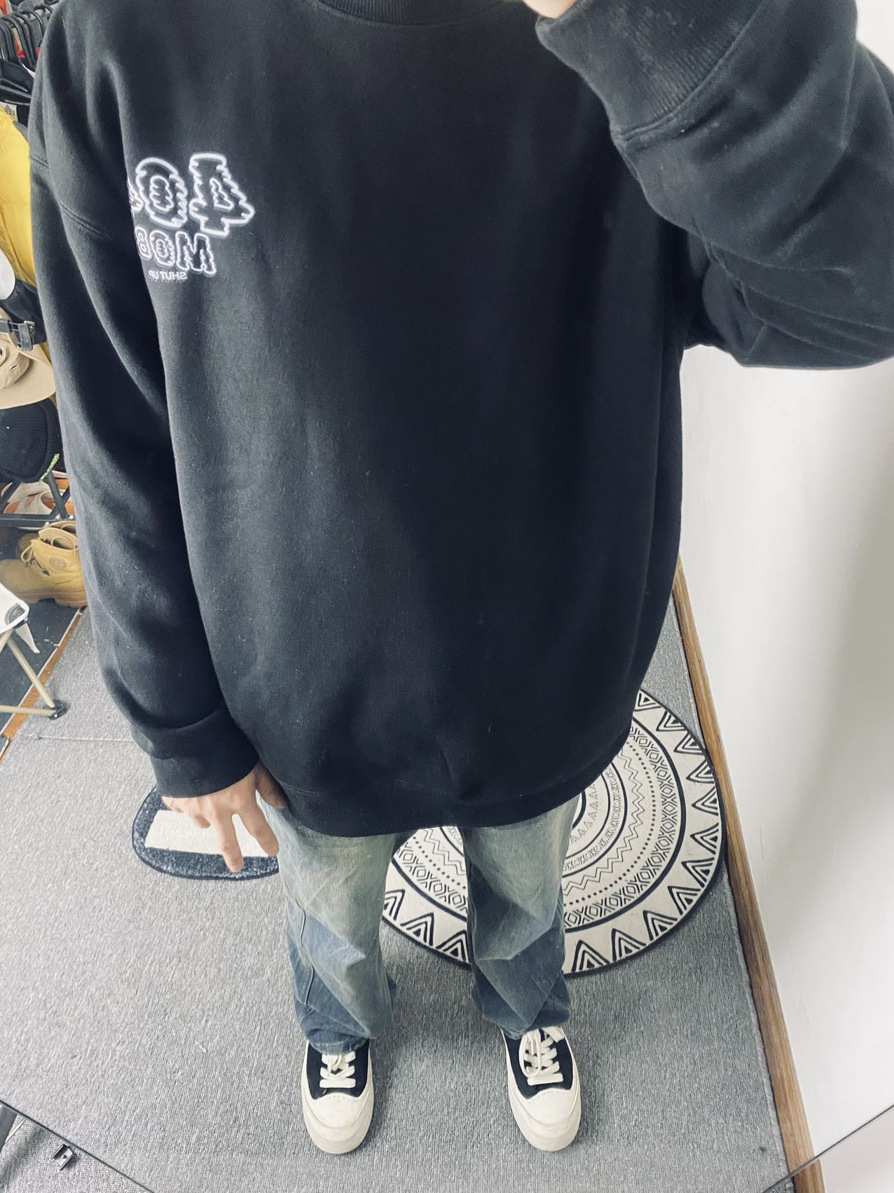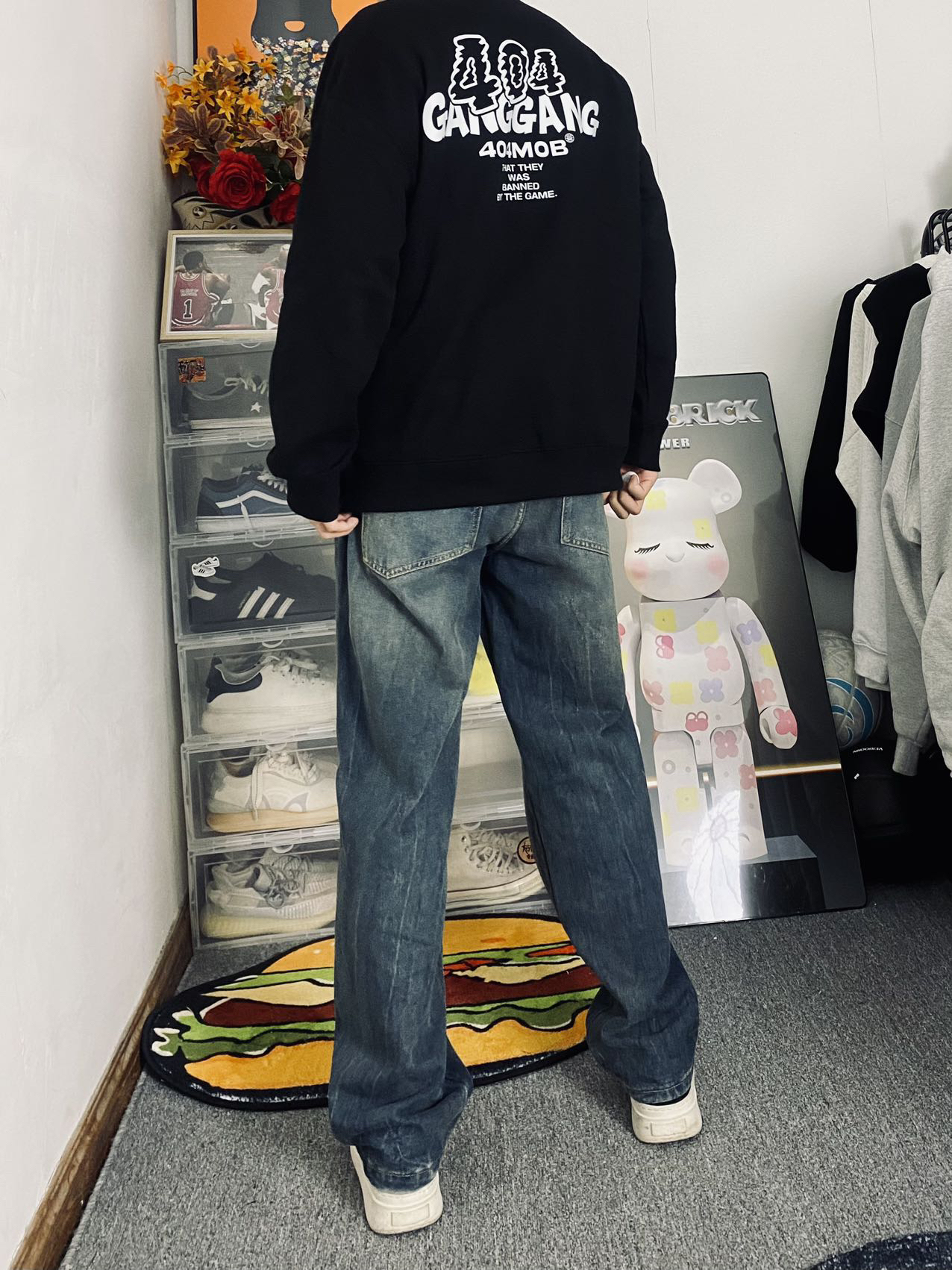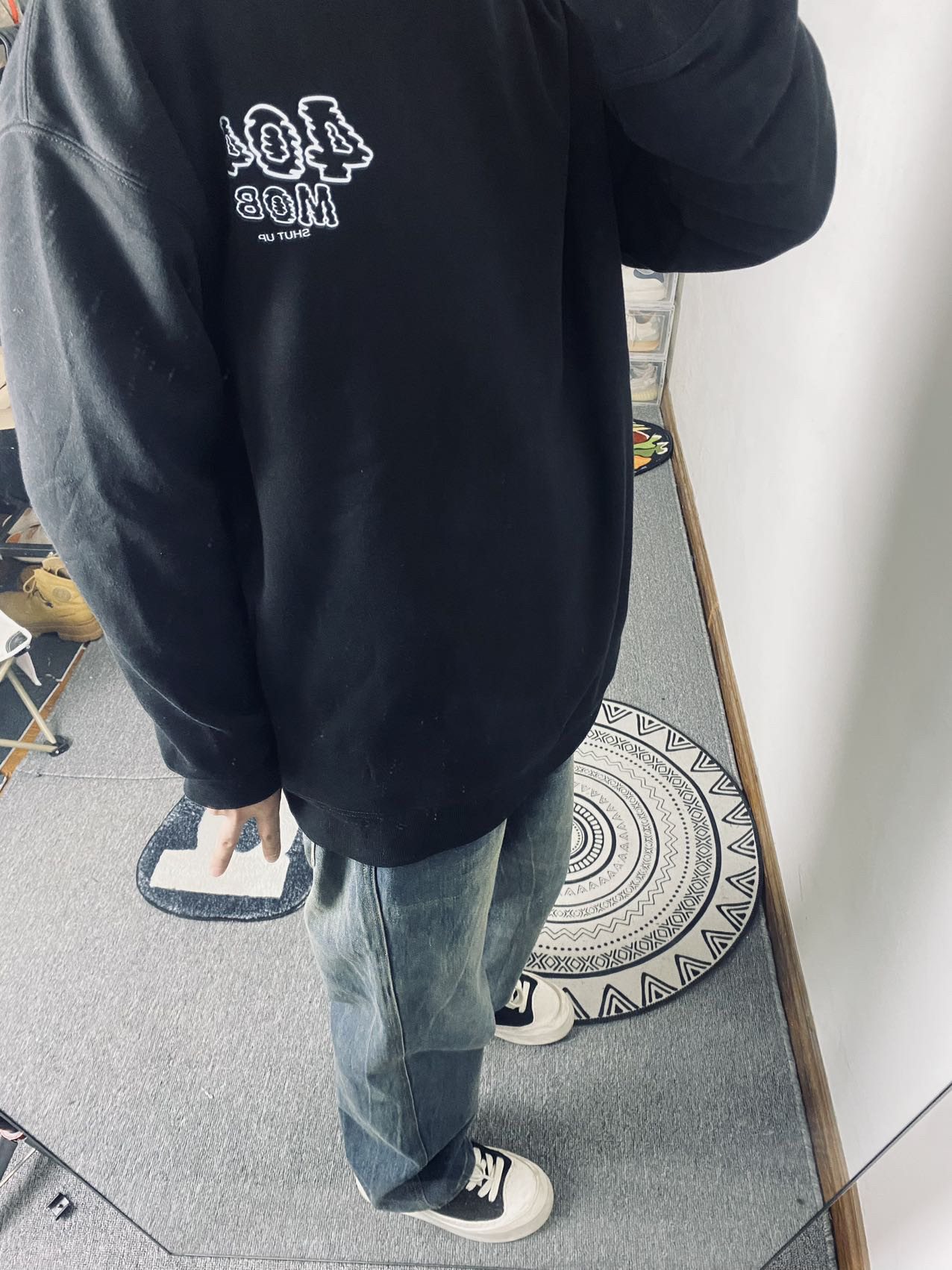 🔥冰美式今日穿搭 👔上衣穿了一件404圆领长袖卫衣 个人喜欢后背的大字母印花时尚潮流感觉适合我这种学生党 内里加绒加厚保暖也不错👌 — 👖裤子的话就选了一条美式做旧牛仔裤🪂 折痕裤面比较新颖独特 宽松的设计百搭 — 👟鞋子的话就是一条枫叶的小板鞋 鞋底比较软穿的挺舒服的❌ 身高/体重:178/130 👔xl