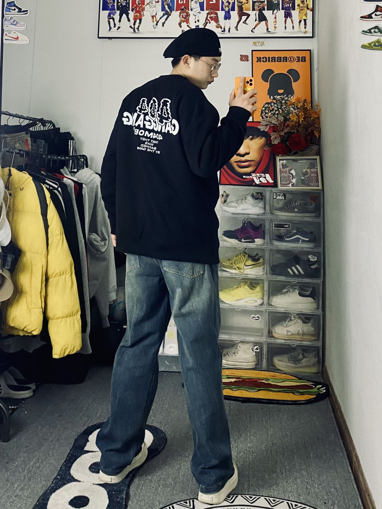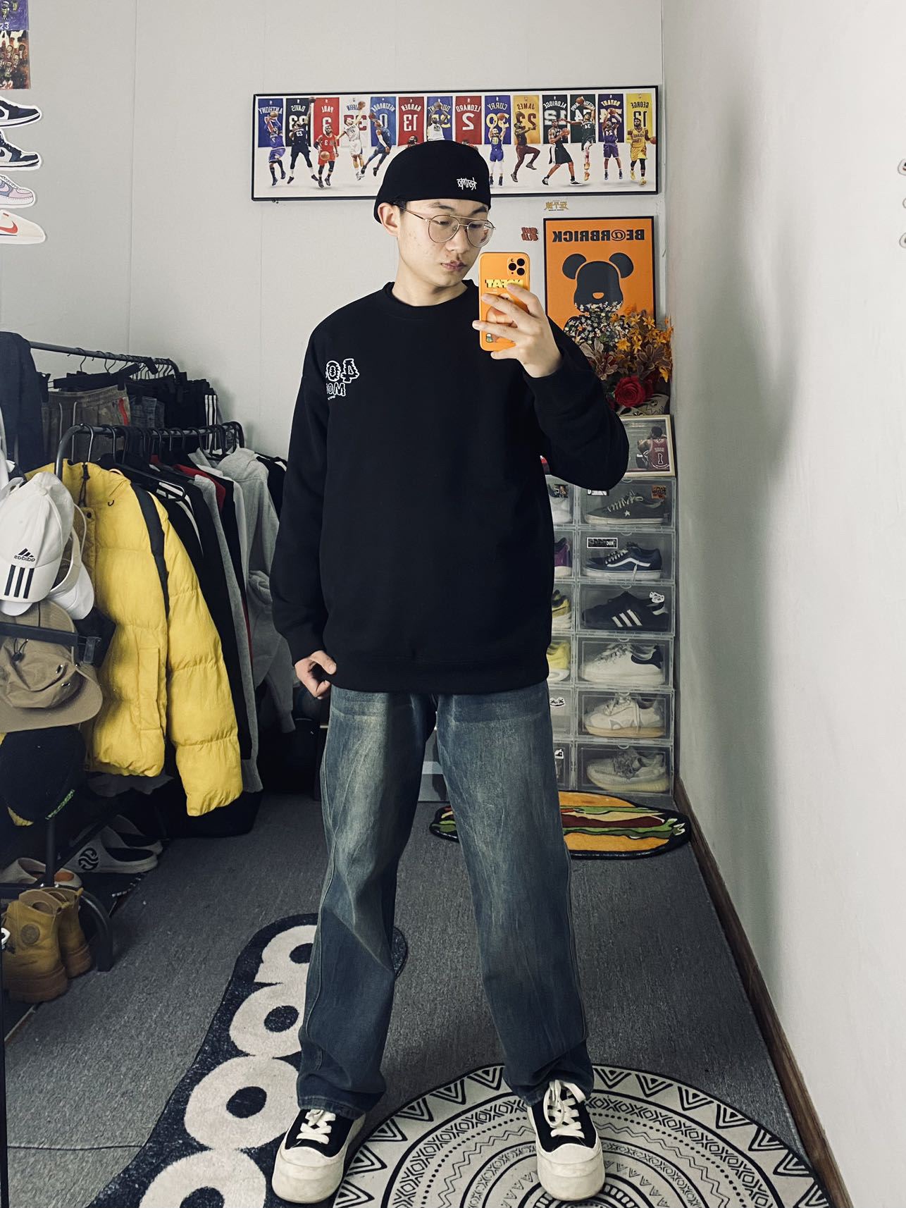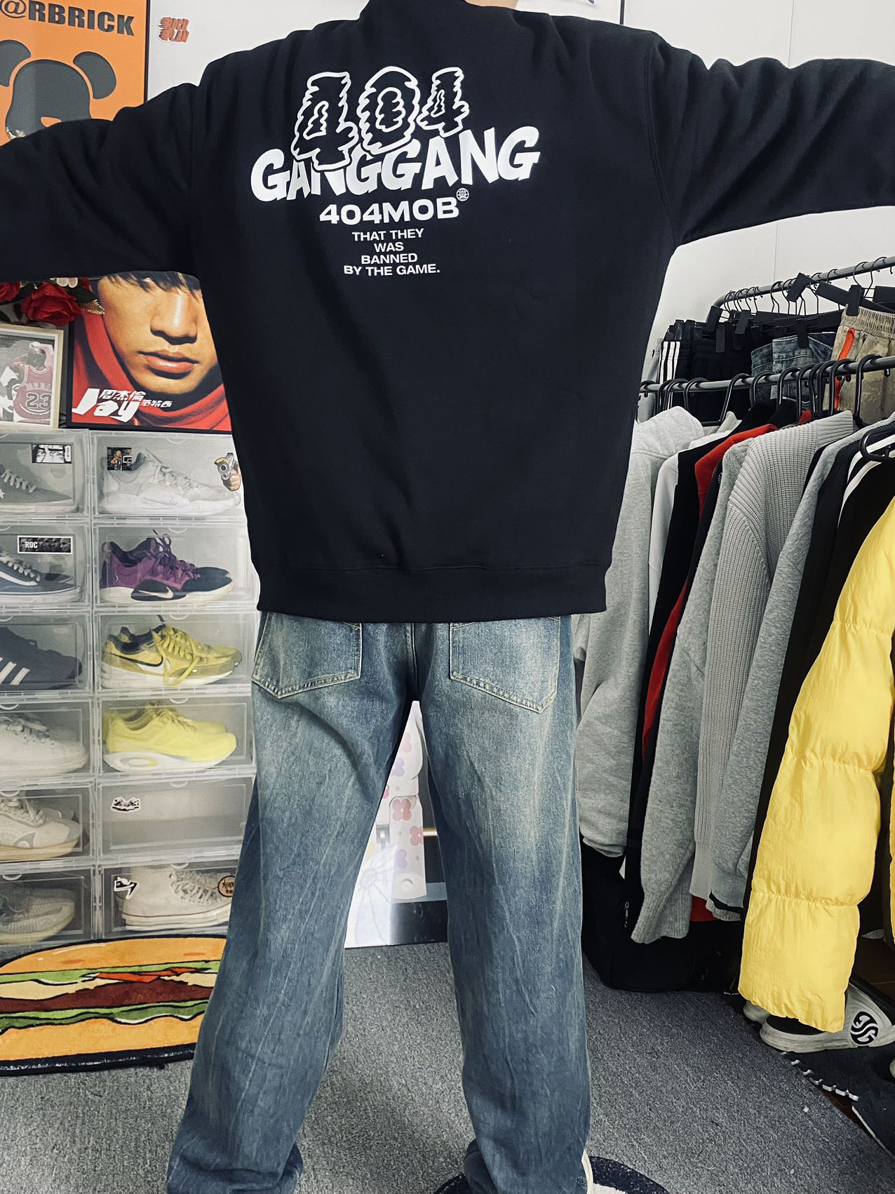 🔥冰美式今日穿搭 👔上衣穿了一件404圆领长袖卫衣 个人喜欢后背的大字母印花时尚潮流感觉适合我这种学生党 内里加绒加厚保暖也不错👌 — 👖裤子的话就选了一条美式做旧牛仔裤🪂 折痕裤面比较新颖独特 宽松的设计百搭 — 👟鞋子的话就是一条枫叶的小板鞋 鞋底比较软穿的挺舒服的❌ 身高/体重:178/130 👔xl
