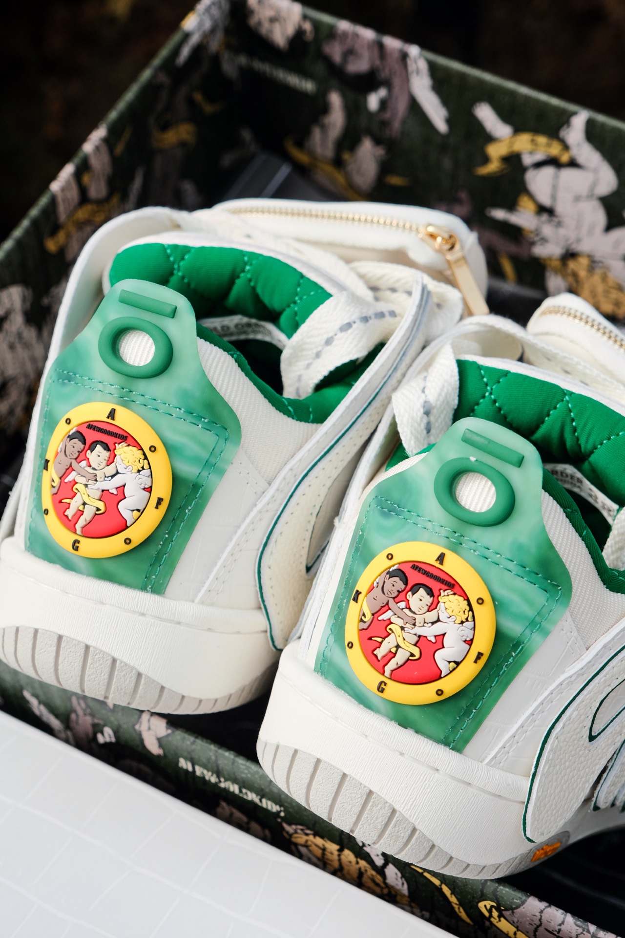 今日份的穿搭 主打的就是一个撞色搭配。 - 绿色皮衣叠穿 加上我新入手的潮流面包鞋 时尚感直接拉满了 - #AFGK x #OLD ORDER 联名的这双潮鞋 看着蛮街潮时尚的! 经典白绿撞色+侧边的贴标真的好帅! 而且它鞋侧用的是皮革拼接 加上鞋跟的天使图案 看着辨识度超高的! - 日常穿搭上脚比较软乎 属于久穿不累脚的类型 新年买装备的话可以参考下 #龙年限定我看好这双 #这双和新年绝配...