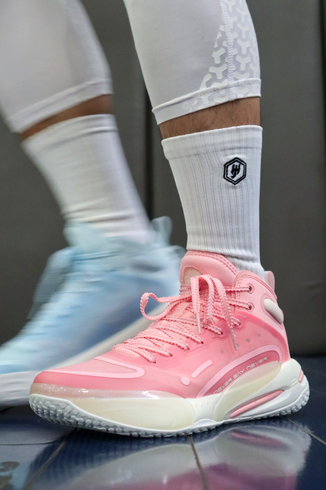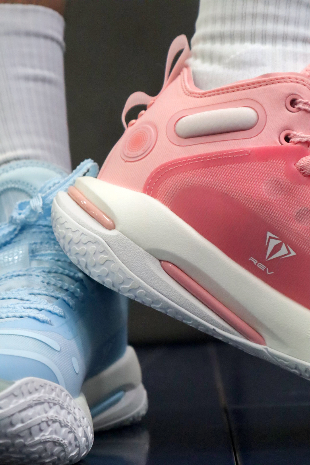 光有骚粉色 还不够? 那再加上蓝色 凑个鸳鸯 就问你们够不够西海岸? 国乔REV也是发售了一段时间了 今天带兄弟们简单上脚一下聊聊一个初体验啊 首先这一次的外观还是很耐看的 鞋面的材质类似TPU纱的这种一体式材质 强度摸起来很够延展性也合格 适配度不算窄 高帮8组鞋带孔搭配锯齿鞋带 包裹感还是不错的 但是不够极致 鞋身外侧两块TPU加固 后跟碳棍连接中底异构碳板结构很有意思 刚性也不错 就是重...