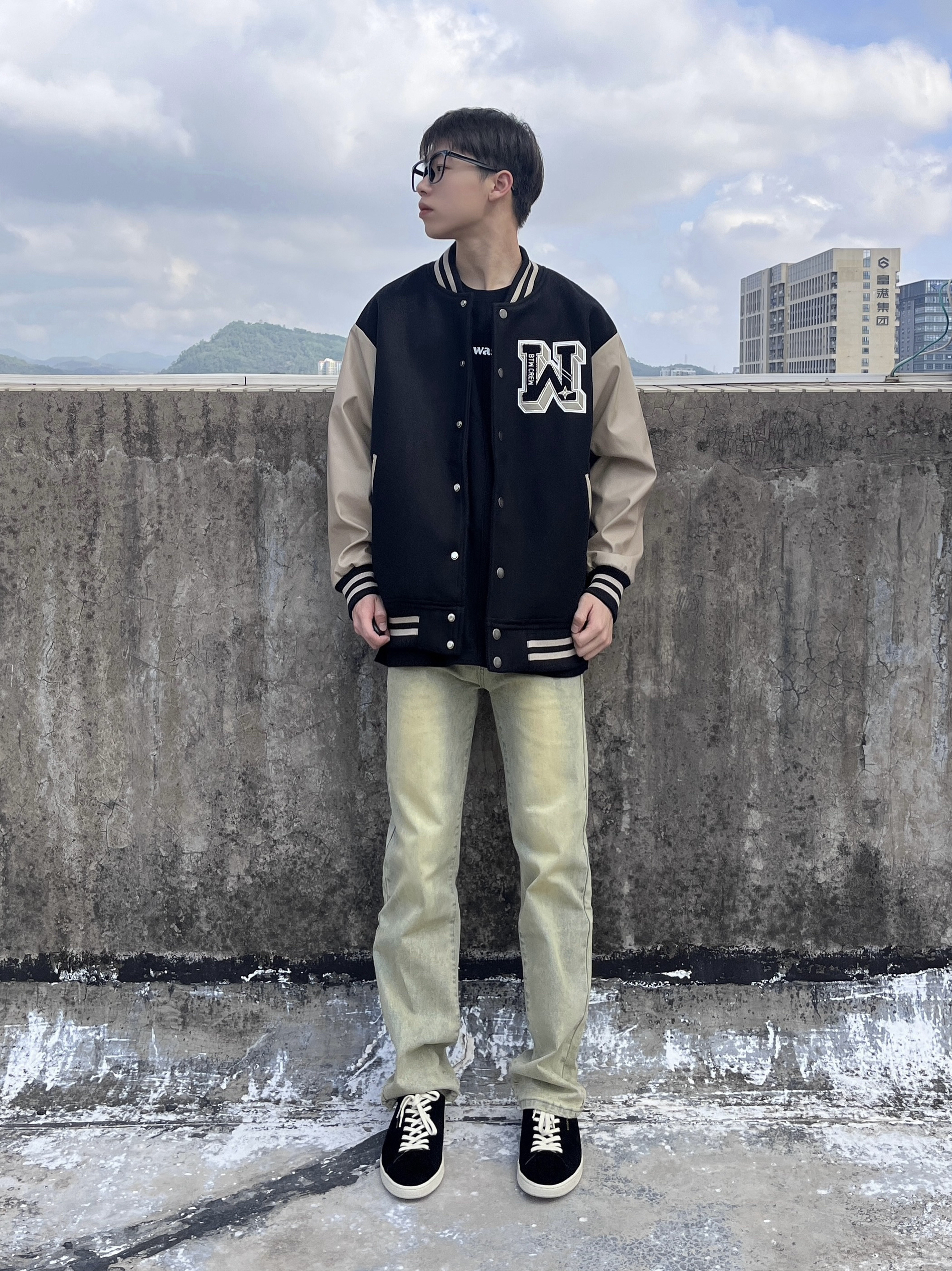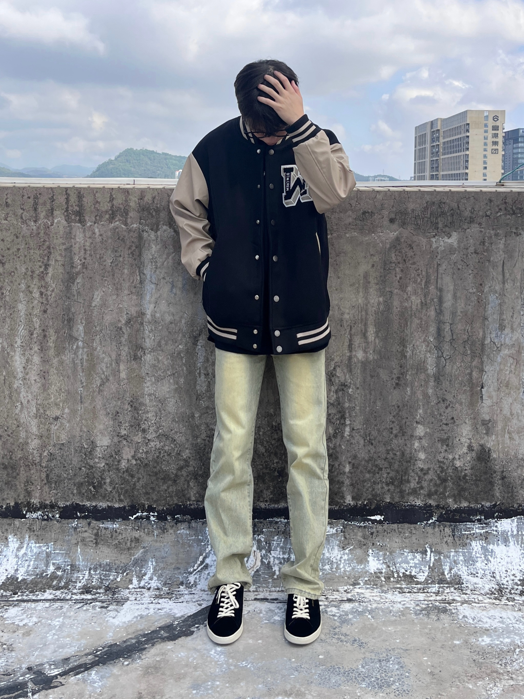 今日份穿搭分享look👀 衣服是棕褐色的玫瑰刺绣印花棒球服 搭配一条黄泥色直筒牛仔裤 风格美式潮酷 版型也很正 鞋子的是 CHIORYN 家的梵塔黑复古板鞋 鞋面采用的是羊反绒面料质感满满 颜值简约时尚 上脚后脚感舒适柔软 鞋底也很防滑耐磨 风格百搭又好看 一套搭配下来 轻松拿捏秋冬cleanfit穿搭🔥