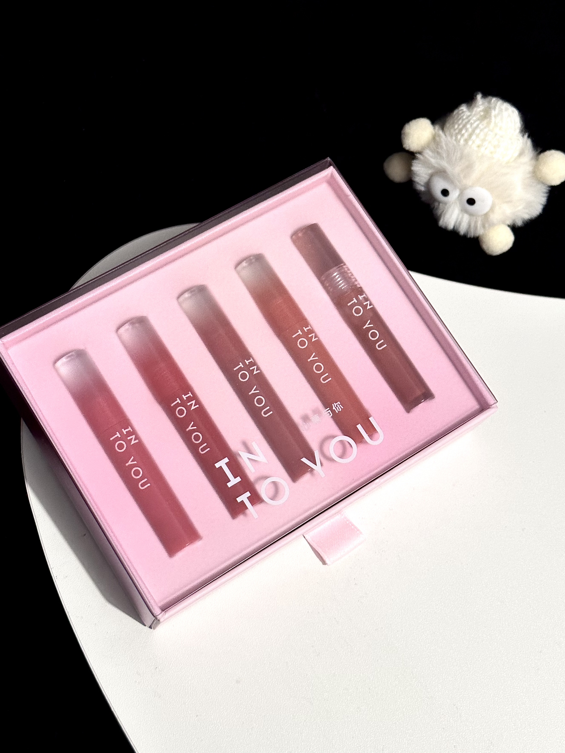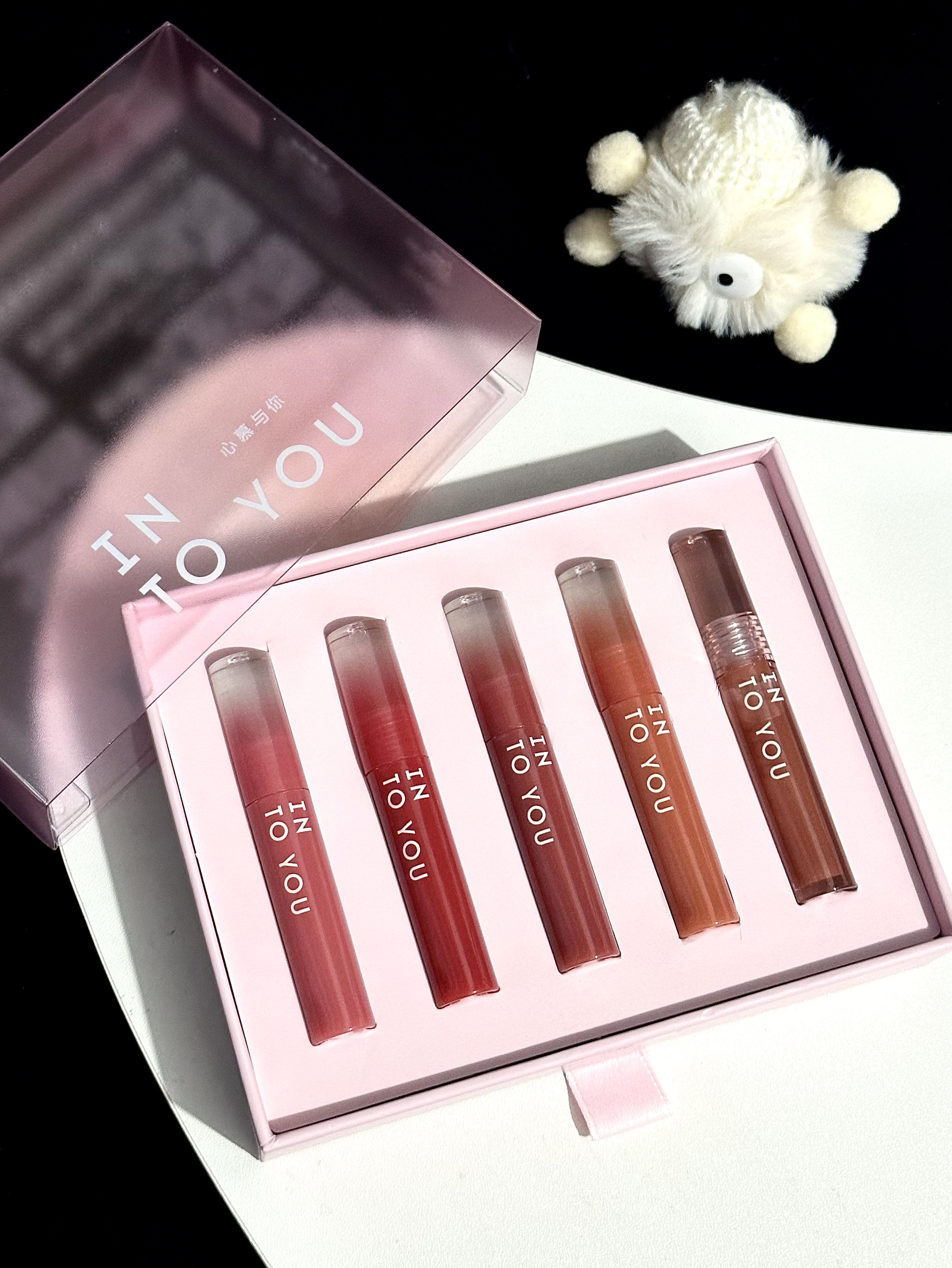 介么可爱的唇釉礼盒我有了 里面一共5支 mi'ni的好可爱 水转雾质地,色号也都日常显白