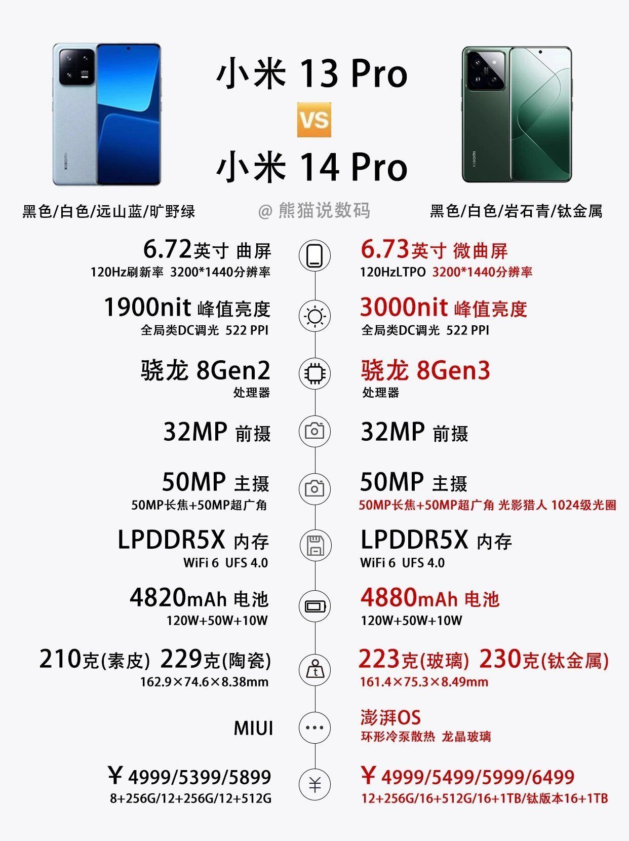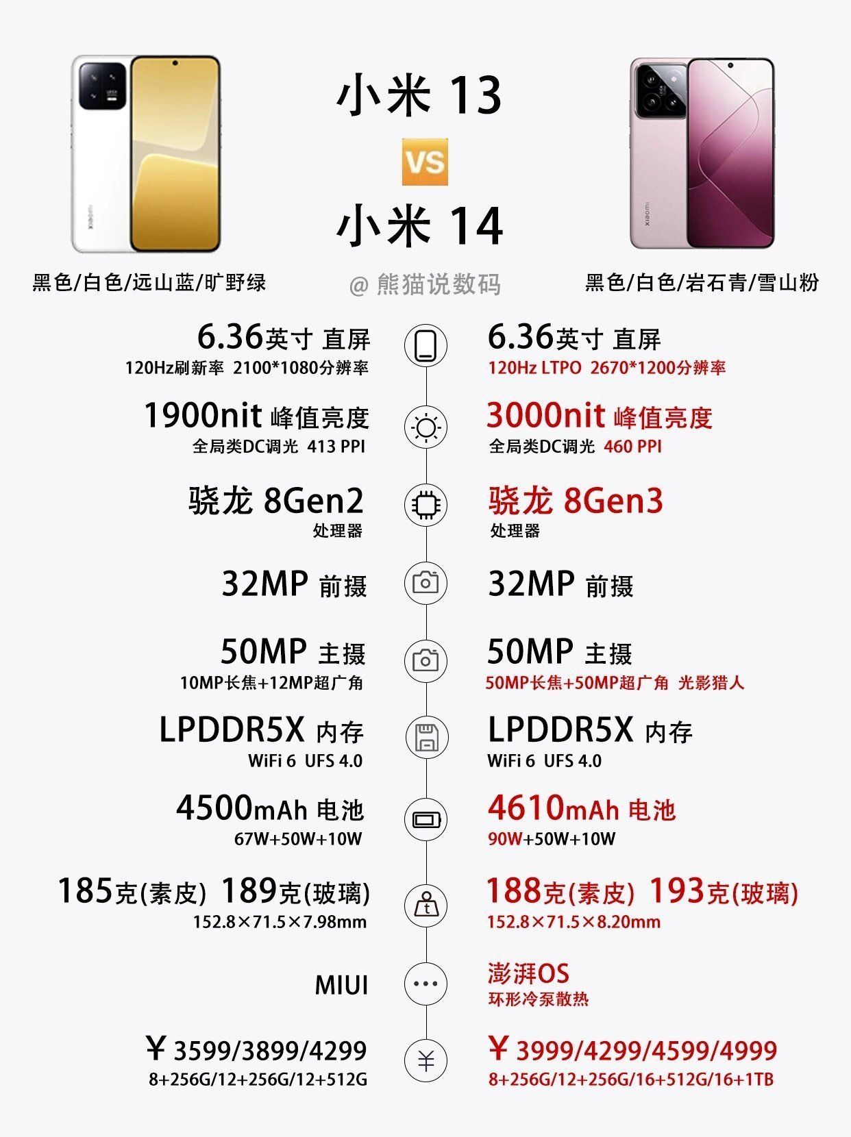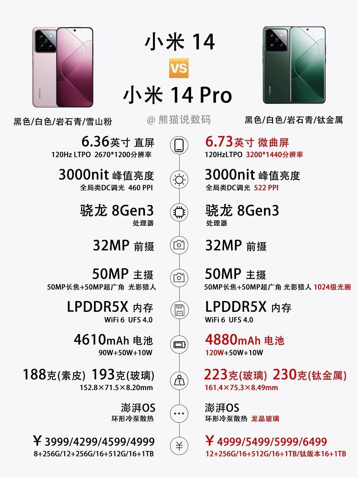 哈喽❗各位米粉👍小米14系列也是如期发布了,小米13系列作为去年各家旗舰机里销量非常可观的手机,得到了不少机友的青睐,今年的小米14系列又如何呢❓让我们结合参数来看看小米14系列对比小米13系列有哪些提升~ 🌈小米14对比小米13升级点: 1️⃣屏幕 小米14全系边框变窄,支持120Hz LTPO动态刷新,屏幕峰值亮度升级到了3000nit,户外观感更好。 小米14Pro从曲面屏改为了4面微...