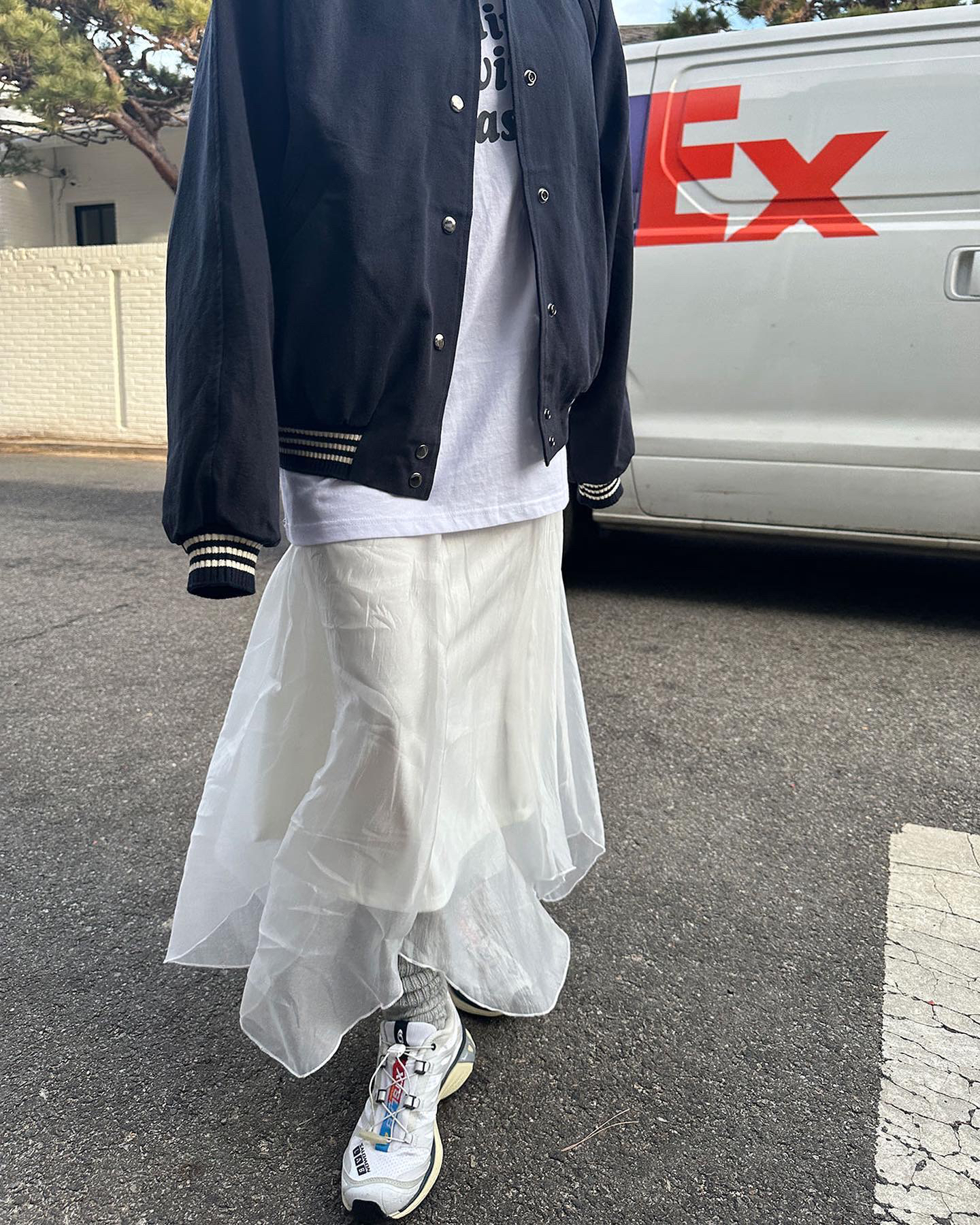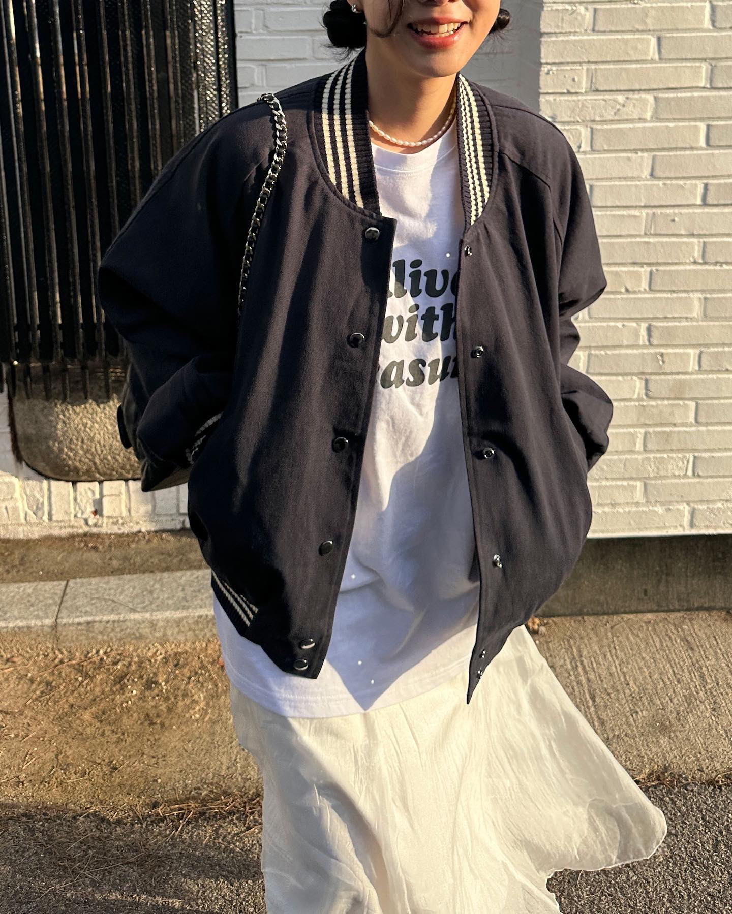 👚黑白条纹上衣与白色半裙的搭配,既有简约感又不失时尚。可以选择一双休闲鞋来提升整体气质。同时,搭配简约的包包和手表,增加整体亮点。