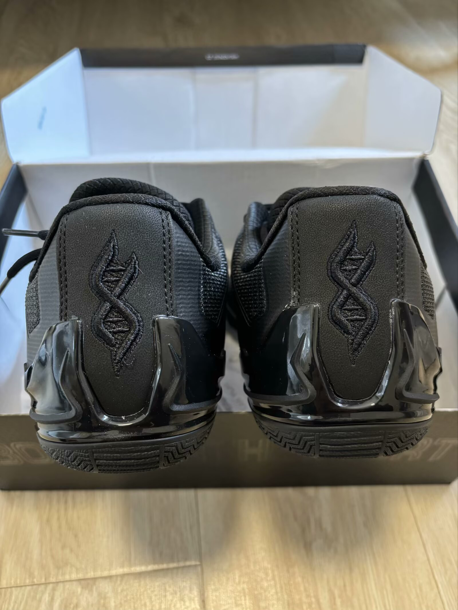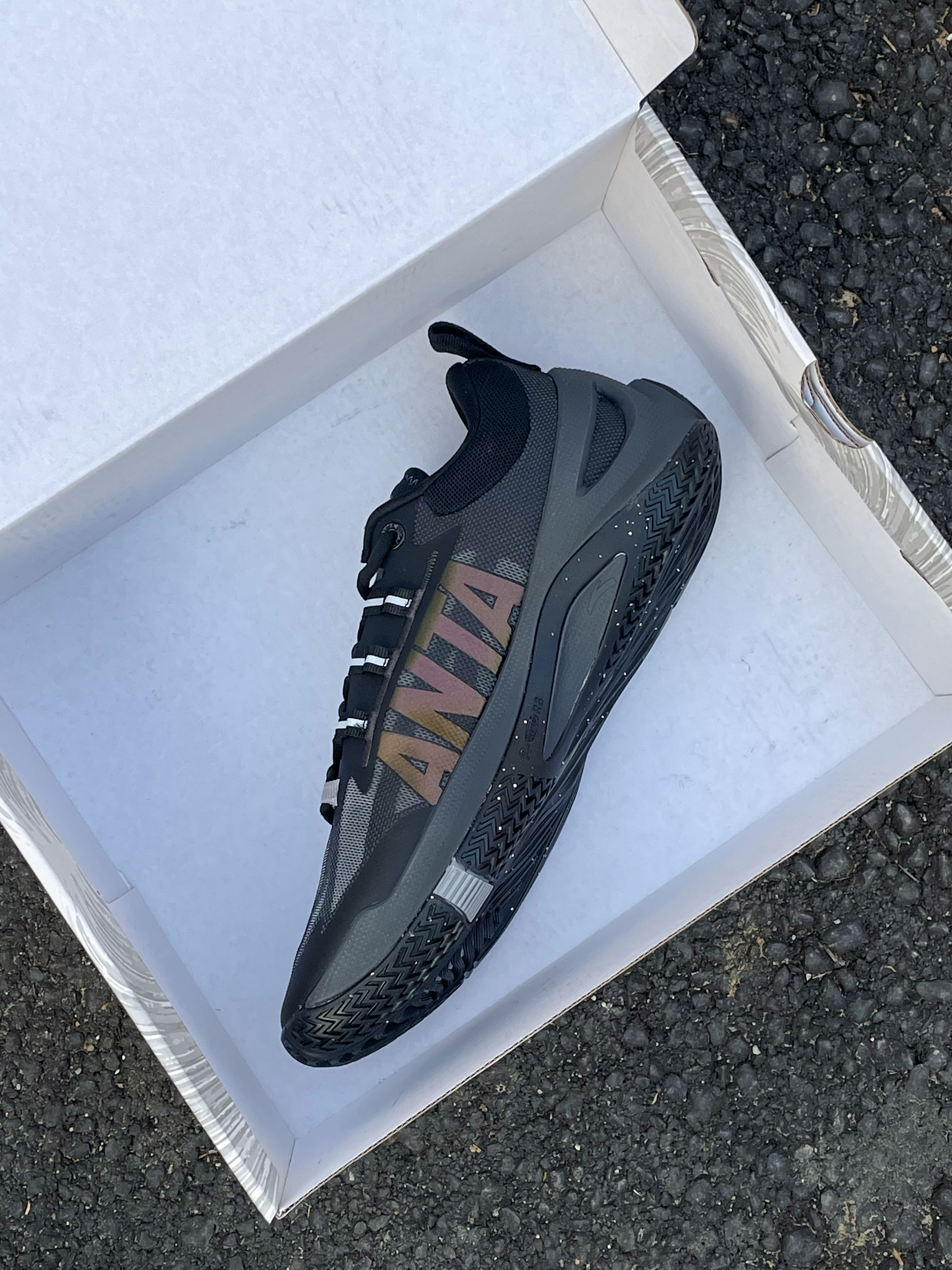 今天给大家分享一双颜值和性能都不错的 Anta安踏 瞬息一代 客场『黑武士』实战篮球鞋 鞋款以酷酷的黑色为主色调 鞋面选用了透气性和强度都不错的双层织物 鞋身多处设计有安踏品牌Logo图案以及 『迪温琴佐』球衣号码/绰号/签名等个人信息 中底部分搭载了韧弹舒适的全掌氮科技 前掌外侧的TPU搭配防侧翻 稳定和抗扭性到位 多纹路的耐磨防滑橡胶底可轻松驾驭内外场 整体来说这是一双兼具颜值和性能的实战篮球...