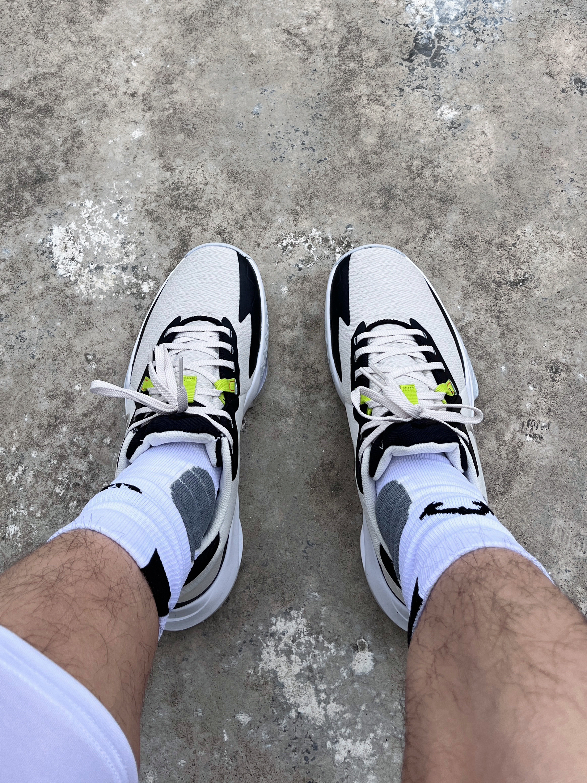 今天分享一双个人经常上脚的日常训练&低强度球局球鞋——Nike precision 6精密6 外观造型:拿到手第一眼乍一看 还以为是欧神仙系列的支线 颜值方面也是符合当下潮流鞋款设计 简约又时尚 鞋身配置:鞋面是织物面料结合 采用热熔压胶补强鞋面 支撑感和包裹感都还不错 但是强度一般 高强度球局无法匹配 用来日常投篮或训练以及养生休闲局比较合适 中底方面没有气垫而且采用全掌泡棉 缓震一般 给...