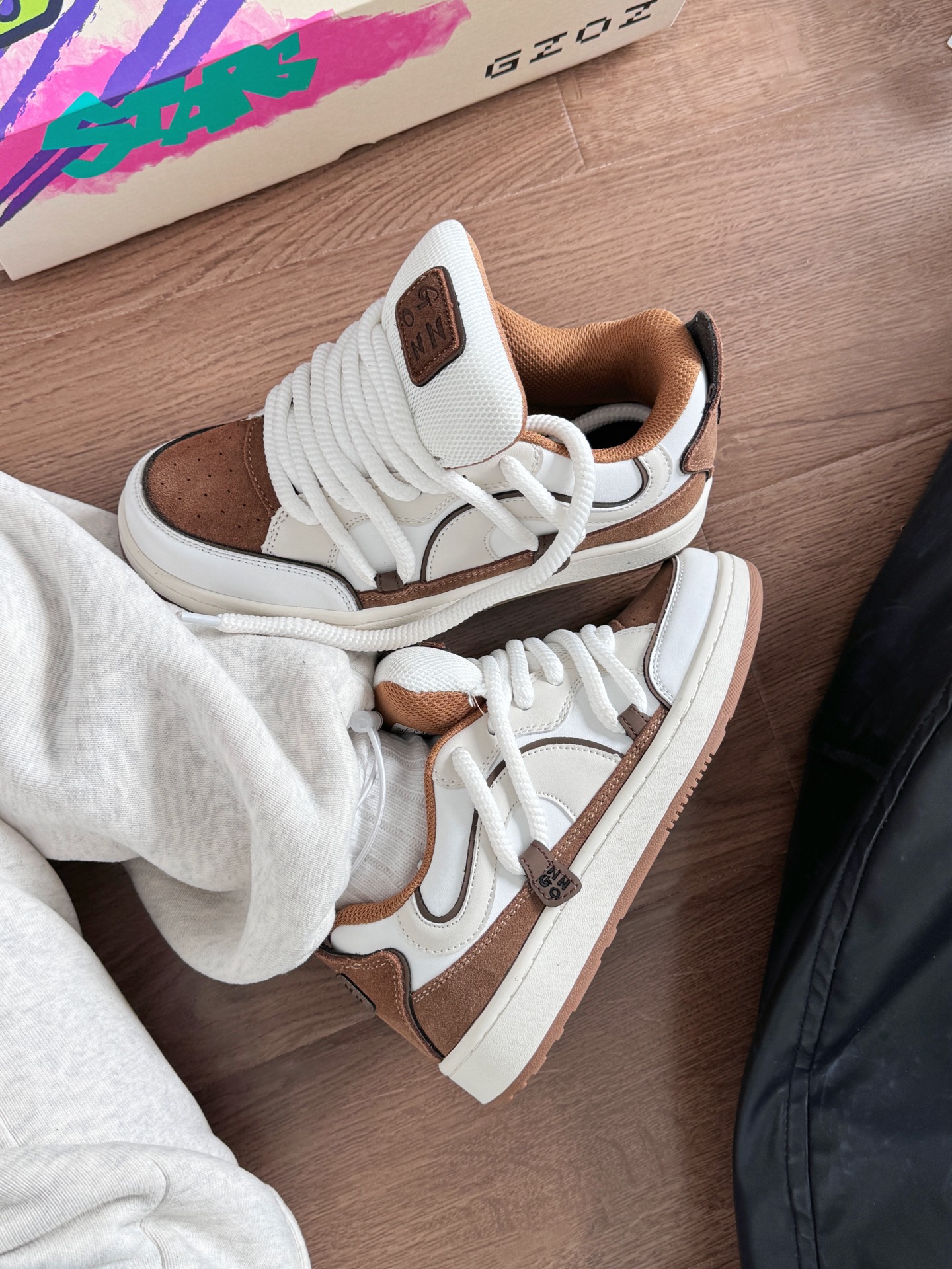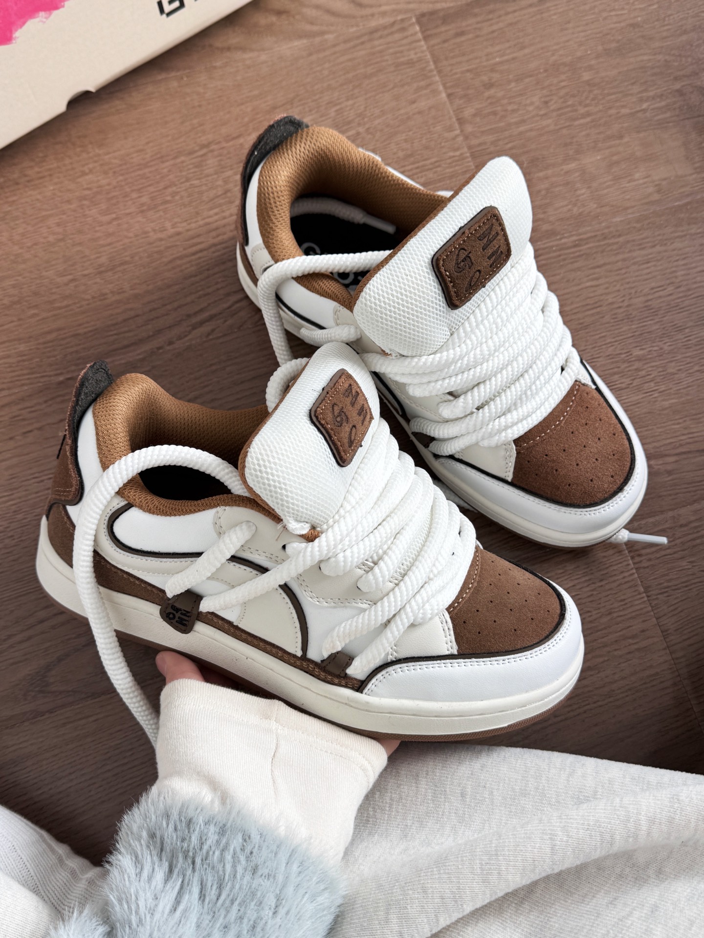 上脚很好看呢 棕色系和白色系简直是绝配呀 鞋子也是白色和棕色的搭配 一整个温柔住了 很有美拉德气息~ 价格也很适合学生党 爱咯~ #2024的第一双鞋 #靠这双凹出时尚感 #新年少不了这双鞋 #穿上新鞋过新年 #拜年新鞋已就位