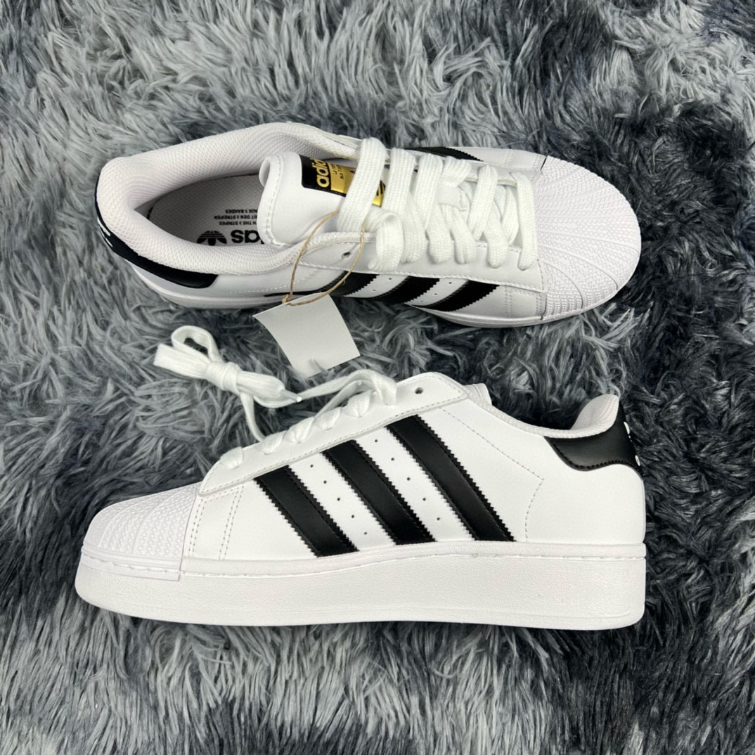 adidas originas Superstar XLG 低帮 厚底板鞋 男女同款 黑白 经典三叶草贝壳头增高版 厚底具有增高效果😎 上脚相比经典款更加舒适 不单薄视觉效果更佳 货号:IF9995
