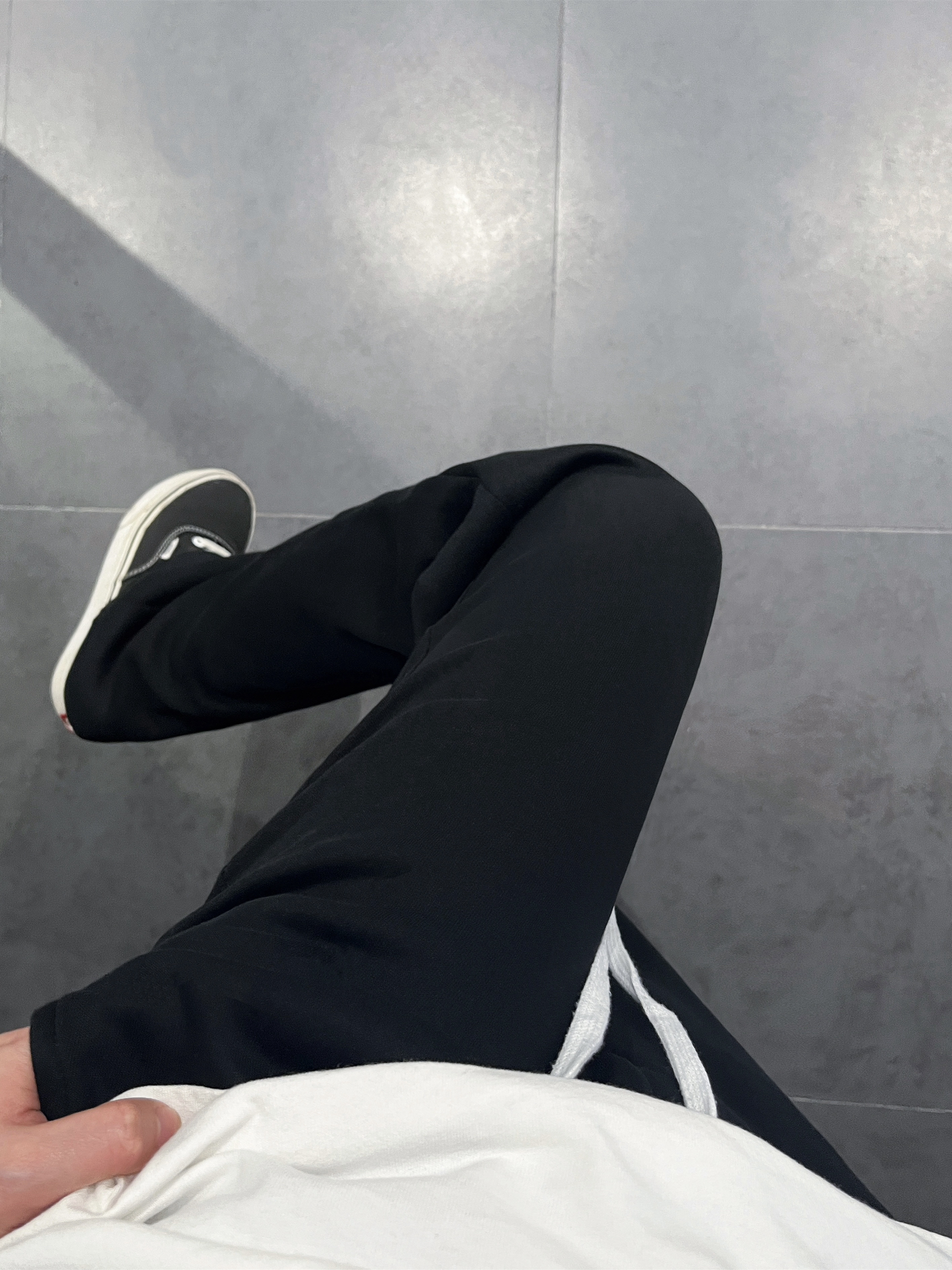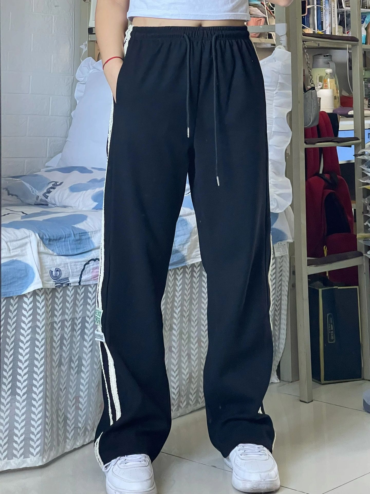 这条黑色卫裤太好穿了!面料摸起来很柔暖,舒适又不失美感!