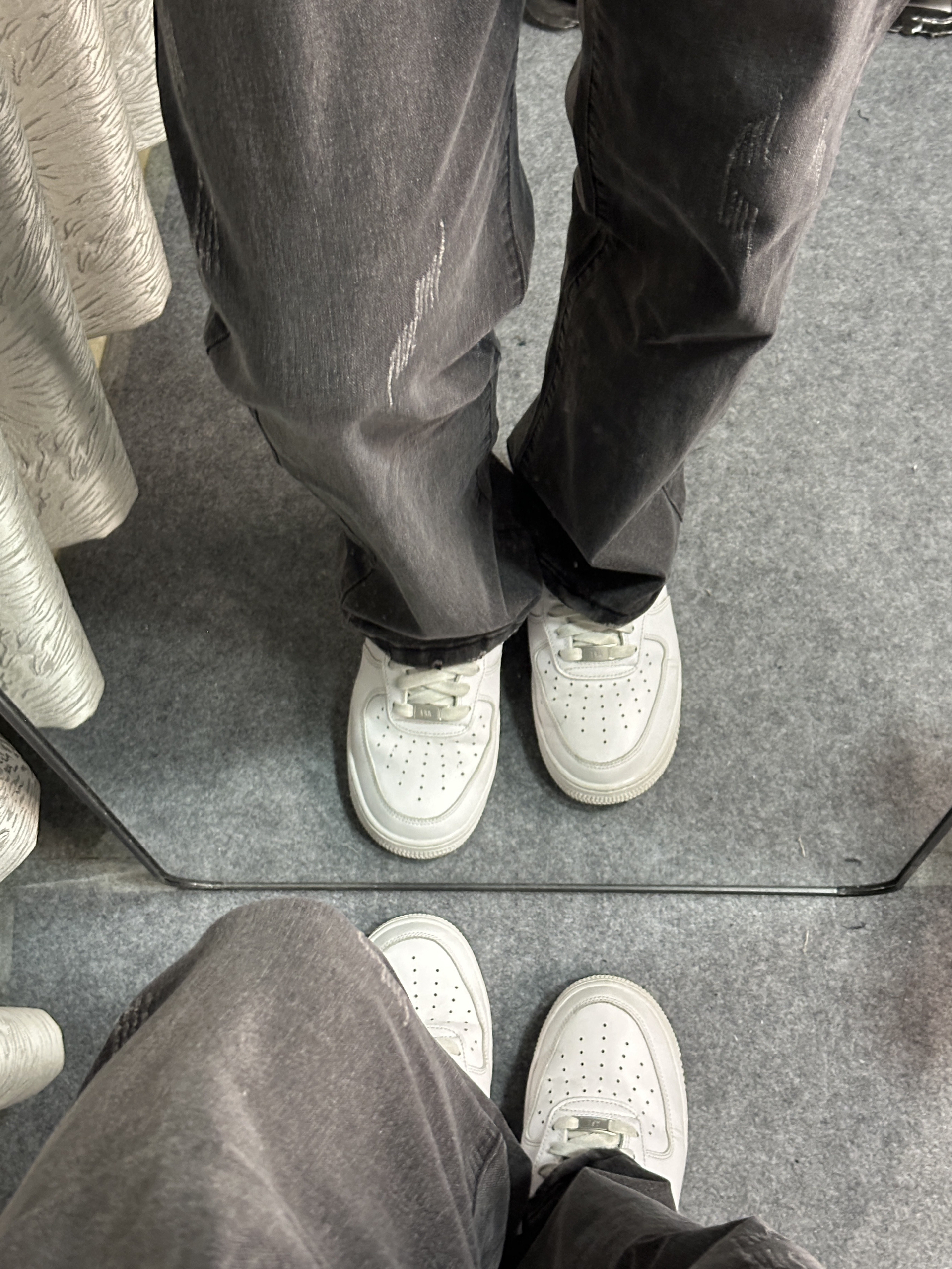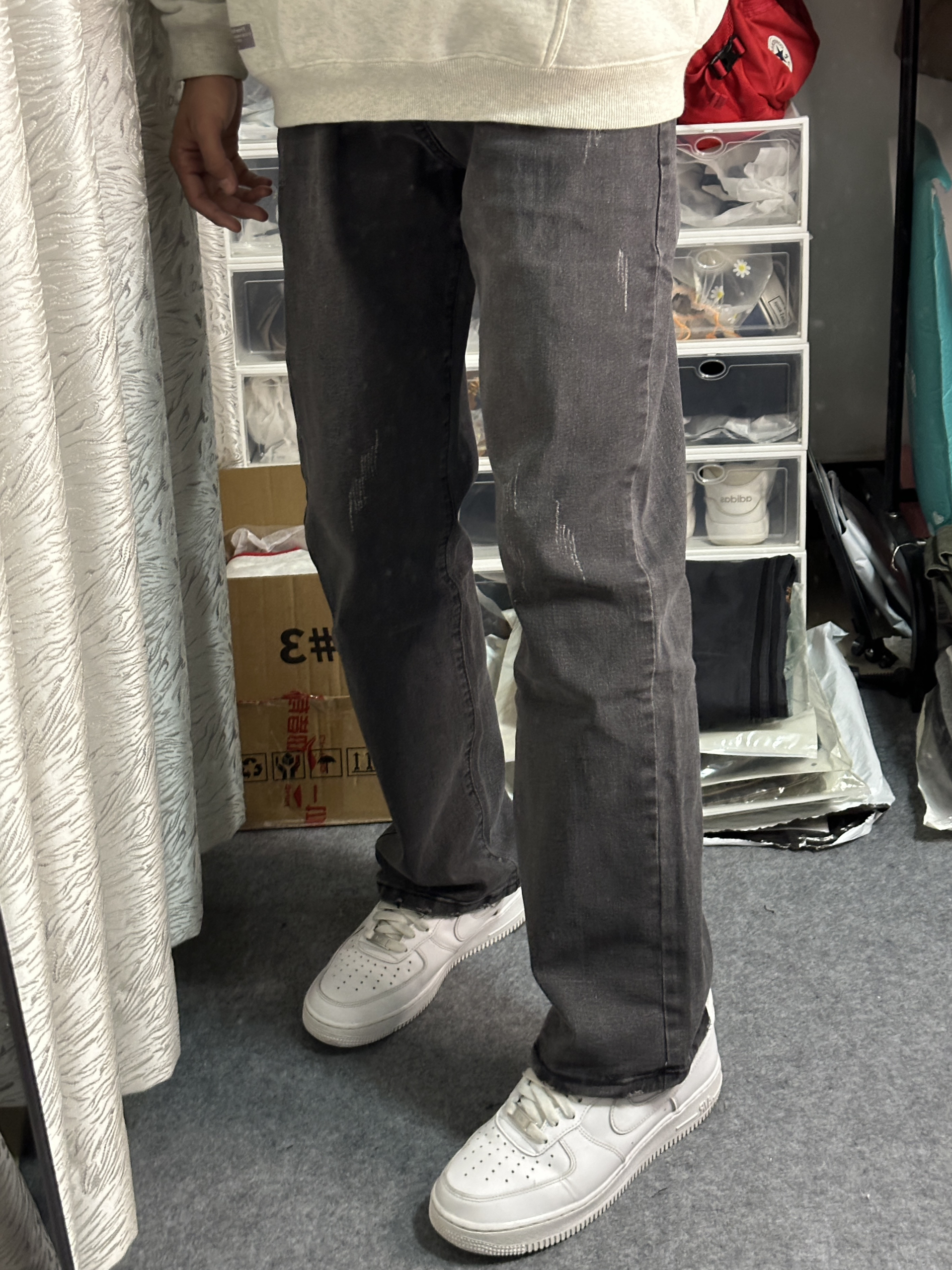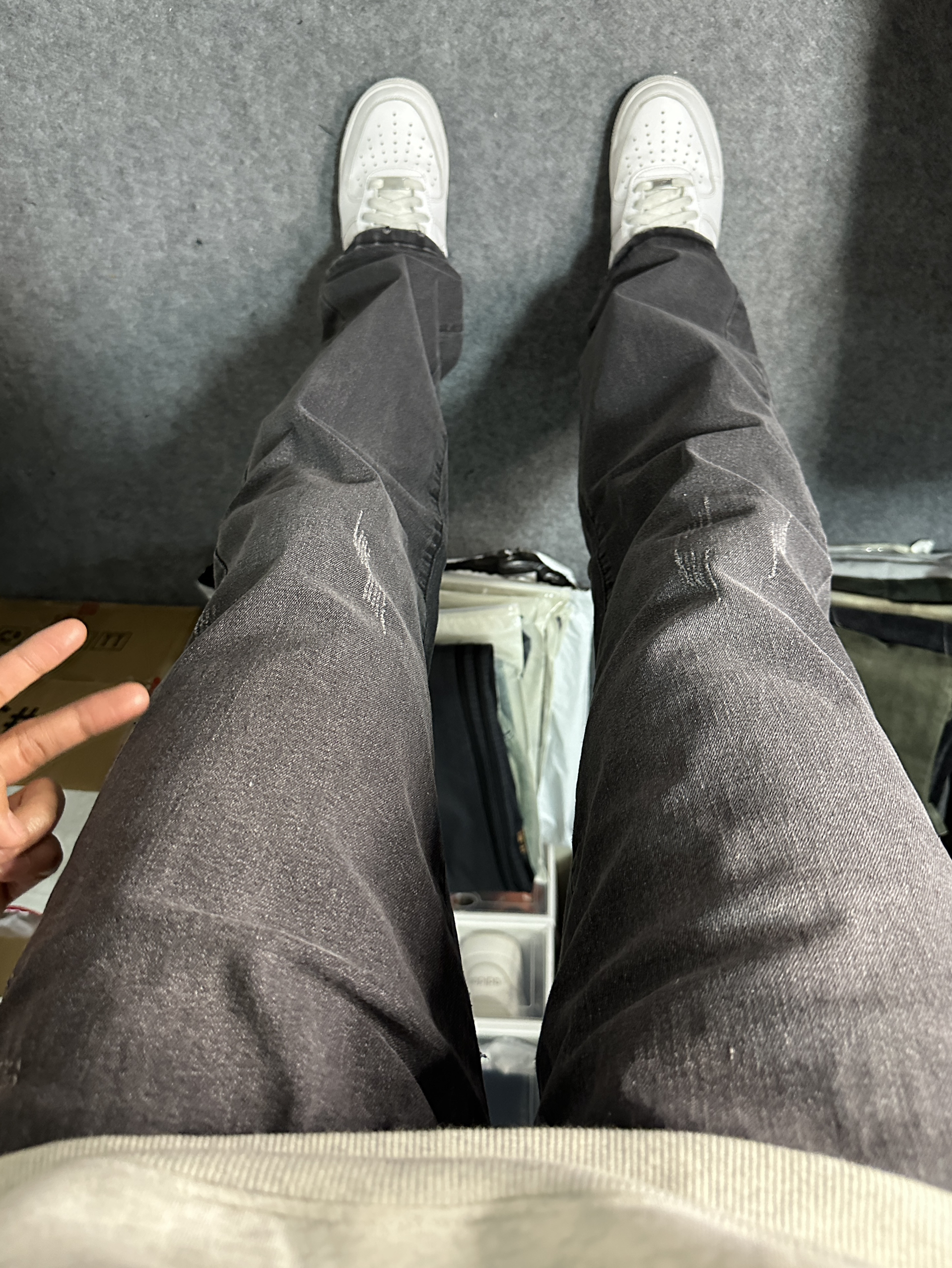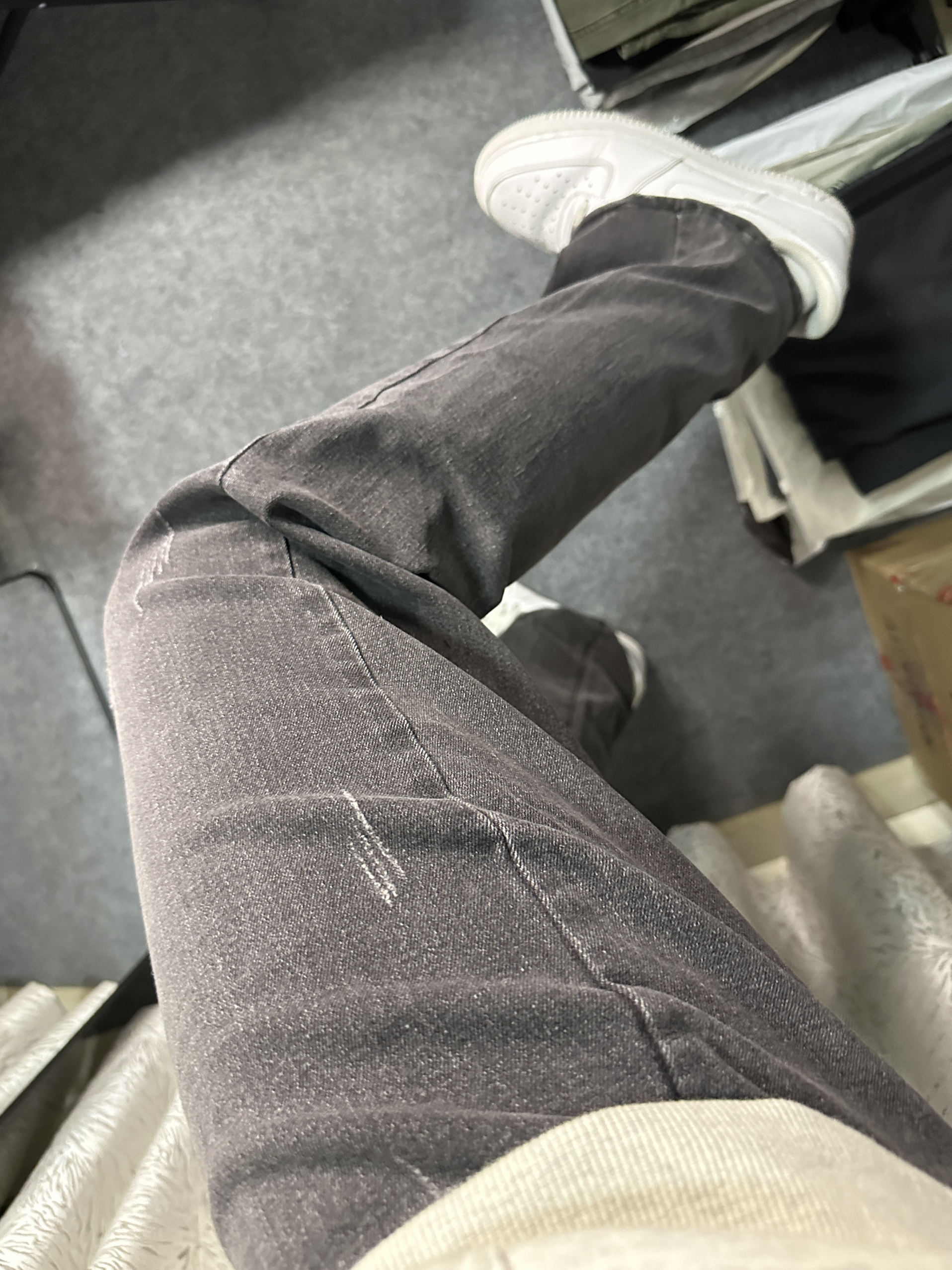 180 130 ootd穿搭分享 深灰色牛仔裤真的太帅啦! 直筒版型特别百搭,还很显腿长 穿上秒变大长腿 灰色的裤子也比较耐脏,磨白设计真的超酷!