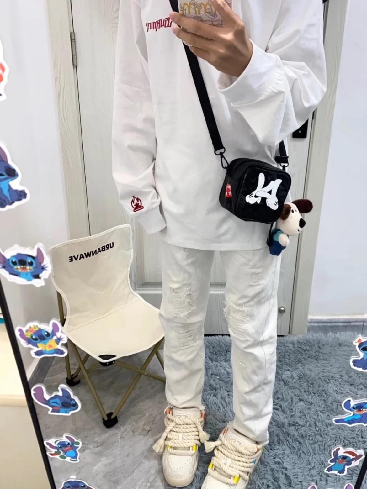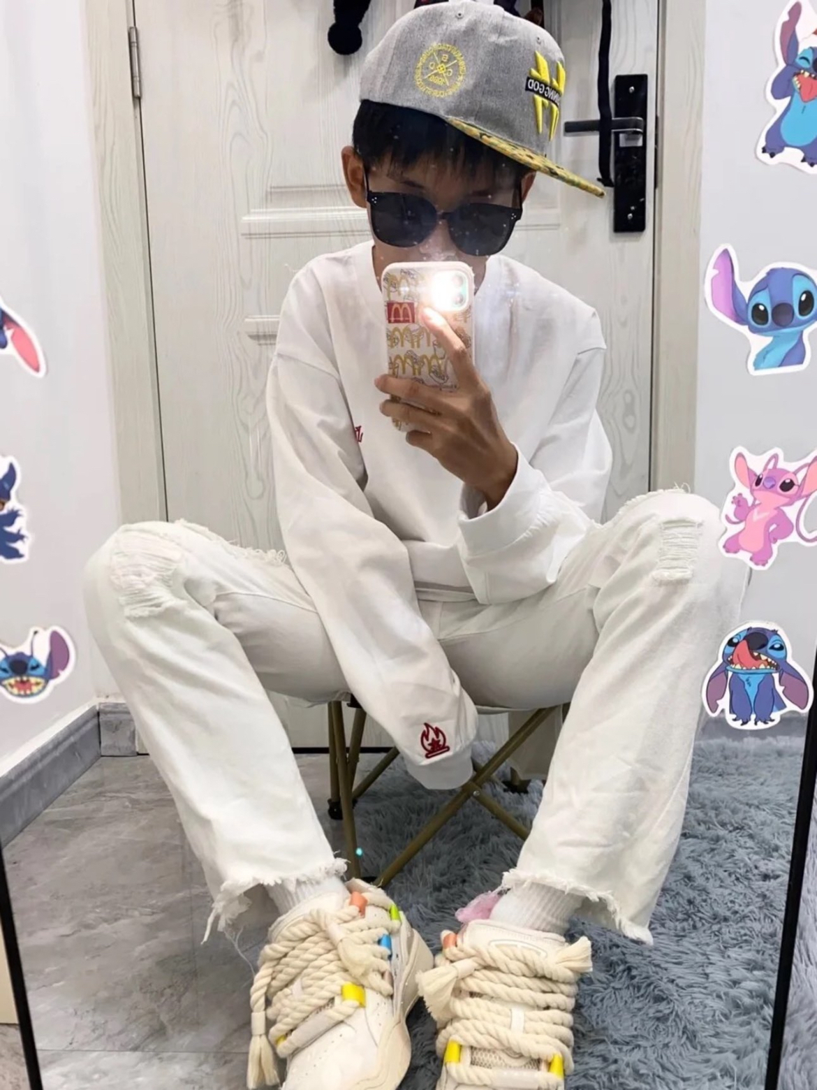 如果有谁喜欢白裤子可以冲一下哦。料子是有点偏硬的那种牛仔,但不会很硬,适中的软度。破洞裤,上边有类似拉丝破洞的设计,很有个性很酷的一条裤子哦。上边搭个体恤真的是显瘦显高!! (图片来自网络,侵删)