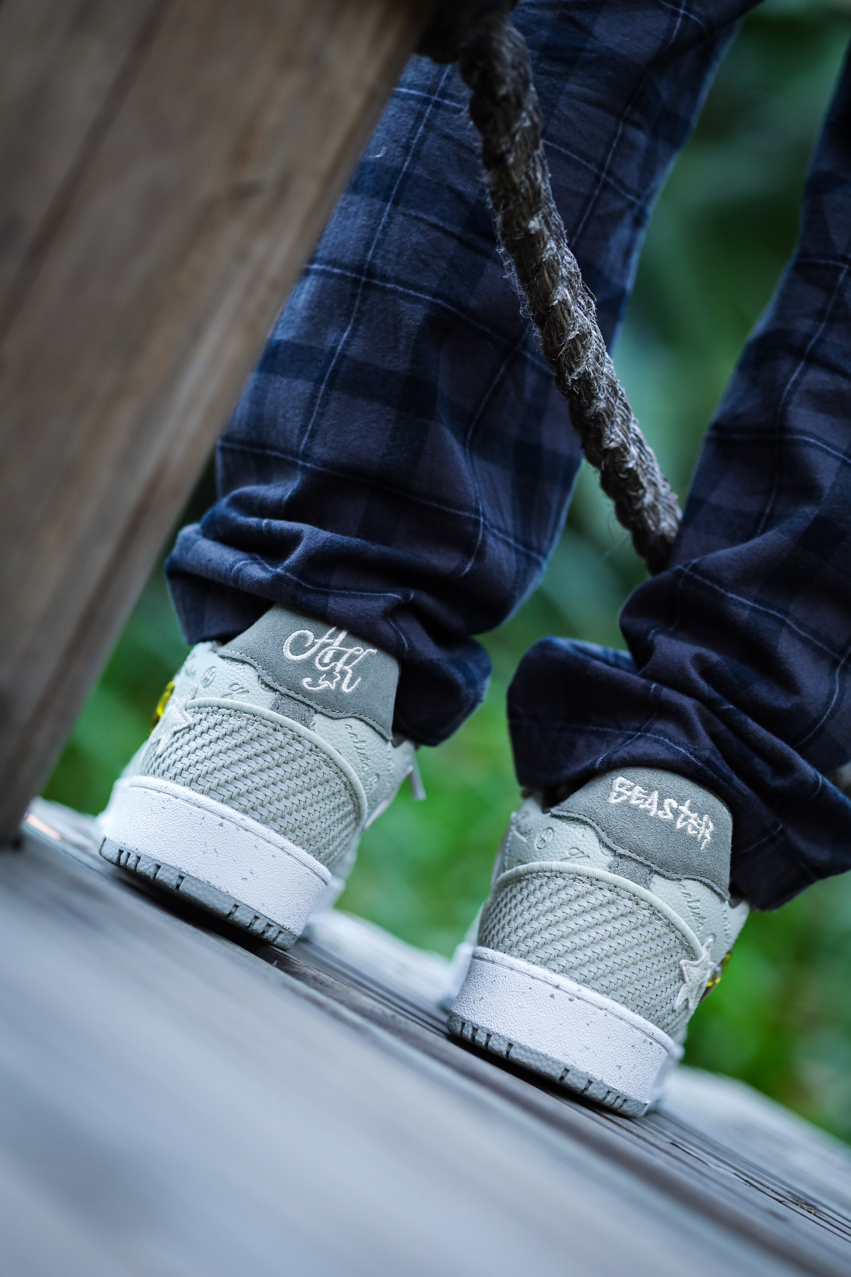 之前跟大家分享过KAALIXTO与BEASTER联名推出的星星鞋,西湖龙井配色。我觉得这双鞋的实物非常不错,今天这组照片,再让兄弟们看看它的上脚效果吧! 板鞋的鞋型,搭配低饱和的绿色调,上脚是很百搭的。 鞋面由皮革、麂皮和织物拼接,而且运用了大量刺绣和类似竹匾的编织工艺,皮革部分也压印了双方的品牌logo,质感非常精致。 除此之外,这双鞋的细节设计也很丰富,我就不一一罗列了,尤其是鞋舌侧面的星星...