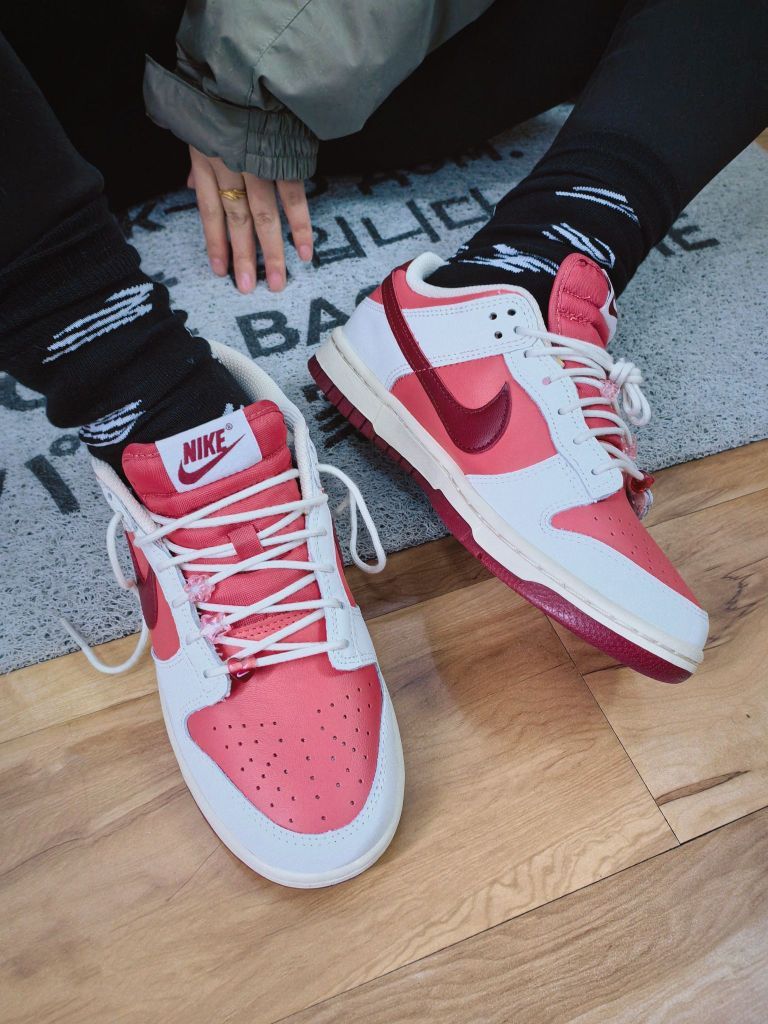 ➡️ 开年提前给女生准备好了情人节礼物 👟 大家好,我是粤雨 今天分享24年的新款情人节限定Dunk ❤粉红的情人节元素拉满,各种爱心小点缀到位,粉色不鲜艳,红色显高级,搭配椰奶白色+帆白,让整双鞋好看有质感,给她上脚的效果真不错,复古又百搭,同时出街也亮眼👀 🔖今年的情人节的Dunk,会送给她吗?