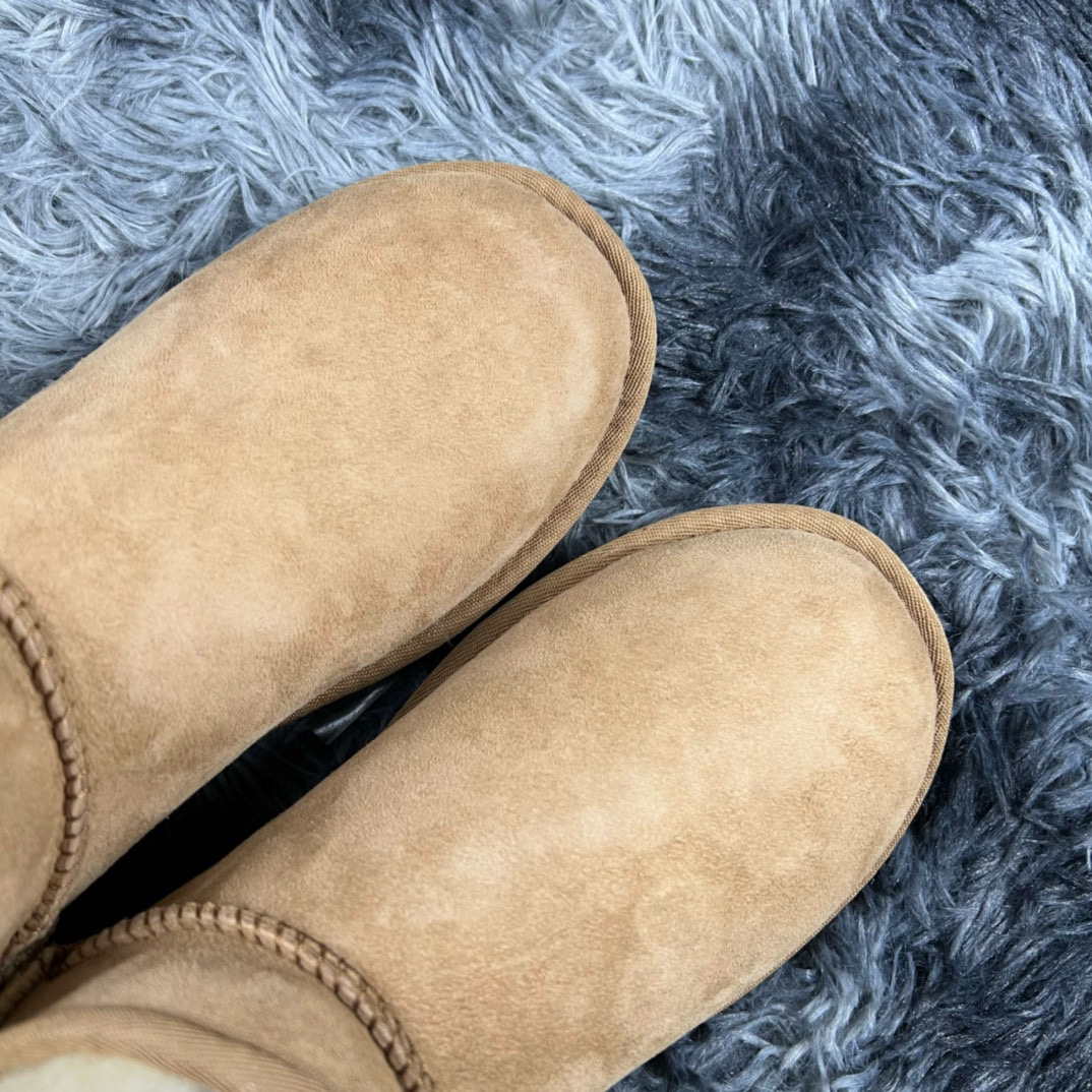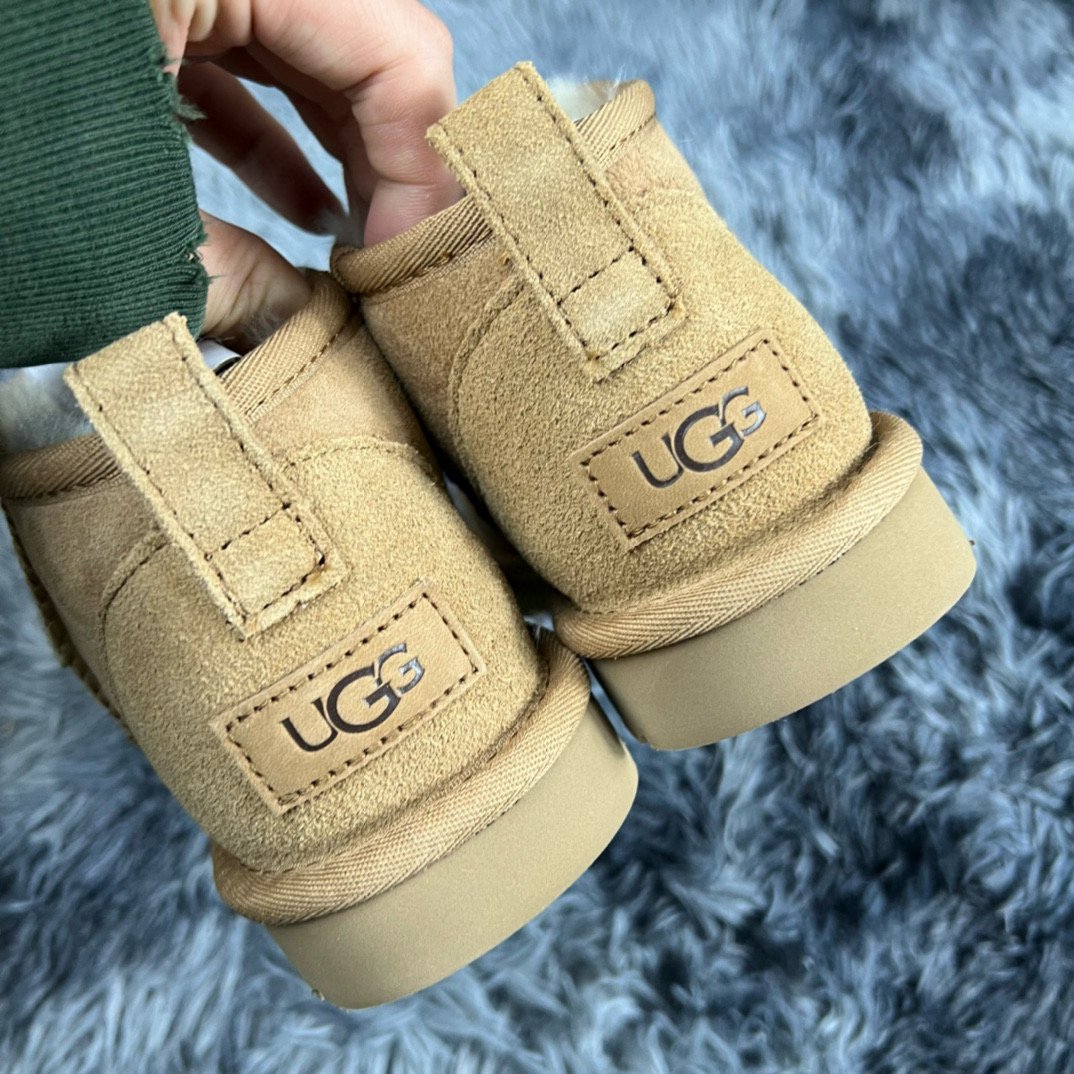 UGG CLASSIC ULTRA MINI 羊皮 休闲及踝款 栗子棕 货号:1116109-CHE 1️⃣款式设计 此款整体使用翻毛皮后跟部分用了拼接的工艺,使鞋更加具有层次感。并且踝款不卡脚,穿脱方便快捷,却不失温度,依旧保暖。栗子棕色是UGG中经典中的经典,经久不衰的一个配色。冬季穿搭,小姐姐无论什么风格都可以驾驭,不仅百搭而且具有高级感。 2️⃣购买须知 整体鞋身为翻毛羊皮,非常难打理,这...