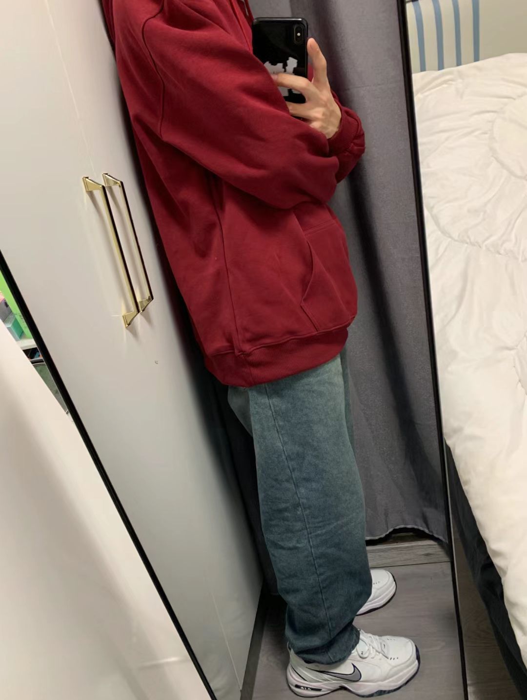 快到新年啦🧨 用一件红色卫衣来点燃春节吧 这款卫衣版型硬挺 肩宽肩窄都能驾驭 对身材很友好!搭配上也没有难度 料子质感超级舒服 整体颜色干净显白,(黑皮也可以尝试) 一条水洗复古牛仔裤,裤子版型蛮好的,不易缩水、掉色,布料很舒服,很百搭