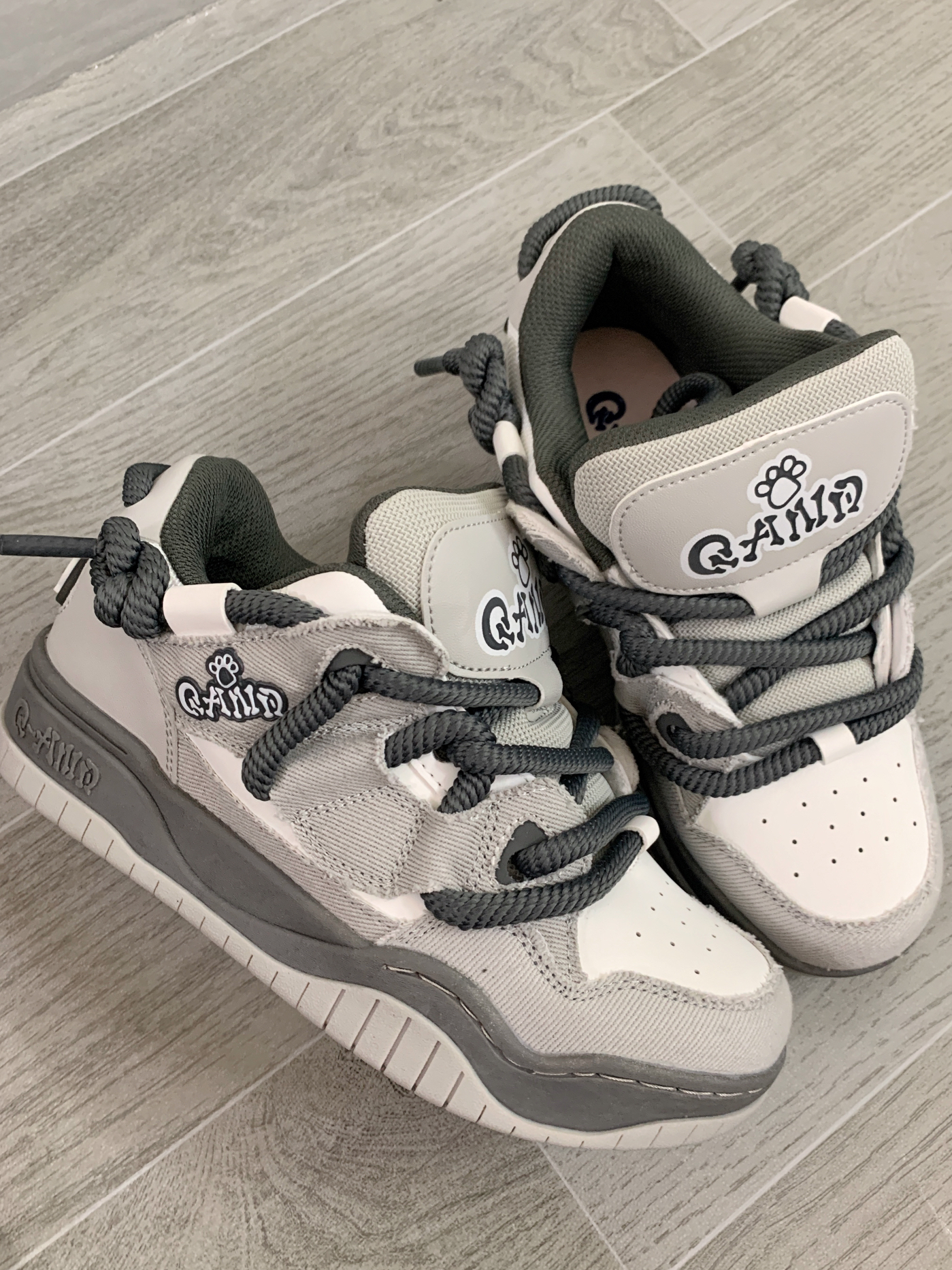 本篇笔记关联了Q-AND 脏辫系列 减震软底 防滑耐磨 舒适透气 美式风 面包鞋 板鞋 QAD331014 灰色等商品,为用户提供真实的使用体验和购买参考。